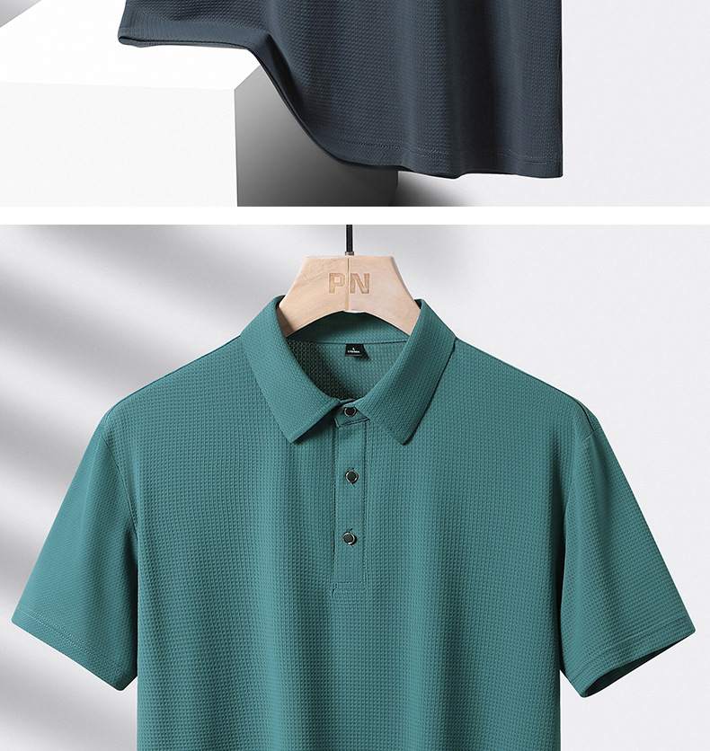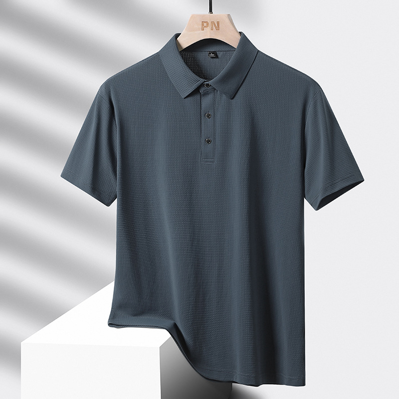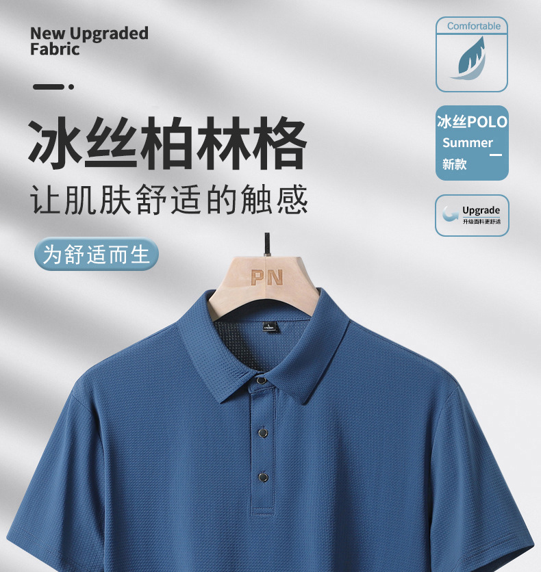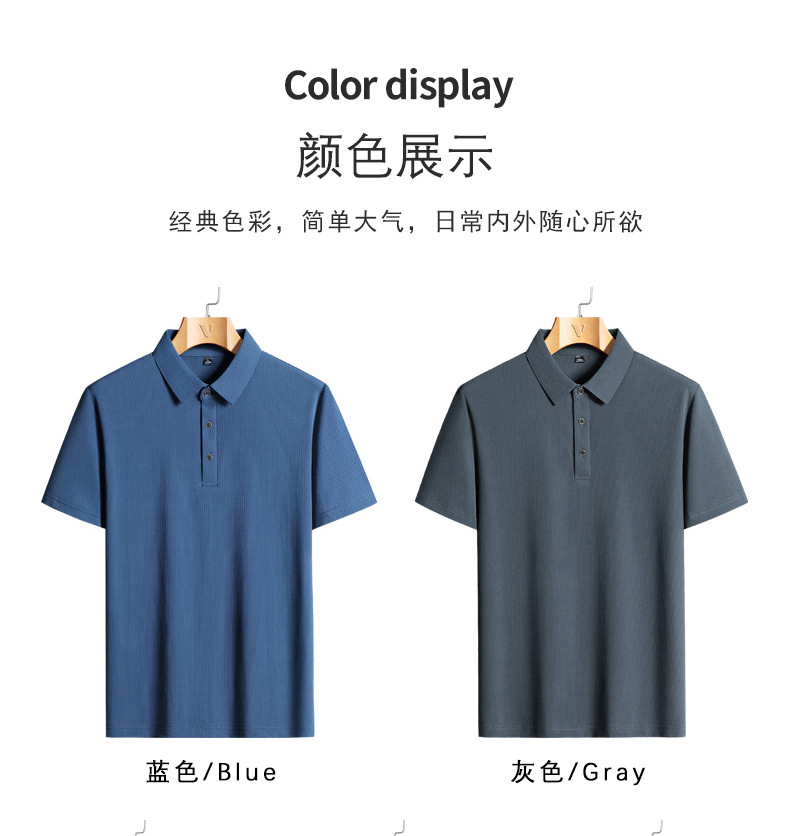 여름 새 폴로 셔츠 남성 티셔츠 플러스 사이즈 플러스 사이즈 느슨한 아빠는 중년 및 노인 남성 아이스 실크 통기성 아빠를 착용합니다.