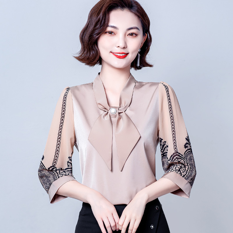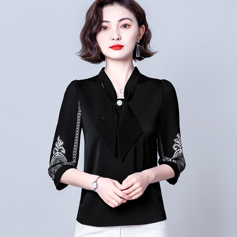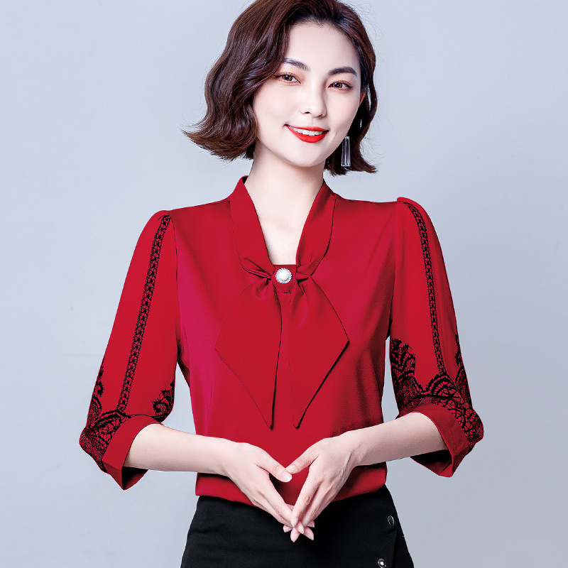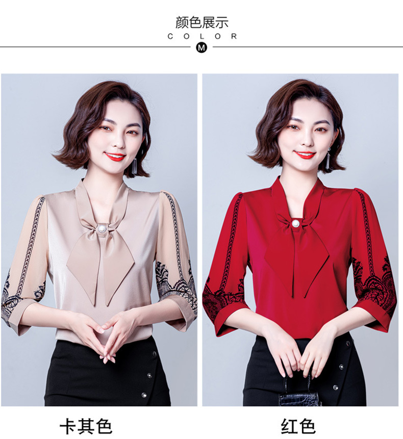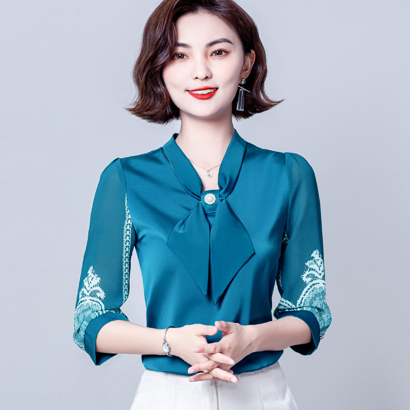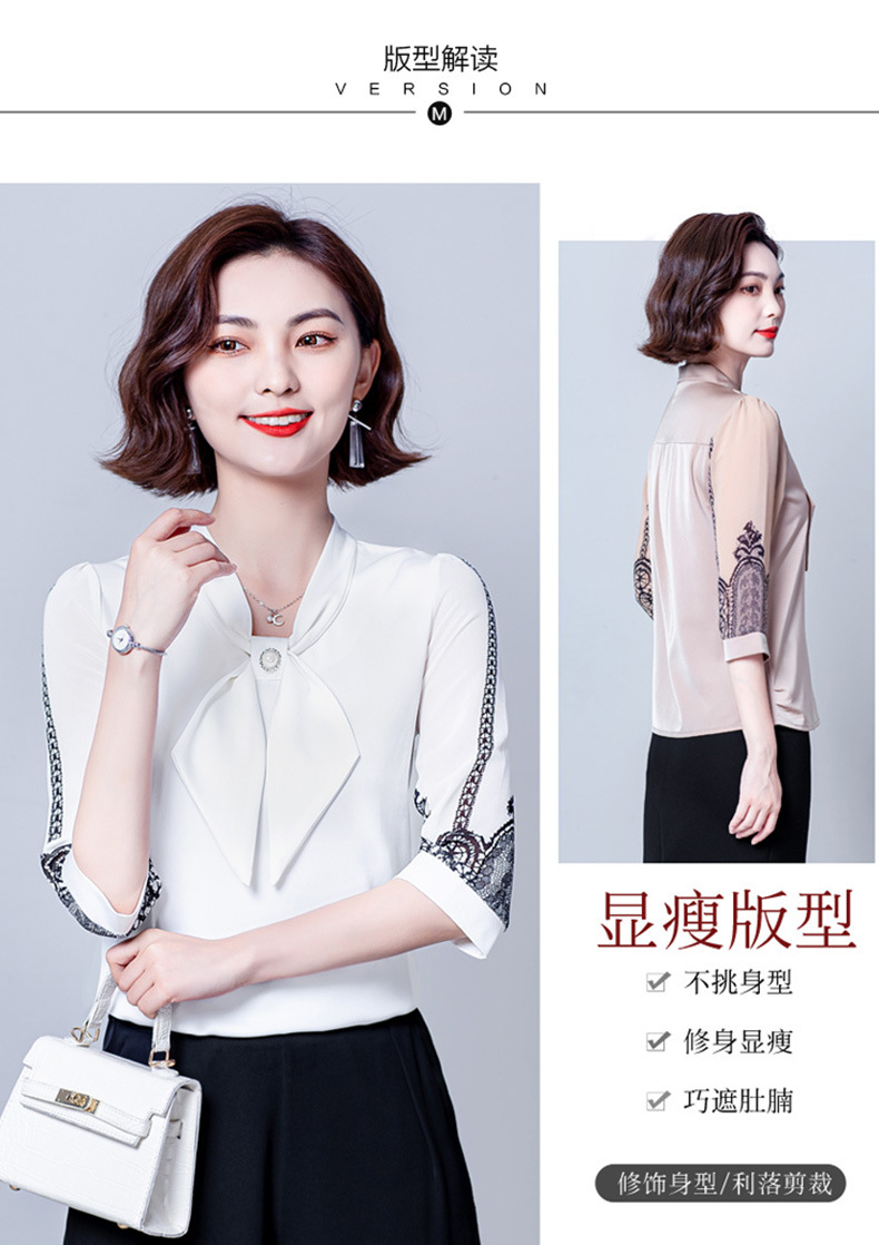 세븐 슬리브 쉬폰 셔츠 여성용 봄 웨스턴 스타일 미드 슬리브 여성용 셔츠 고급 센스 중년 어머니 루즈 탑 여름스토어 가기