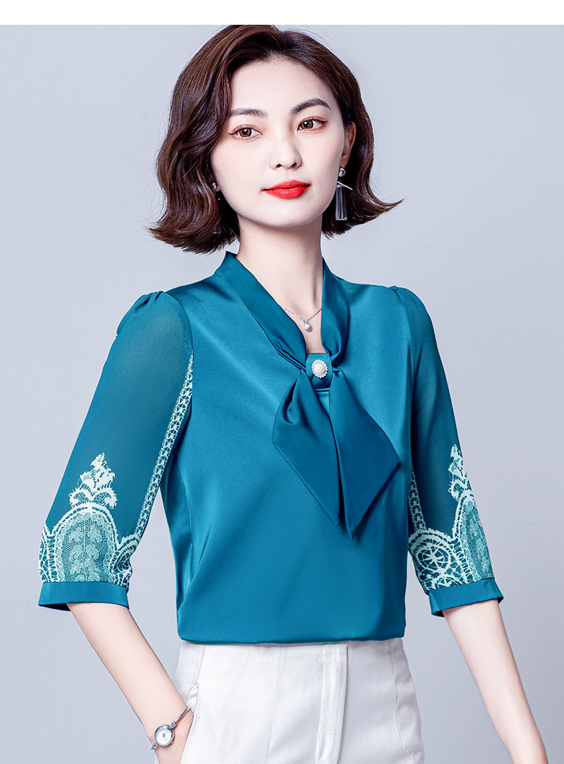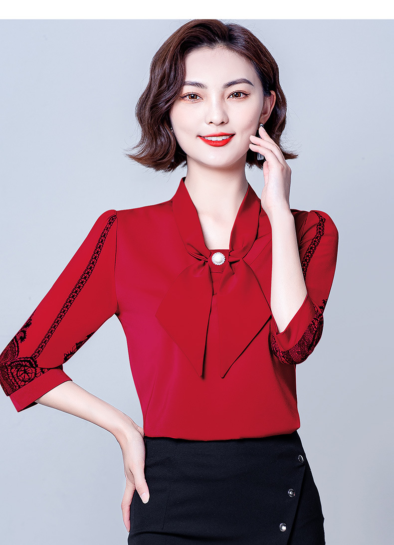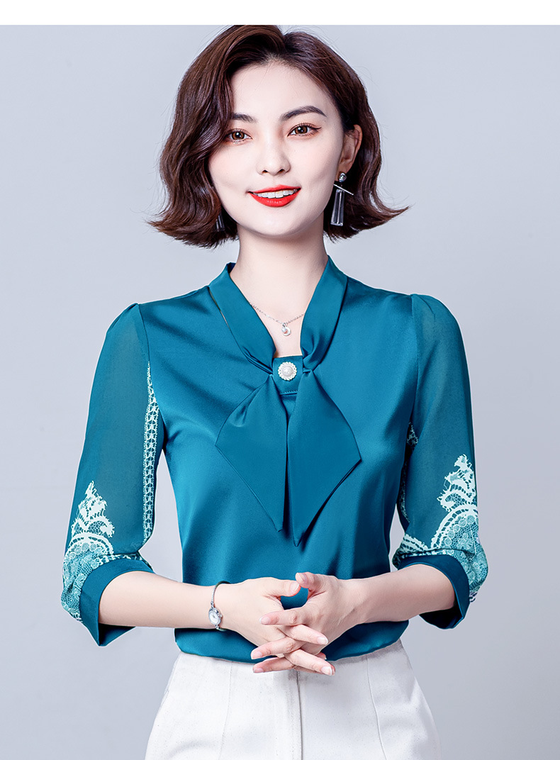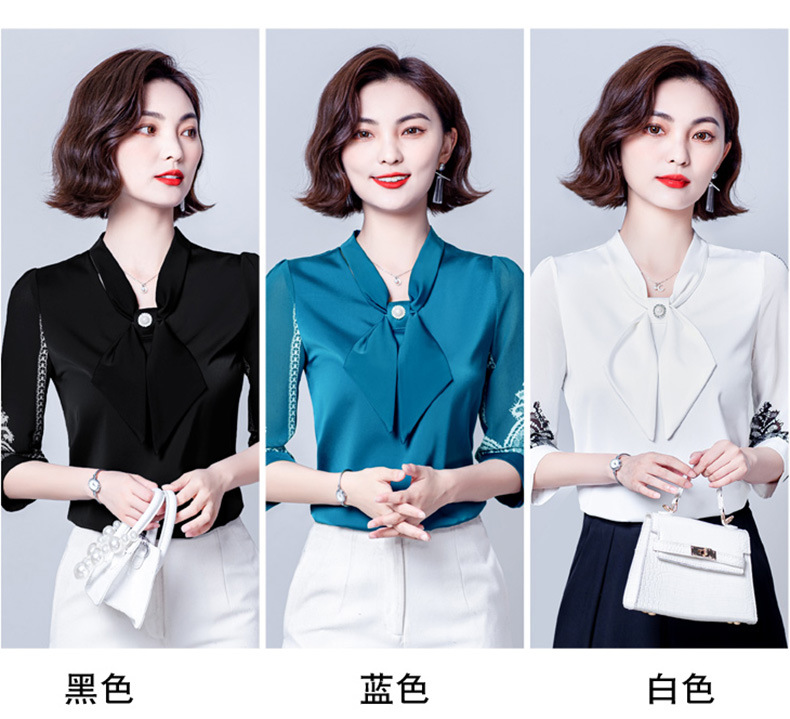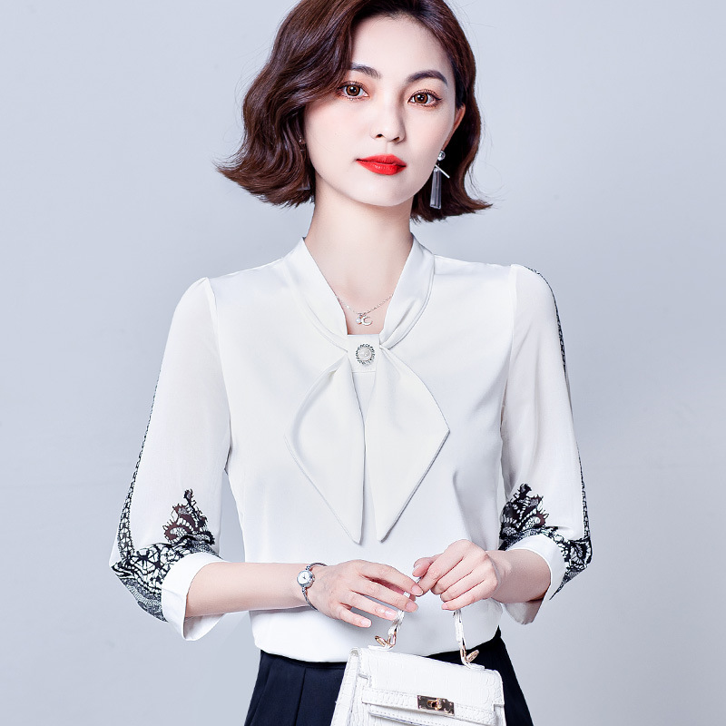 세븐 슬리브 쉬폰 셔츠 여성용 봄 웨스턴 스타일 미드 슬리브 여성용 셔츠 고급 센스 중년 어머니 루즈 탑 여름스토어 가기