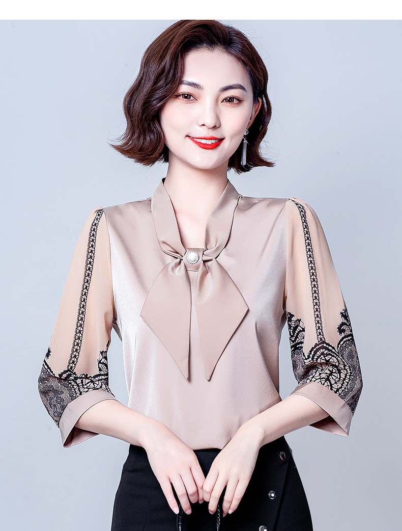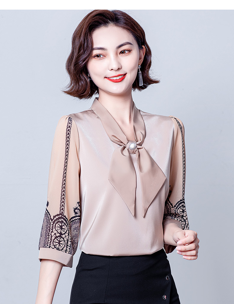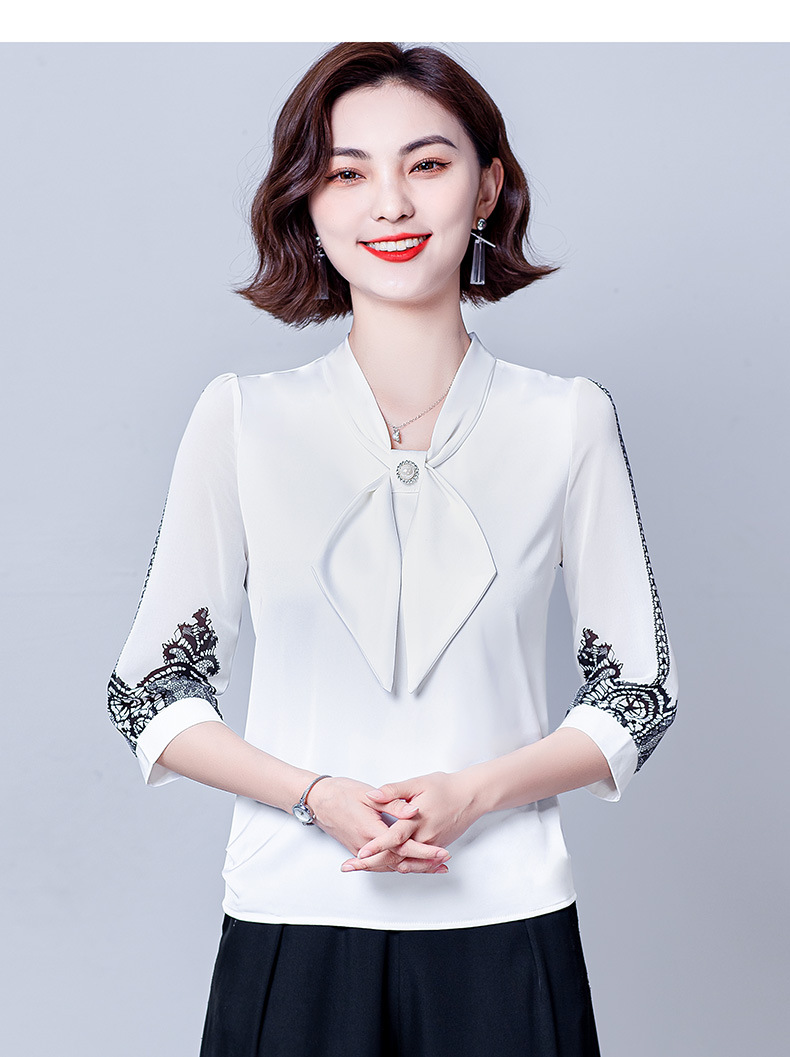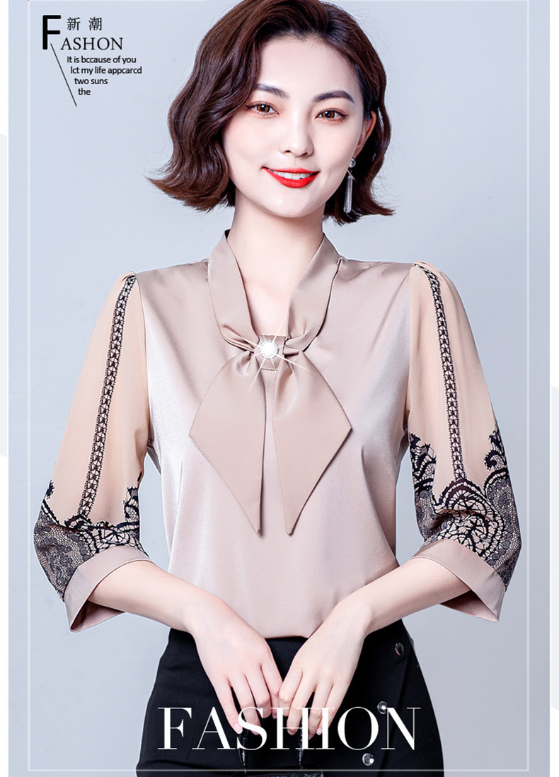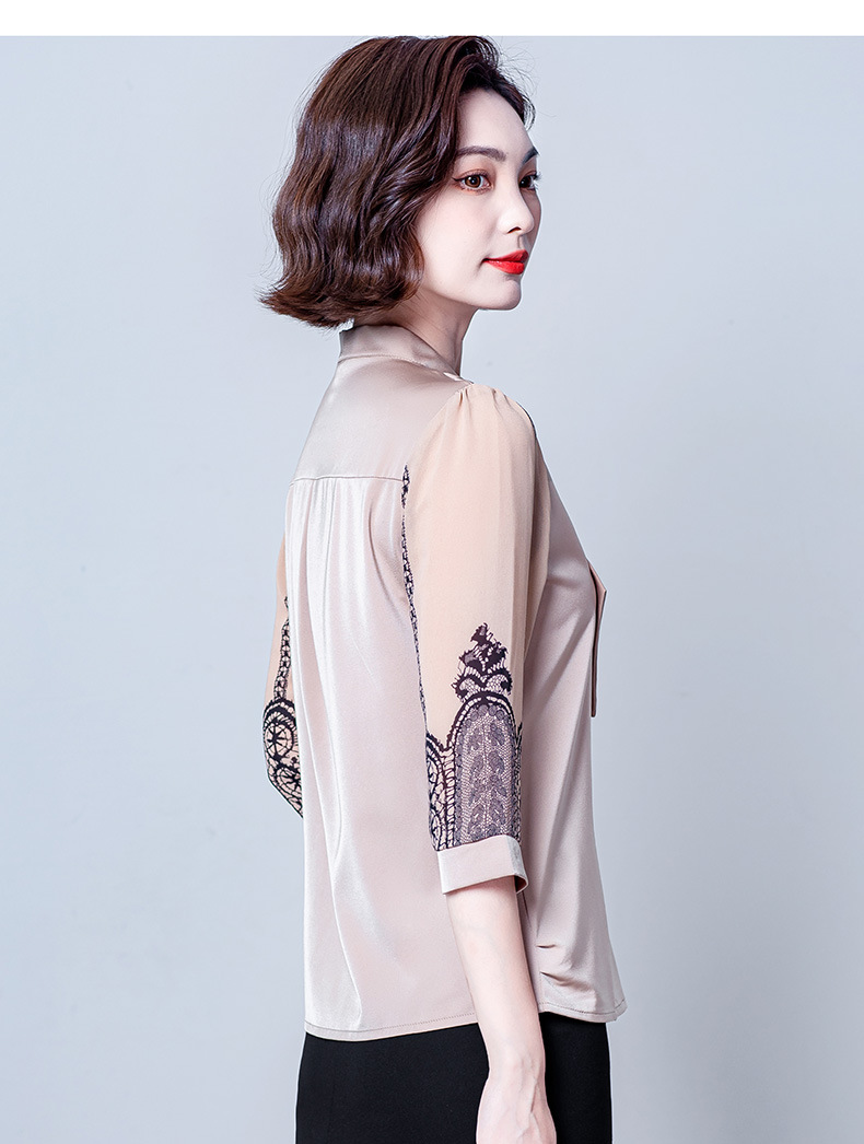 세븐 슬리브 쉬폰 셔츠 여성용 봄 웨스턴 스타일 미드 슬리브 여성용 셔츠 고급 센스 중년 어머니 루즈 탑 여름