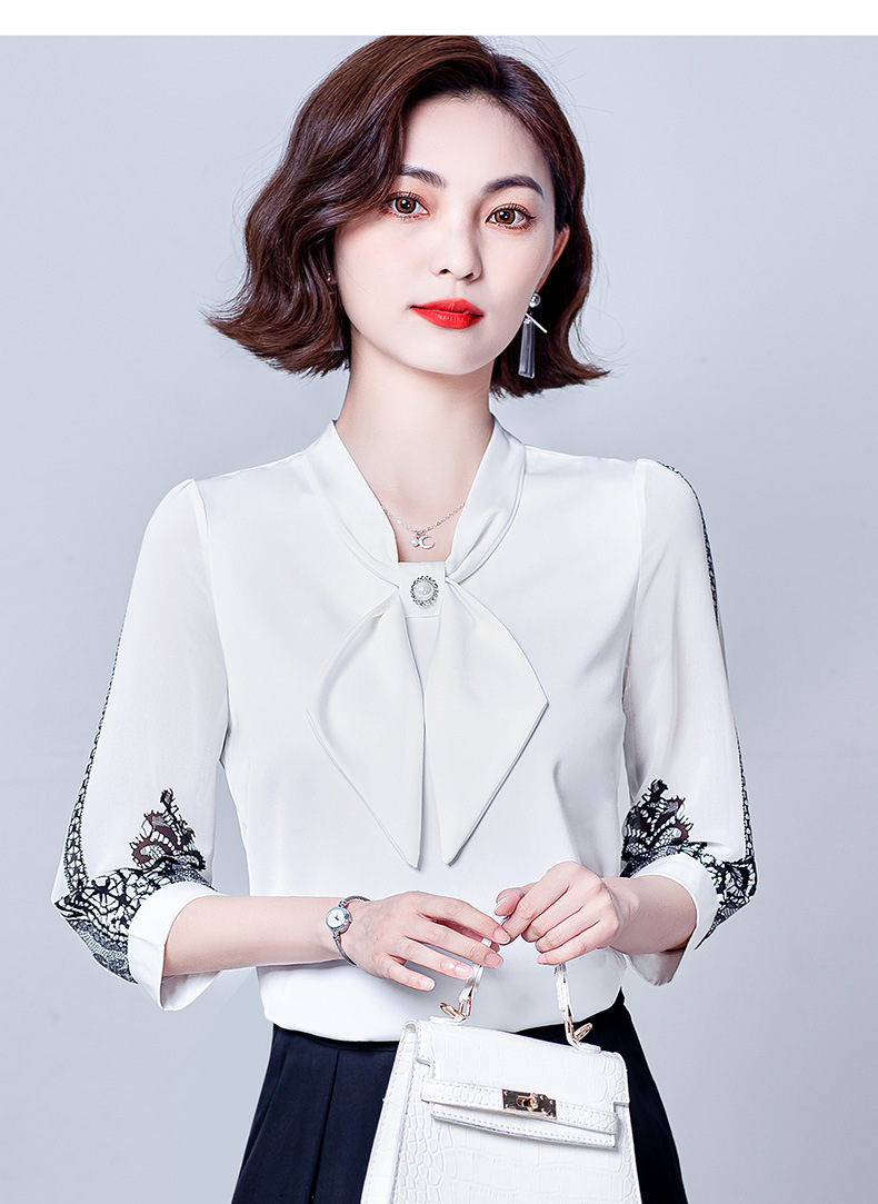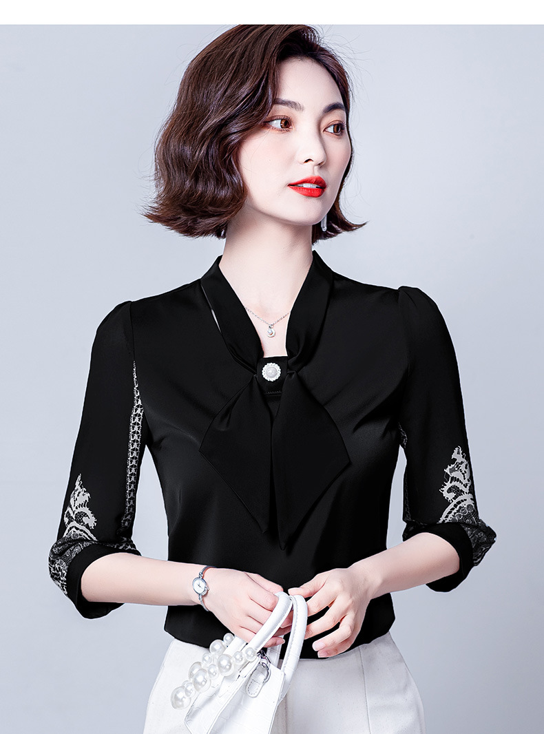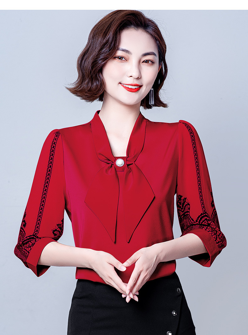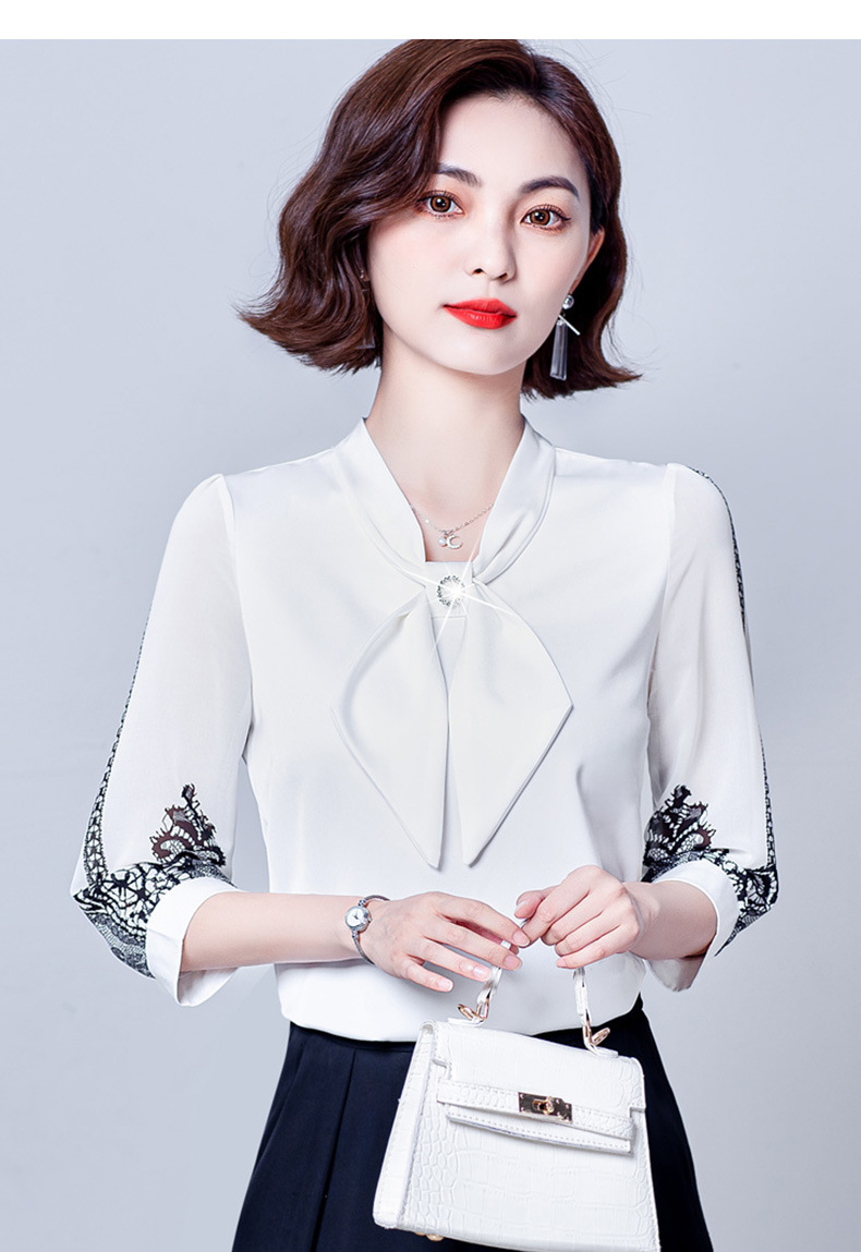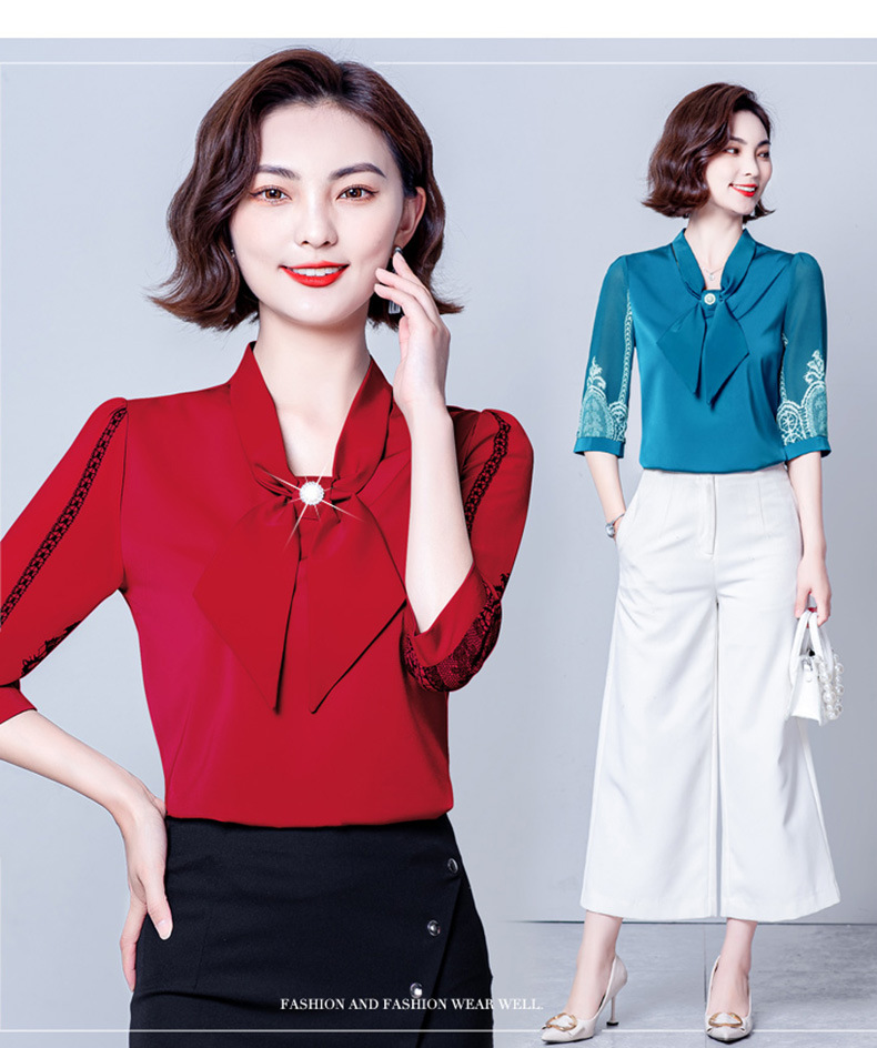 세븐 슬리브 쉬폰 셔츠 여성용 봄 웨스턴 스타일 미드 슬리브 여성용 셔츠 고급 센스 중년 어머니 루즈 탑 여름