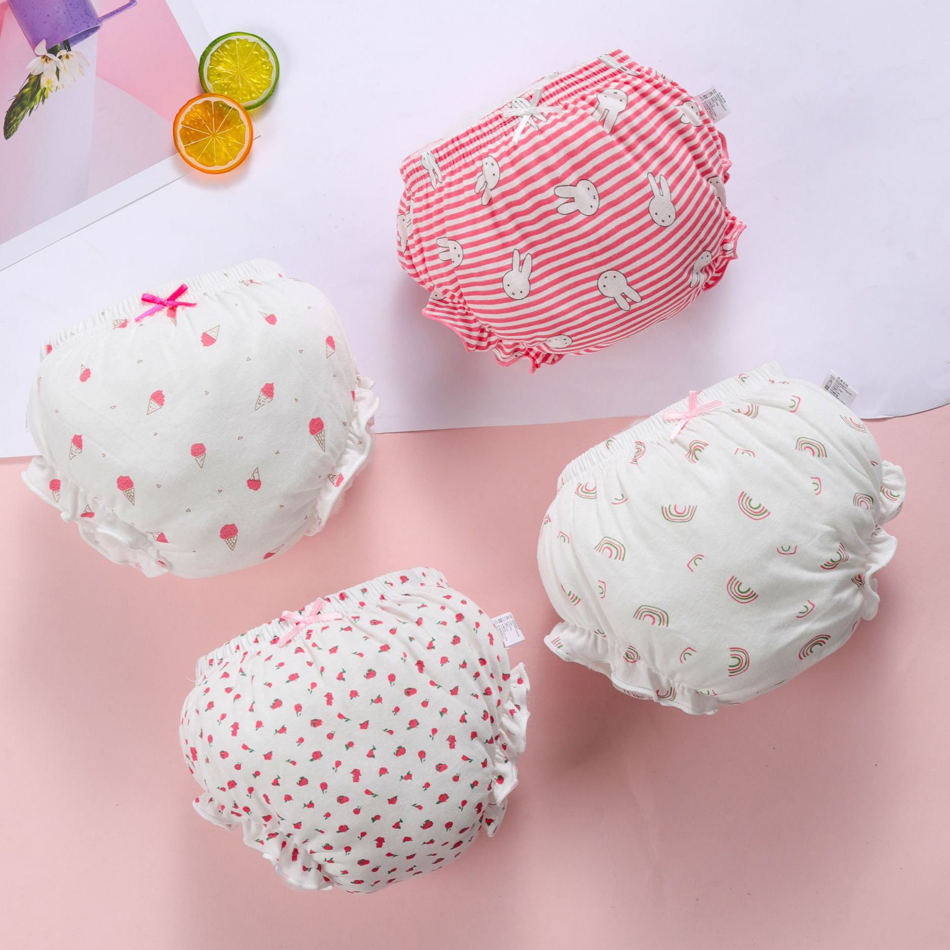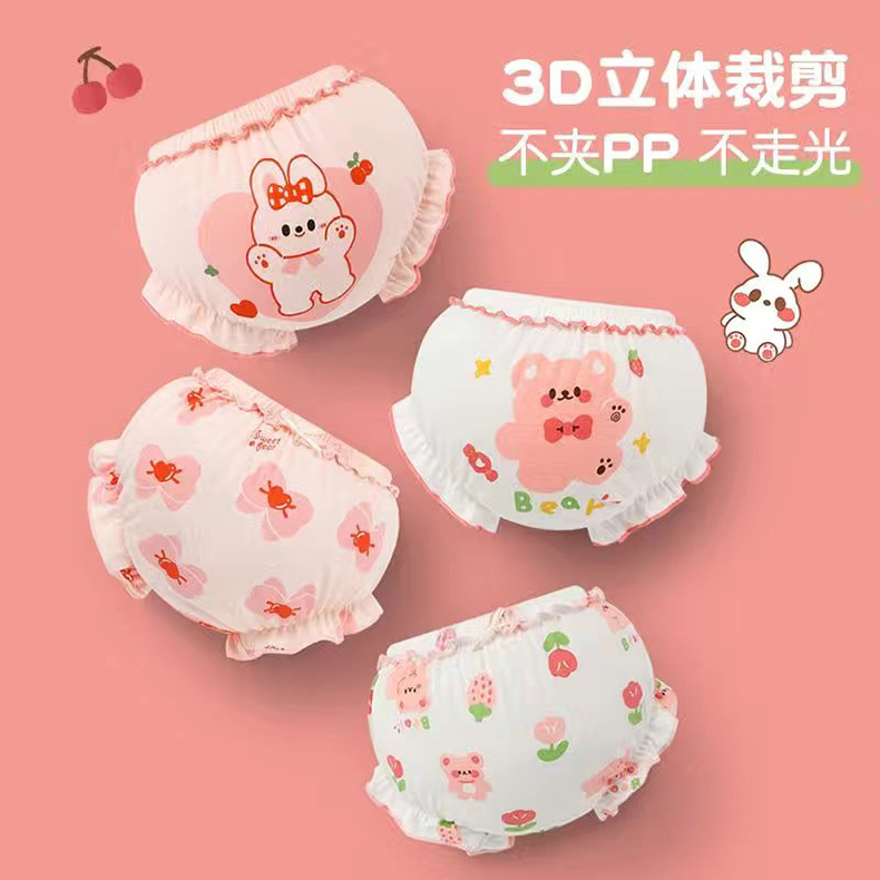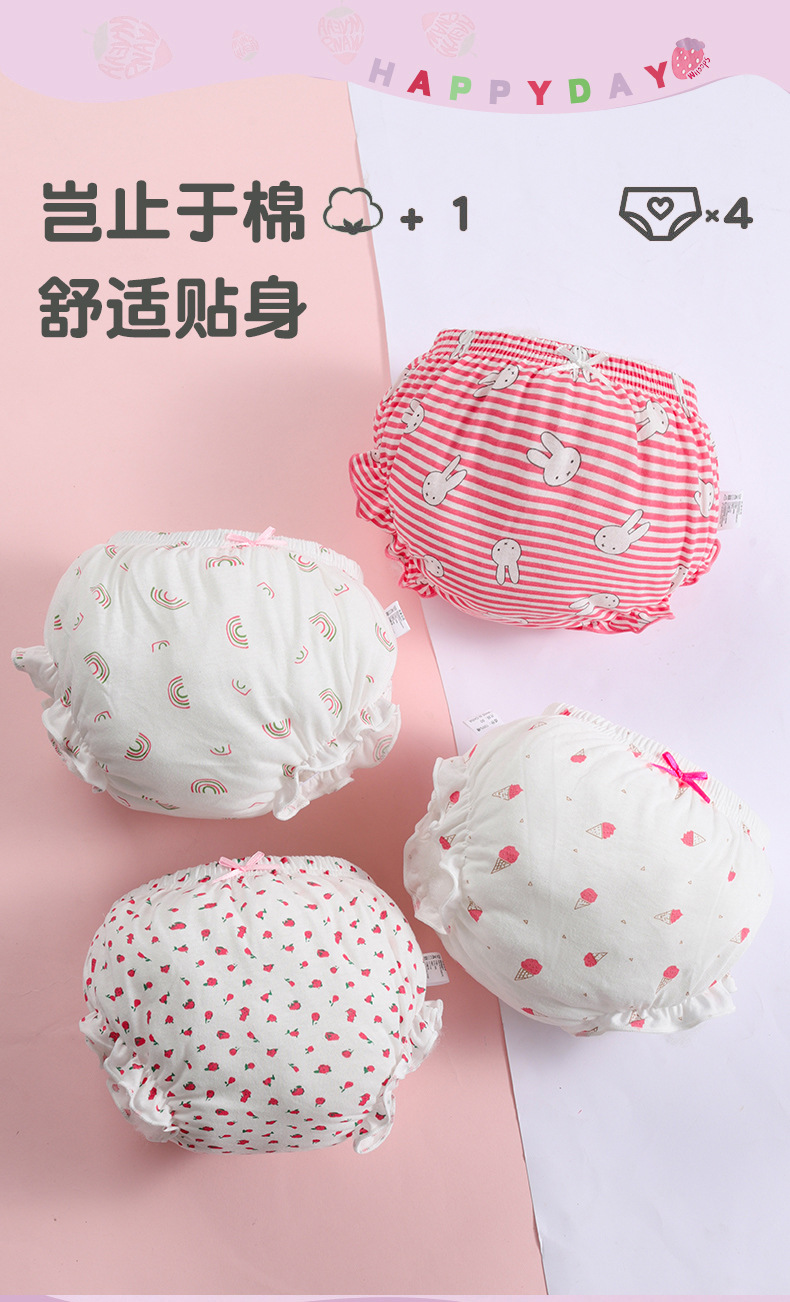 영유아 속옷, 여아 여름 어린이 순면 새싹 바지, 여아 삼각 팬티, PP가 없는 순면