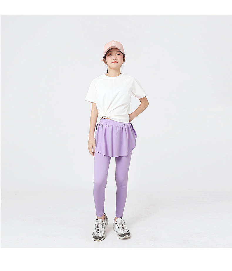 봄과 여름 한국 스타일 새로운 스타일 여자 스포츠 바지와 스커트 큰 어린이를위한 단색 모기 방지 바지 어린이 레깅스 도매