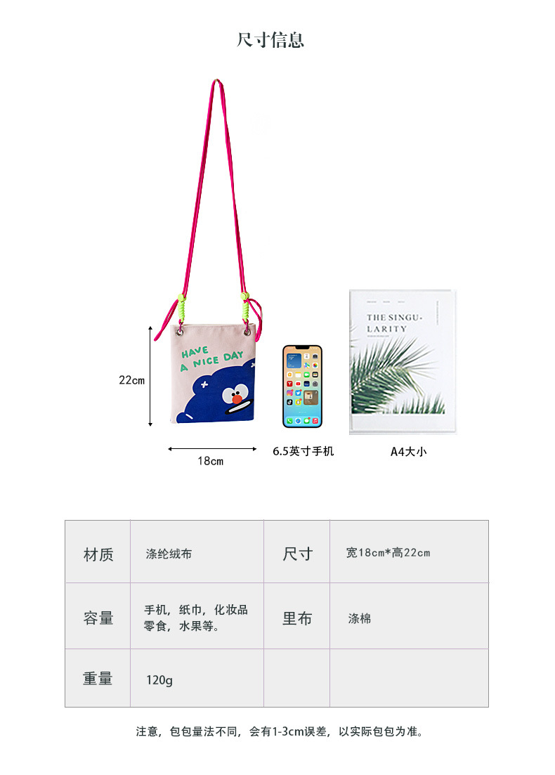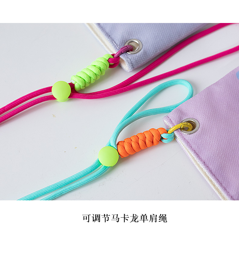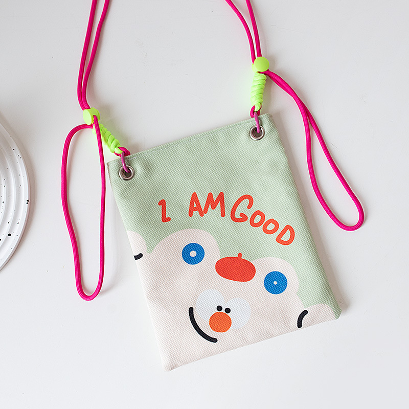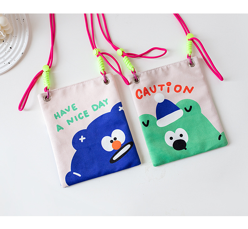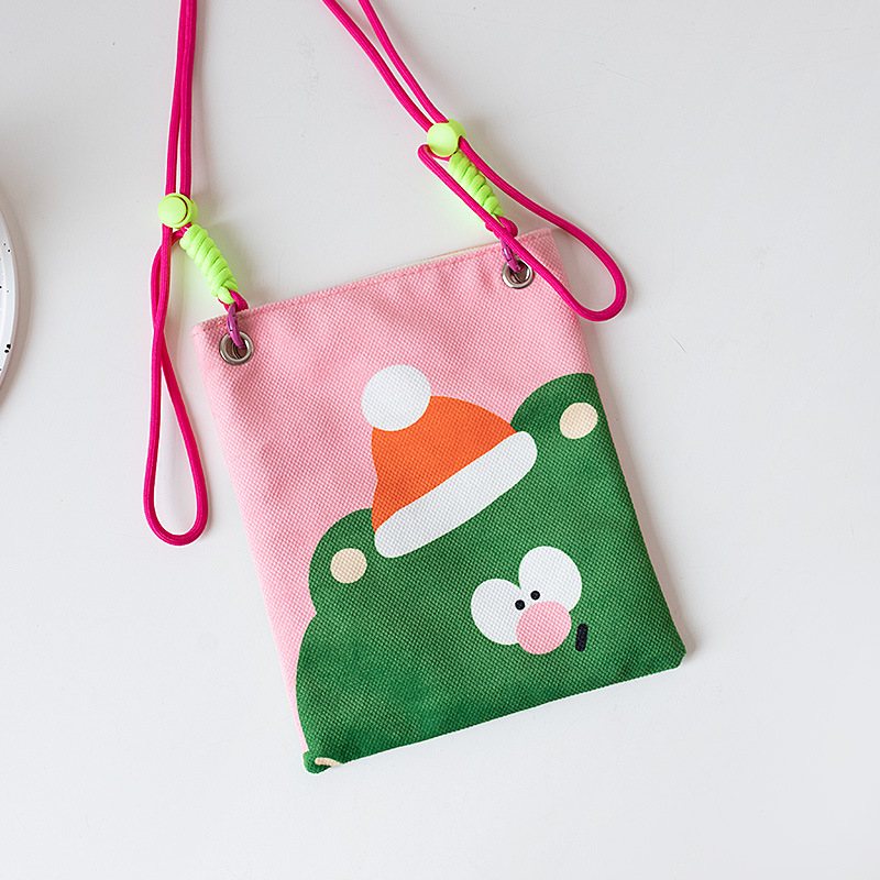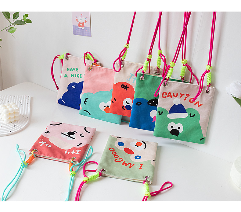 2024 오리지널 봄 여름 새로운 Crossbody 가방 여성 컬러 매칭 마카롱 스플 라이스 어린이 귀여운 만화 작은 천 가방
