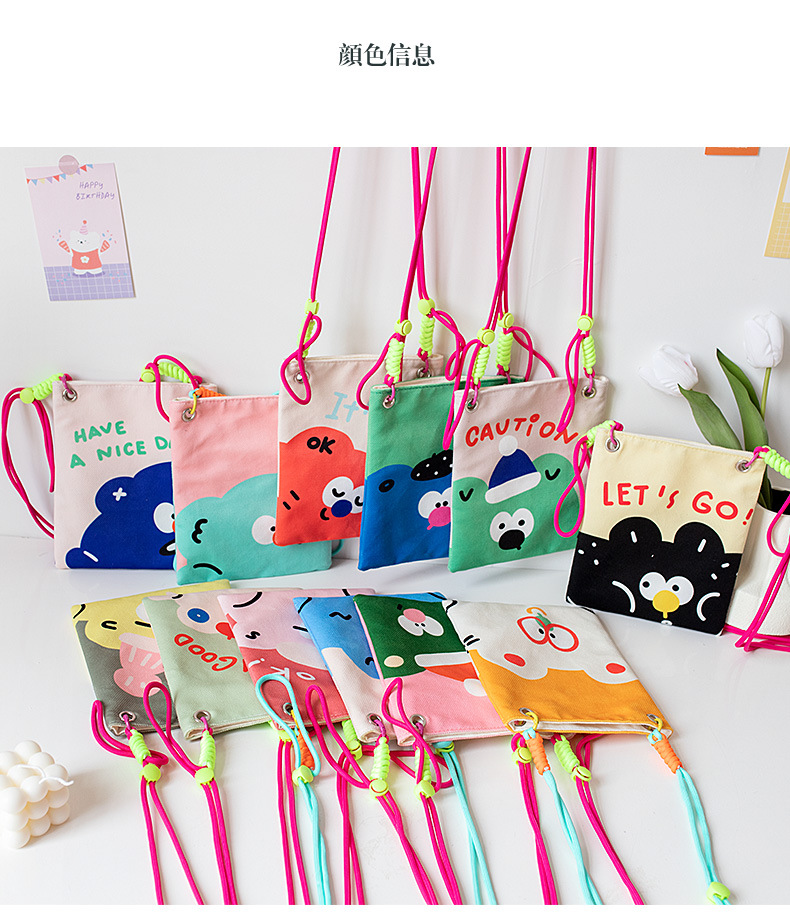 2024 오리지널 봄 여름 새로운 Crossbody 가방 여성 컬러 매칭 마카롱 스플 라이스 어린이 귀여운 만화 작은 천 가방스토어 가기