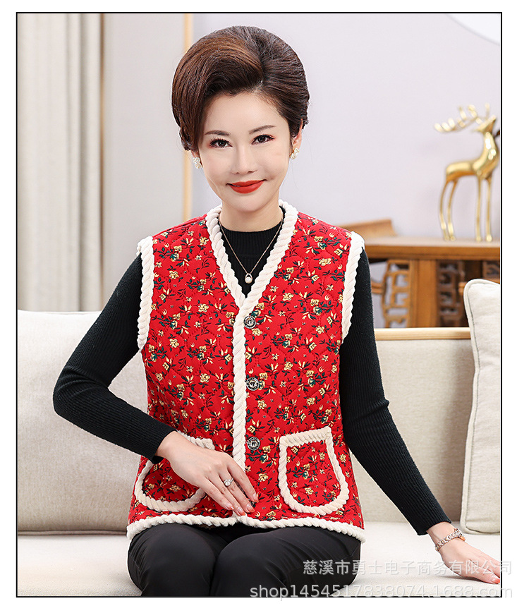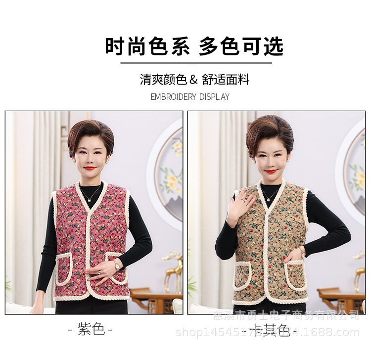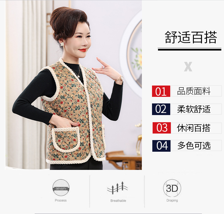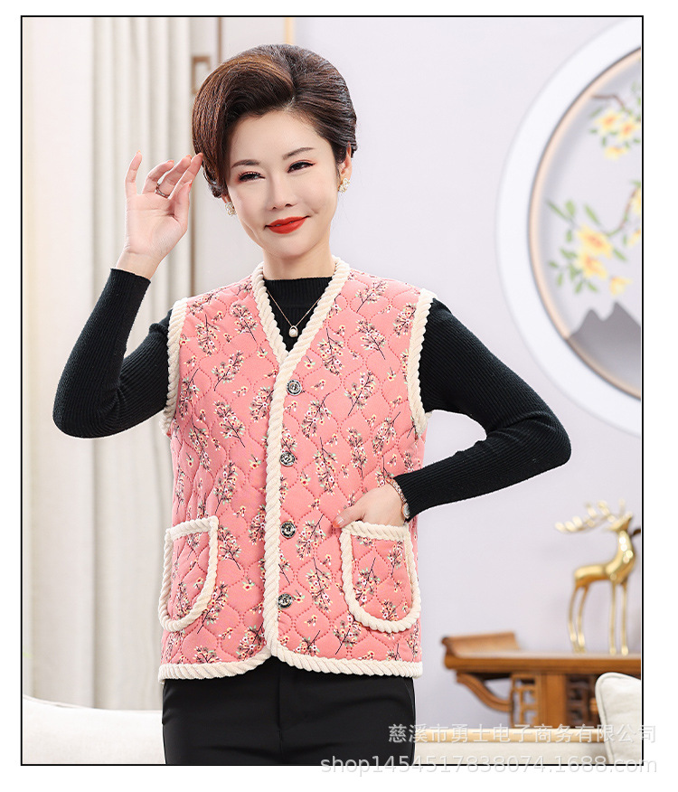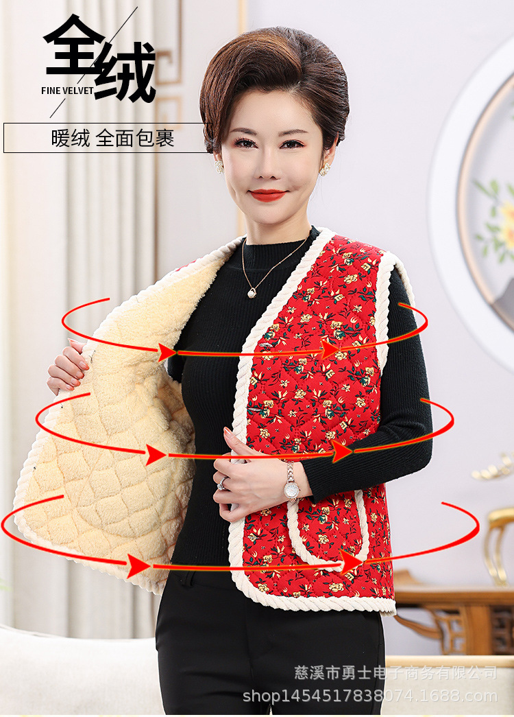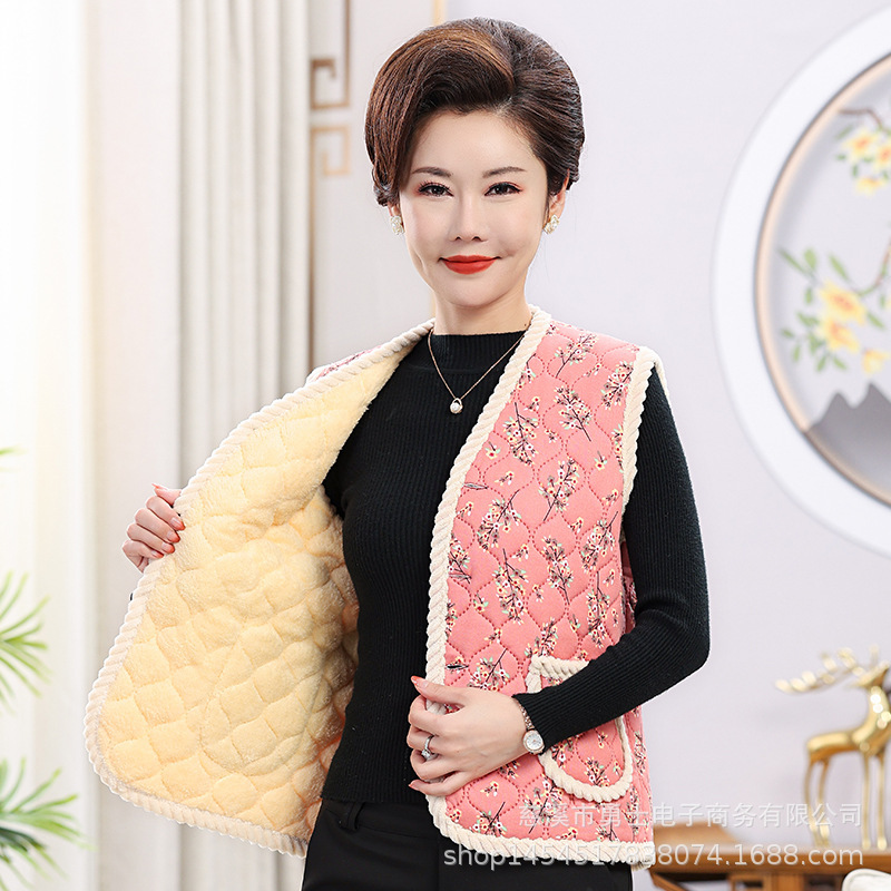 중년 및 노년 여성 조끼, 가을 겨울 조끼, 벨벳 따뜻한 면 조끼, 중년 어머니 의류, 대형 조끼스토어 가기