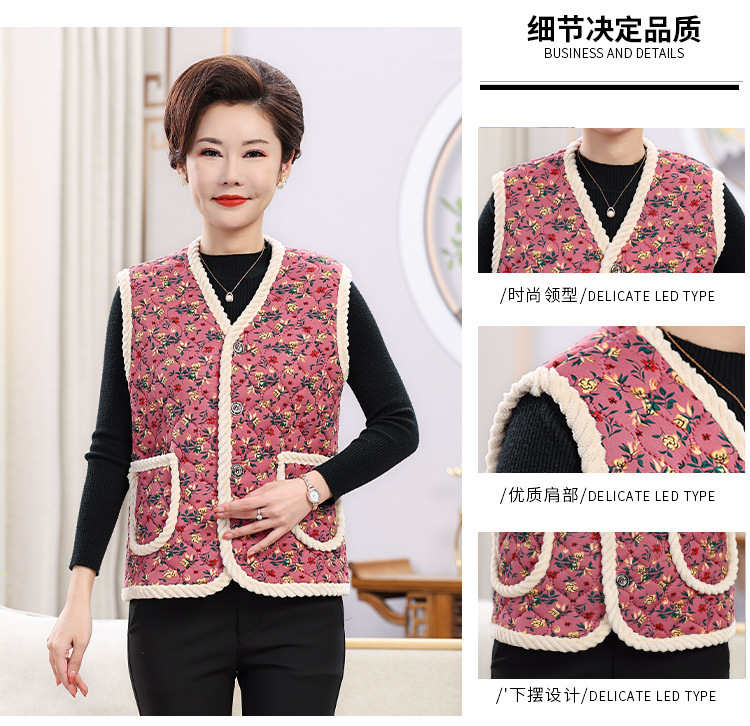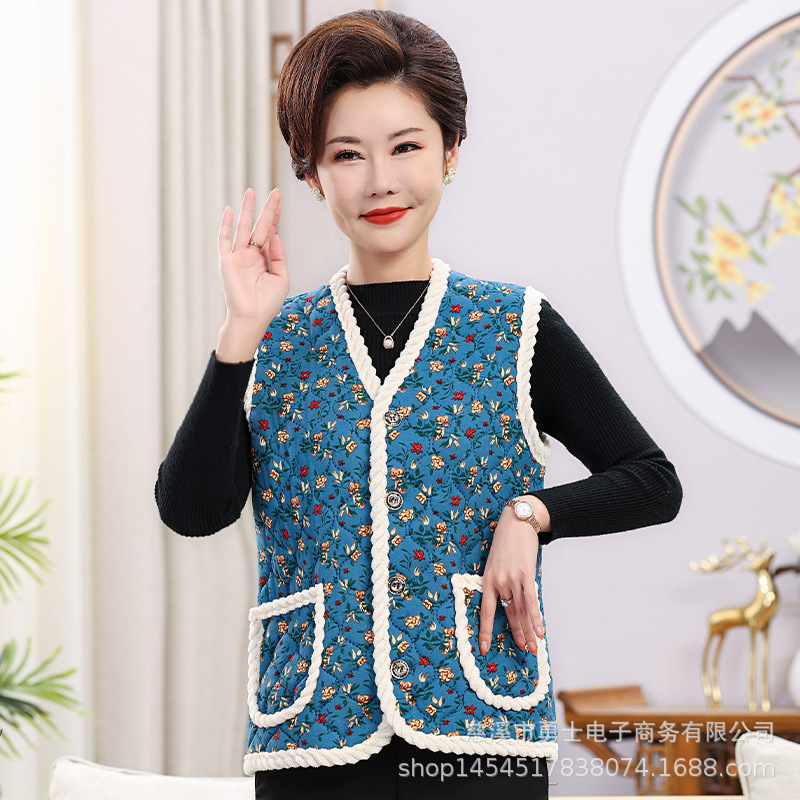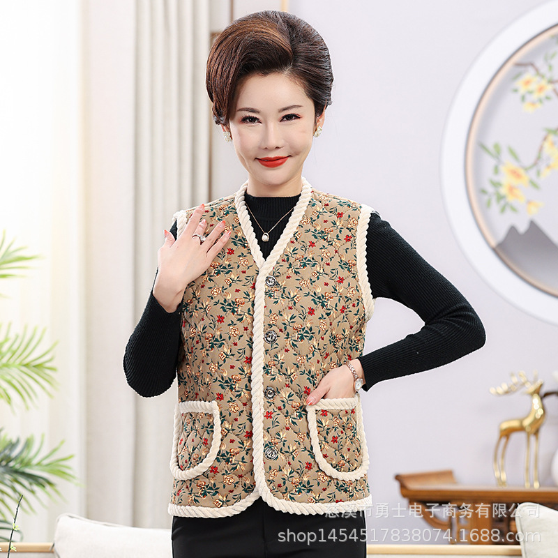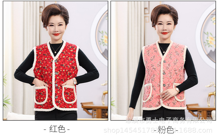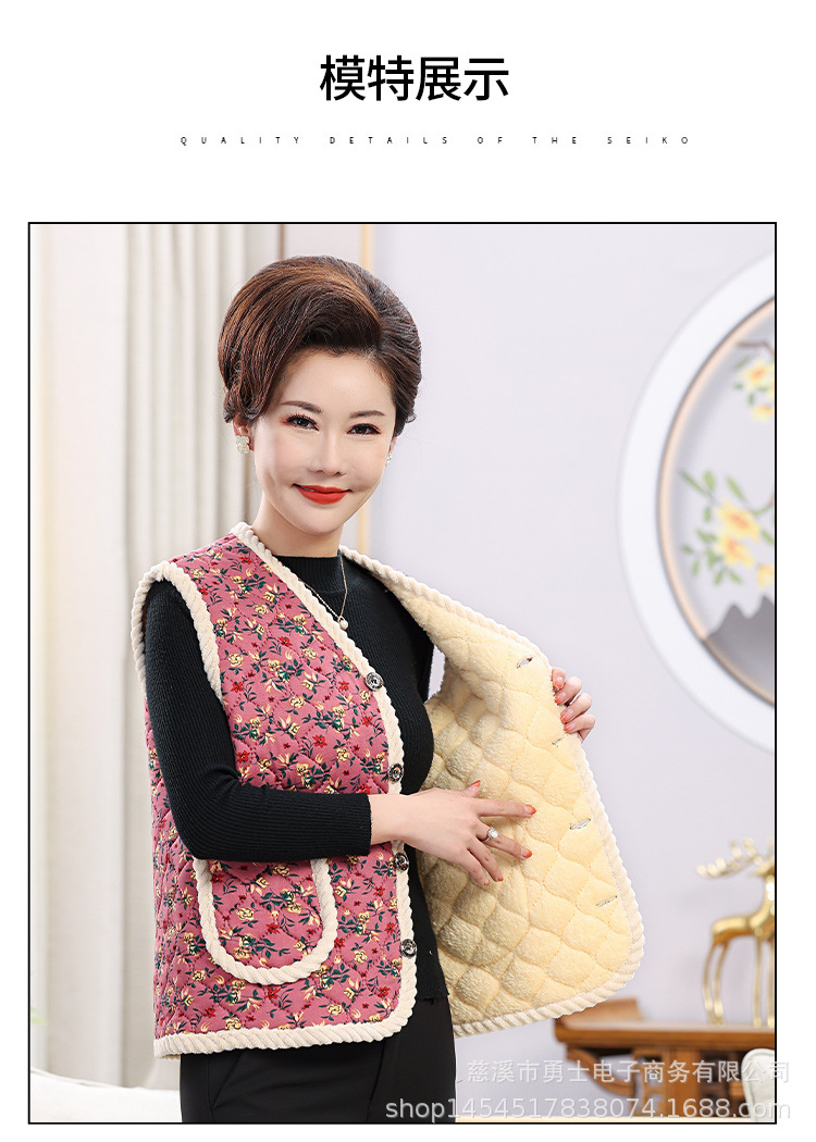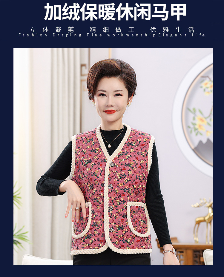 중년 및 노년 여성 조끼, 가을 겨울 조끼, 벨벳 따뜻한 면 조끼, 중년 어머니 의류, 대형 조끼스토어 가기