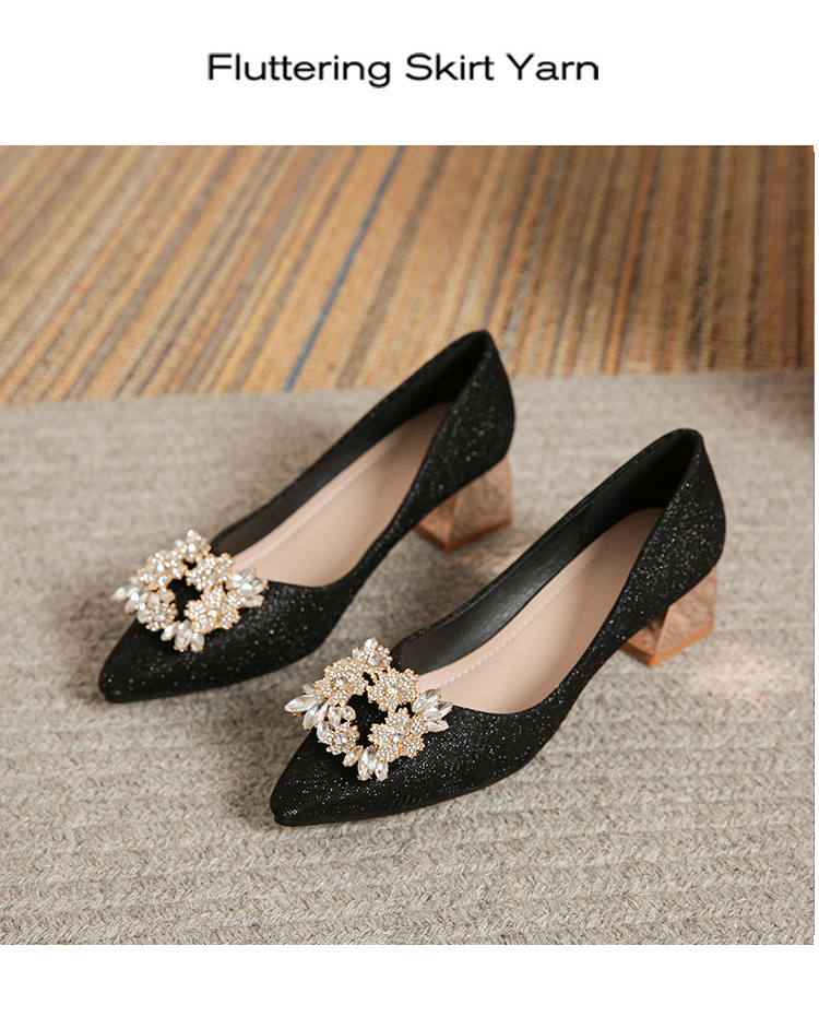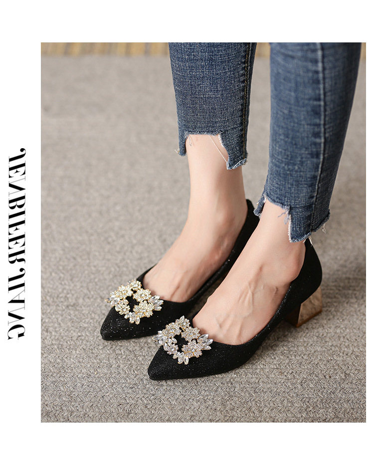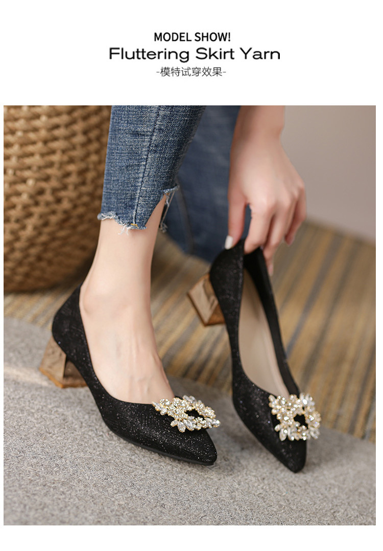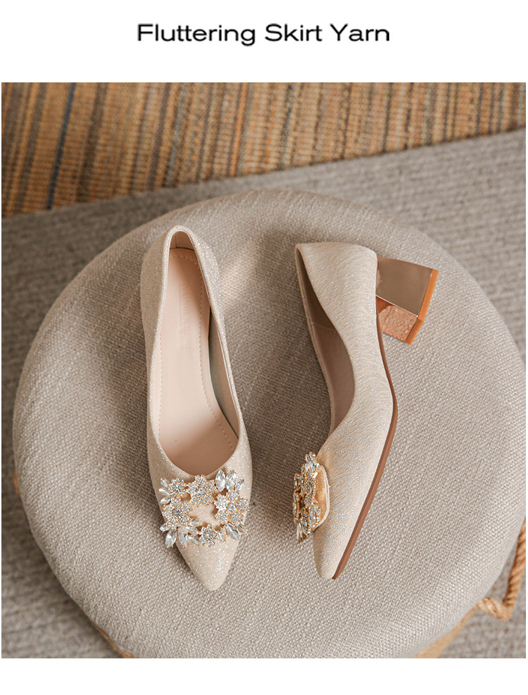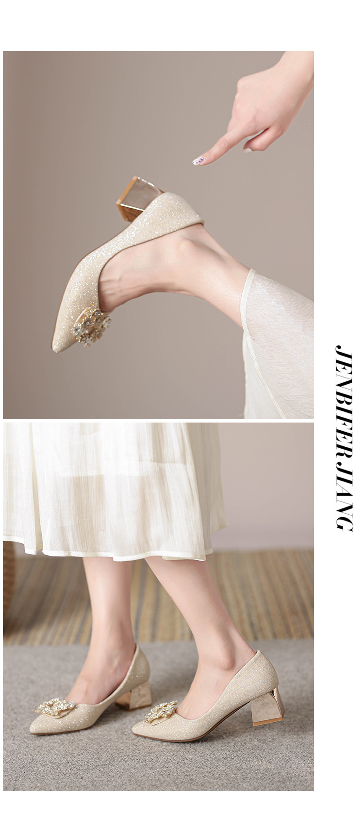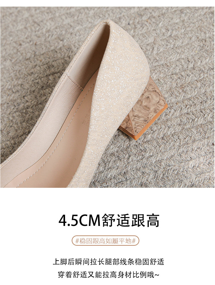 프렌치 스타일 누드 컬러 하이힐 여성용 2024년 봄 뾰족코 얕은 굽 중간 굽 큰 사이즈 41 여성용 신발 살구색 인기 상품
