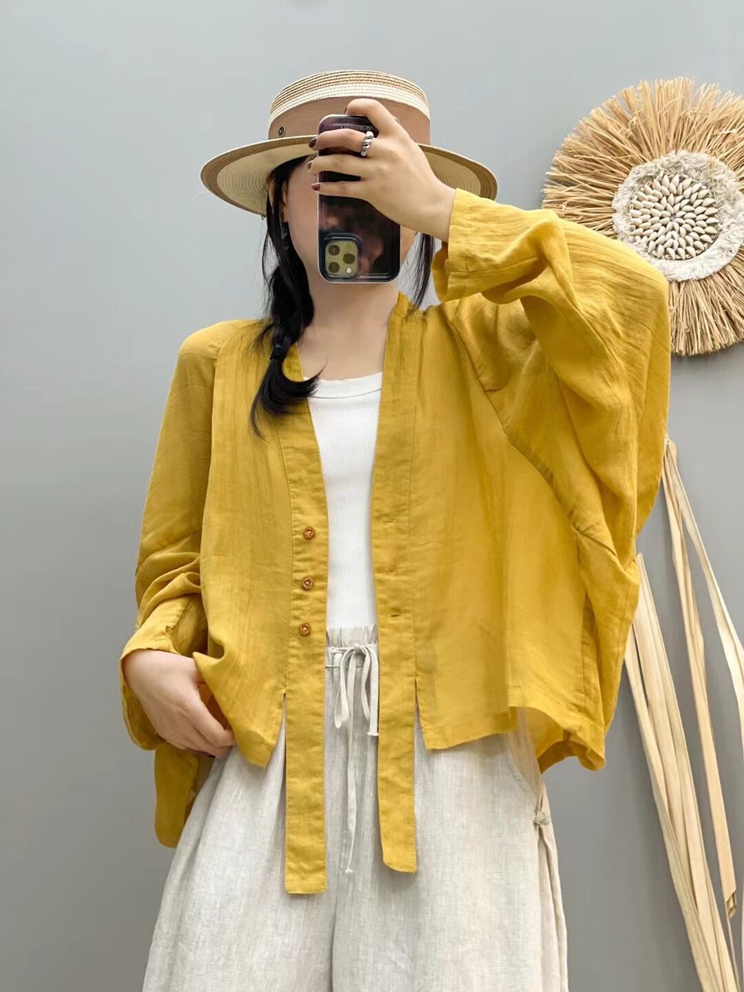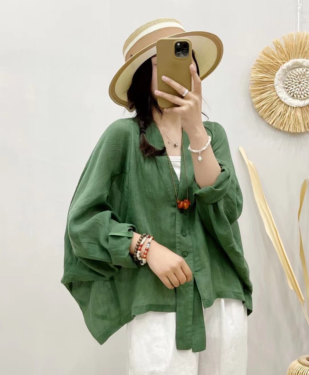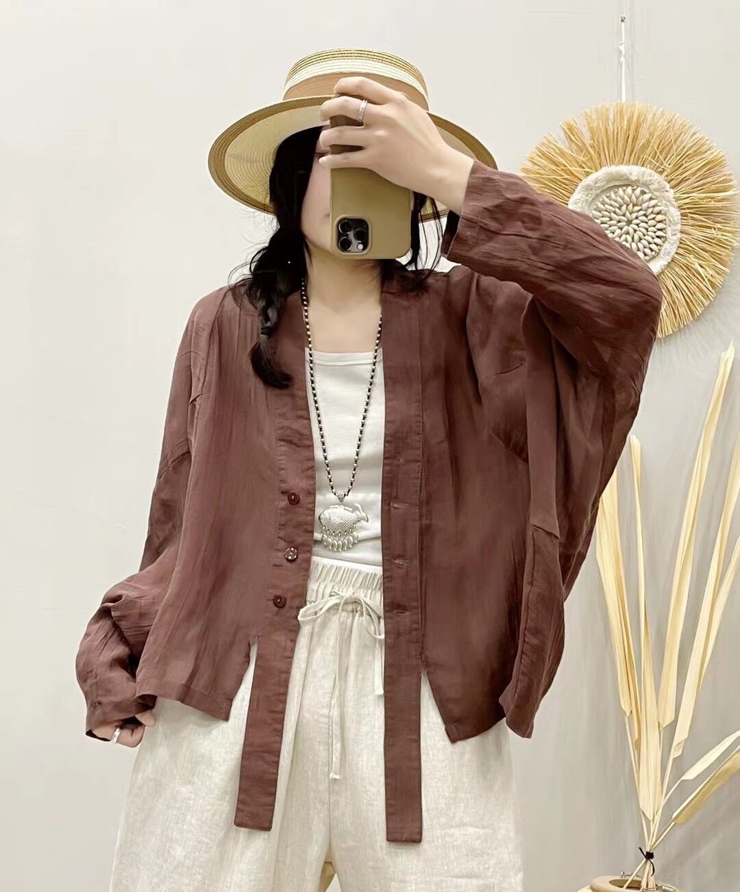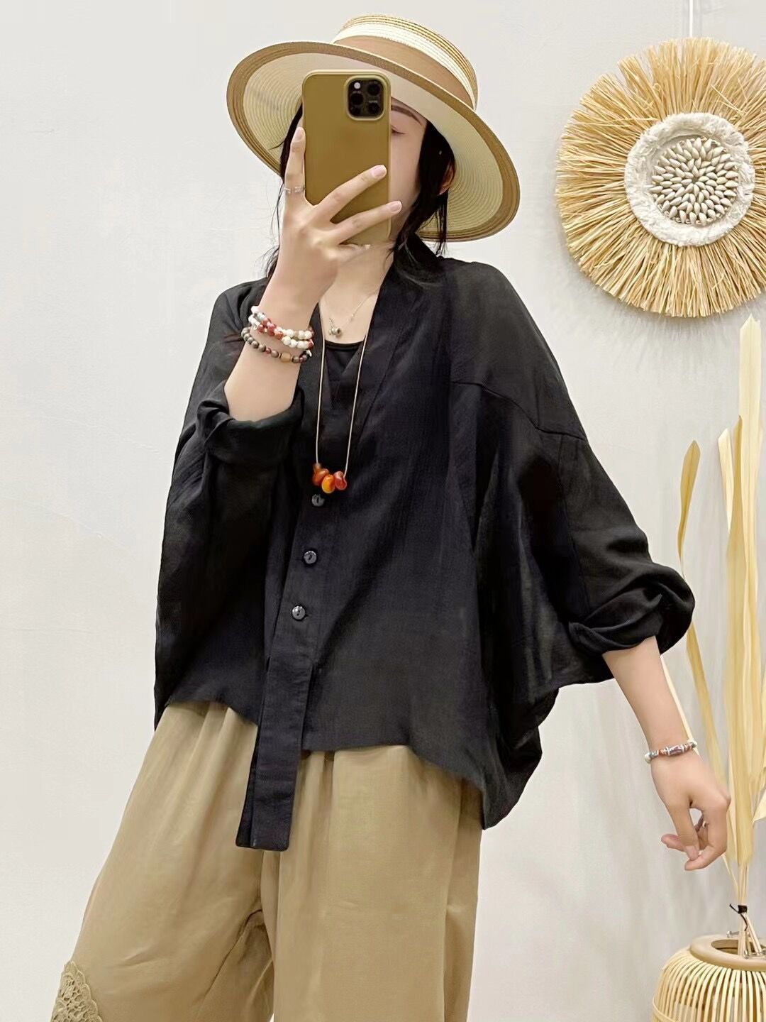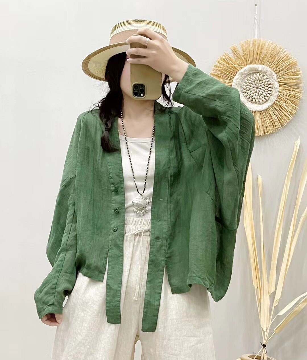 순수 라미 주름 셔츠 20234 봄 새로운 디자인 카디건 탑 여성용 V 넥 긴팔 셔츠 9530스토어 가기