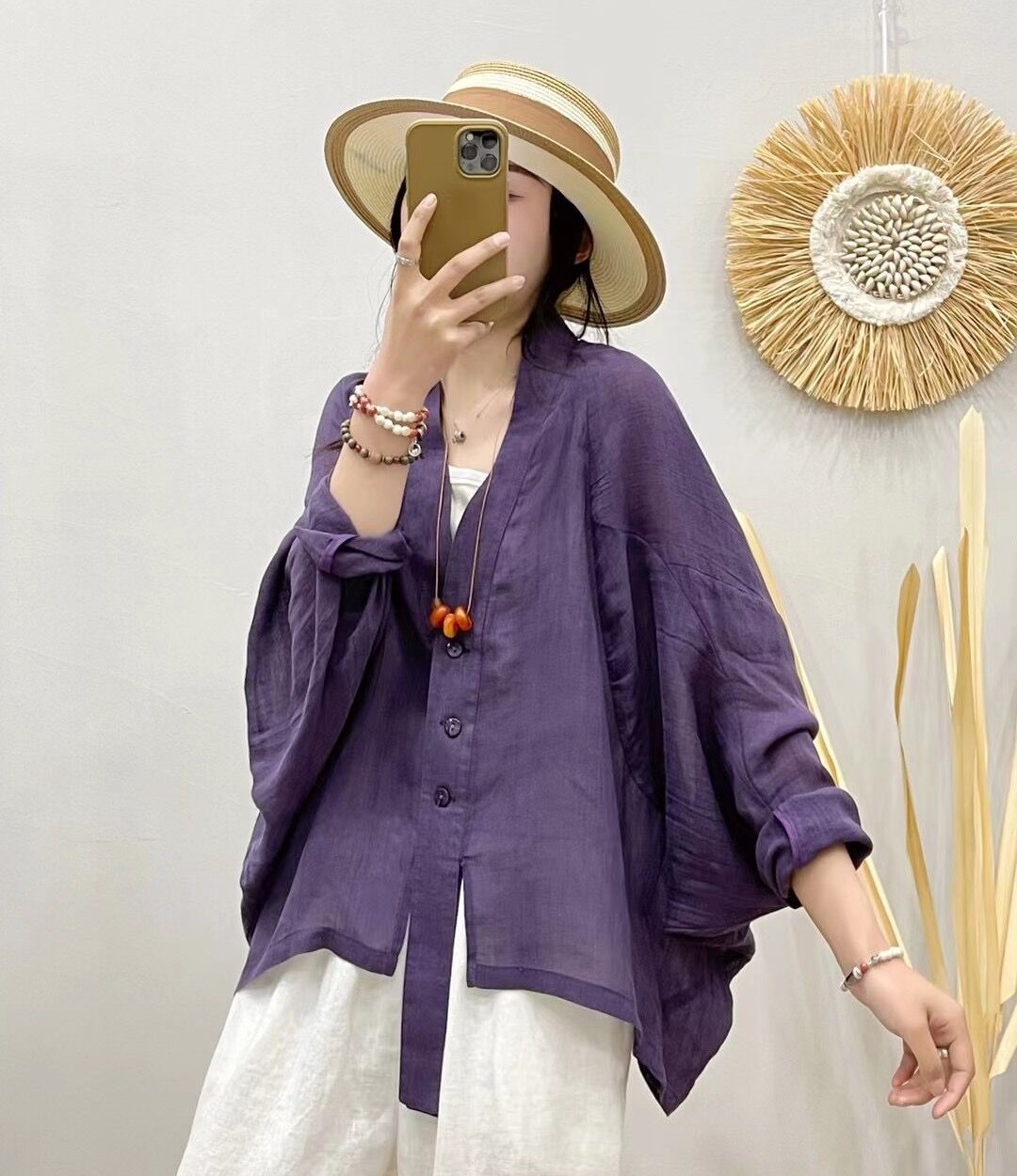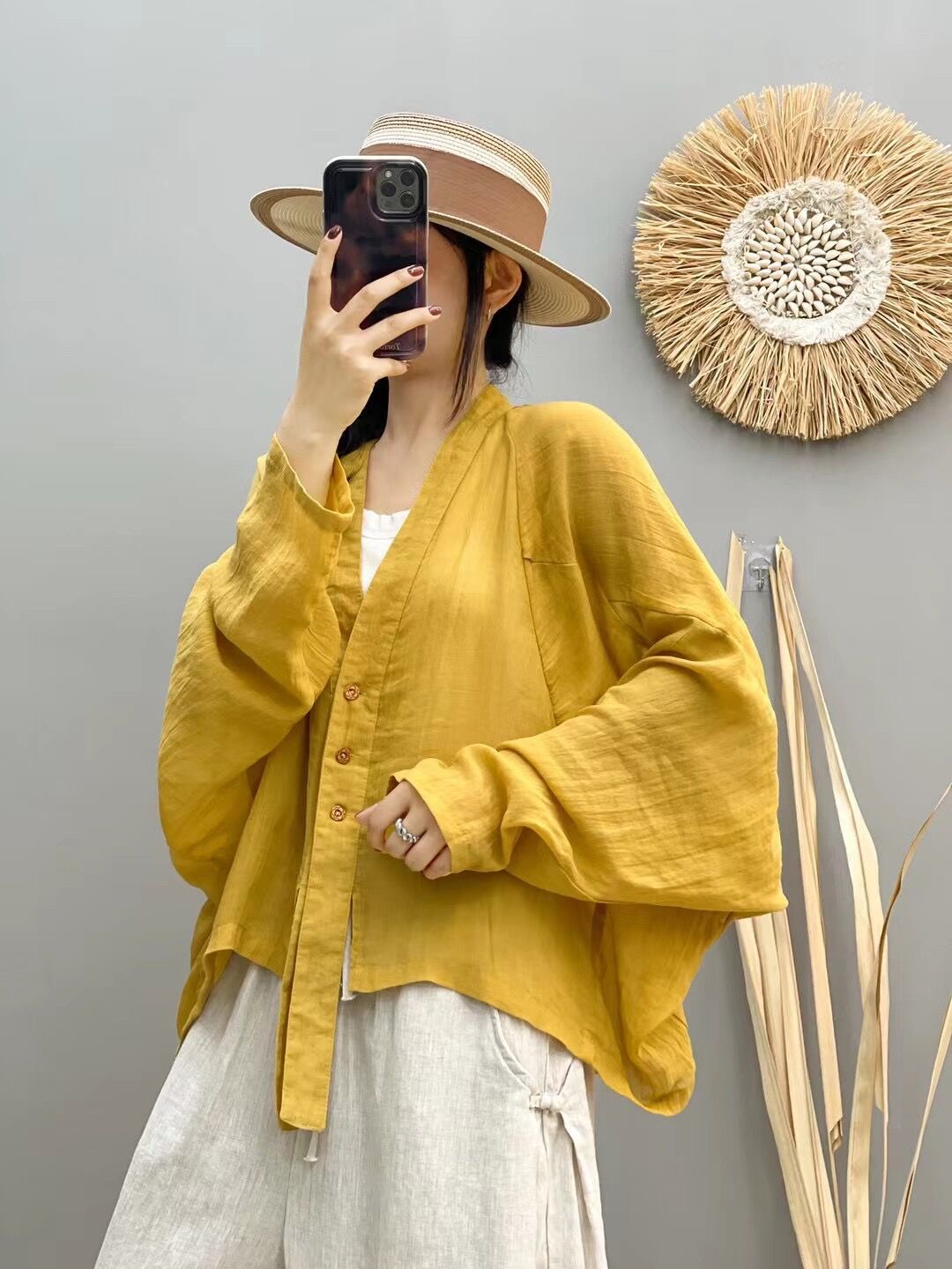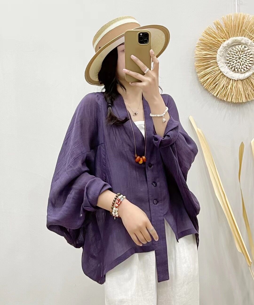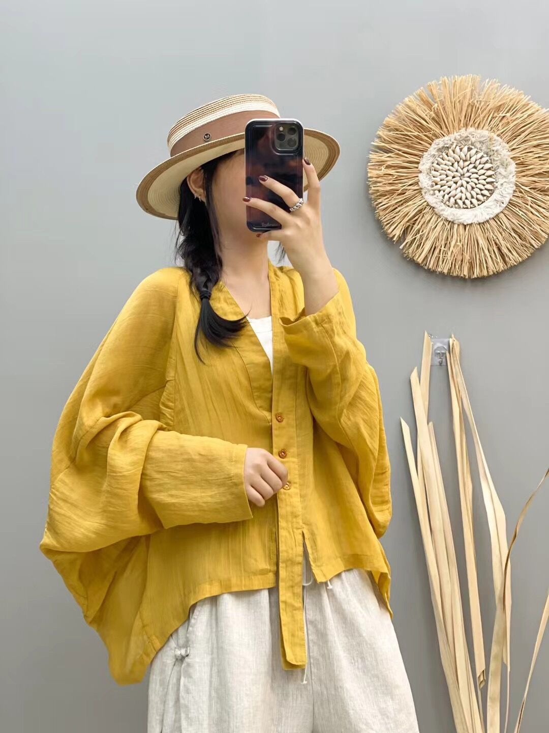 순수 라미 주름 셔츠 20234 봄 새로운 디자인 카디건 탑 여성용 V 넥 긴팔 셔츠 9530스토어 가기