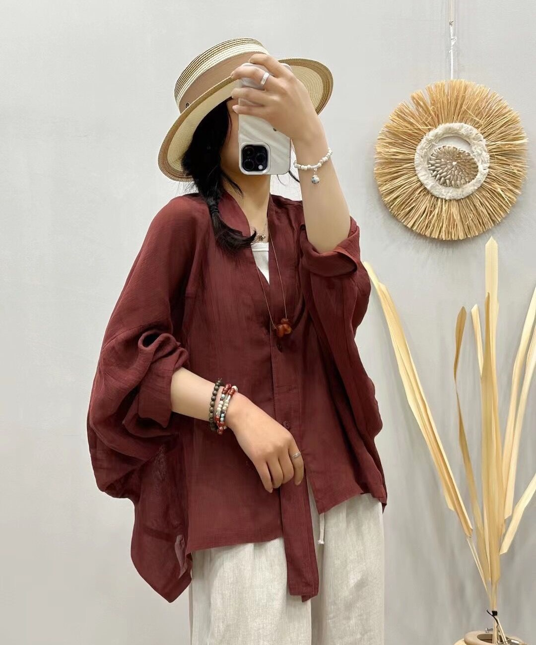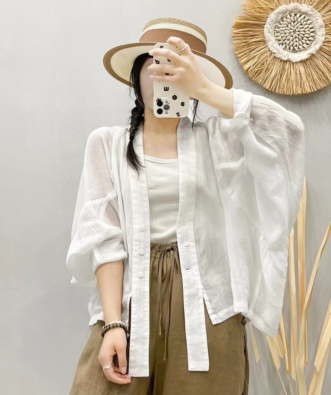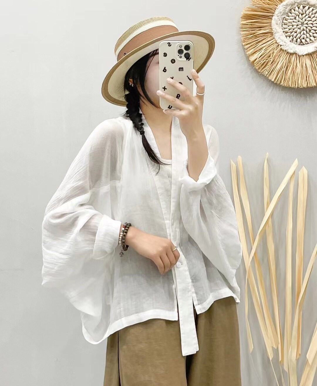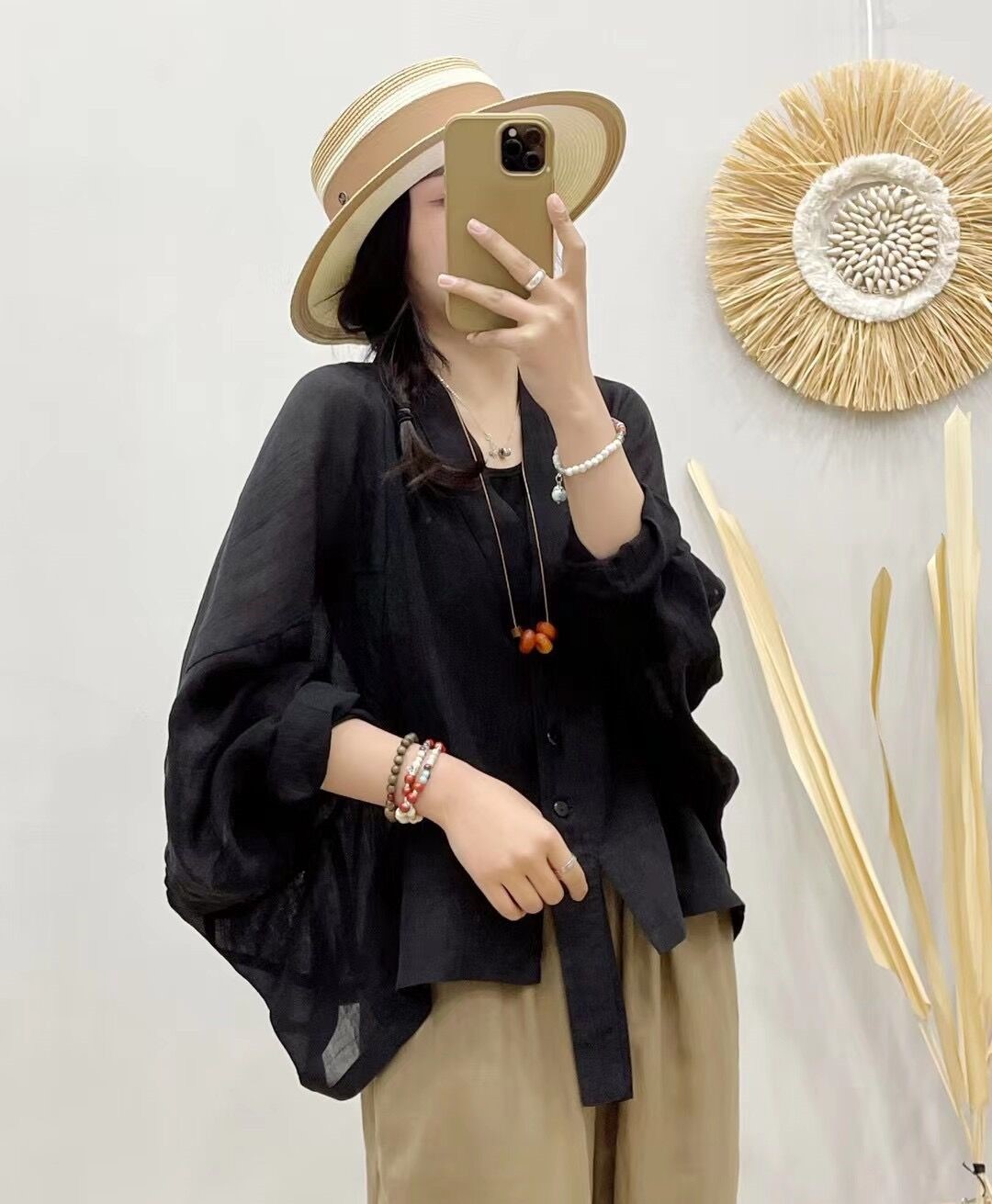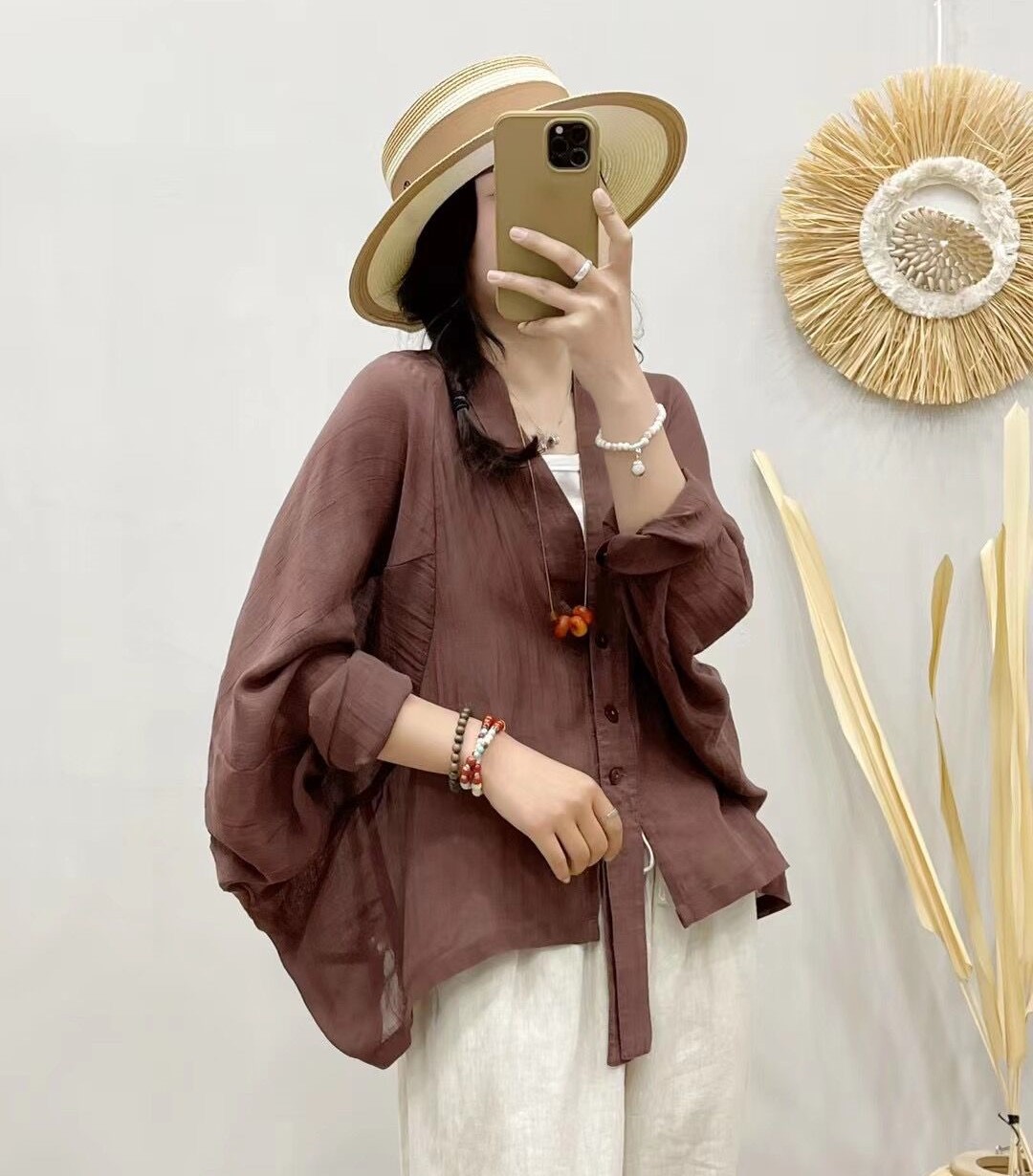 순수 라미 주름 셔츠 20234 봄 새로운 디자인 카디건 탑 여성용 V 넥 긴팔 셔츠 9530스토어 가기