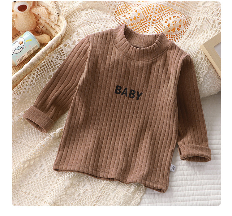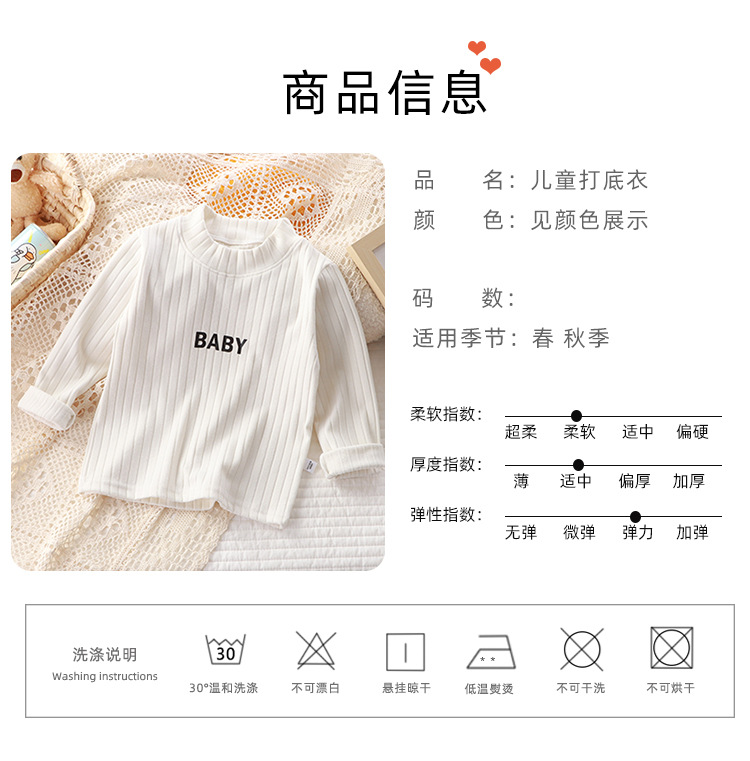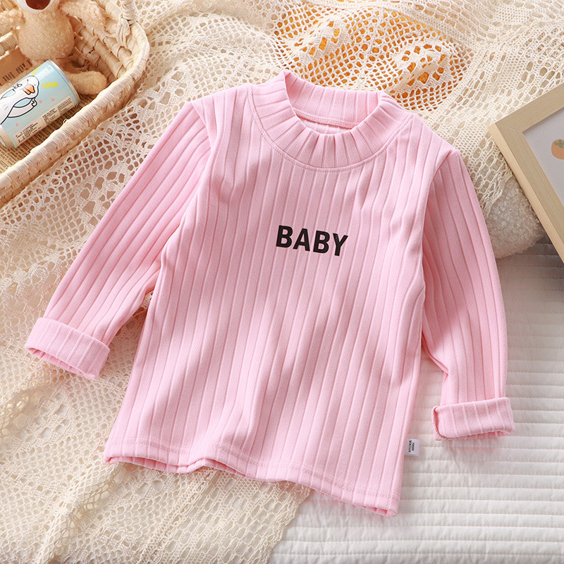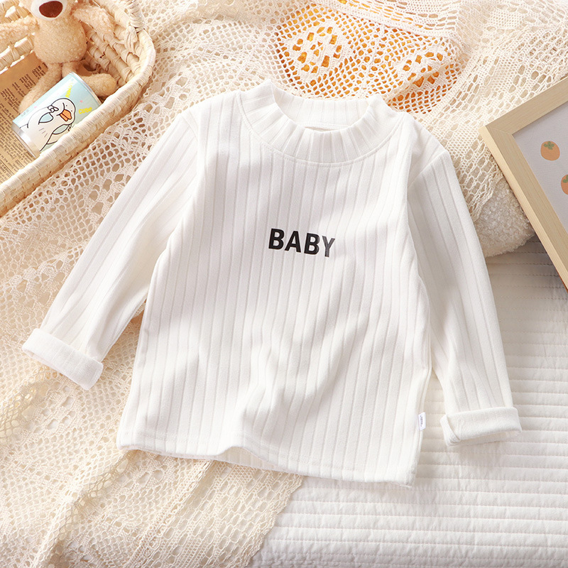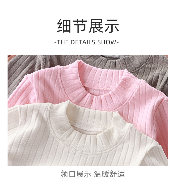 가을과 겨울 어린이 올 매치 바닥 셔츠 드 벨벳 미드 하이 칼라 아기 따뜻한 탑 소년과 소녀 긴팔 스트레치 티셔츠