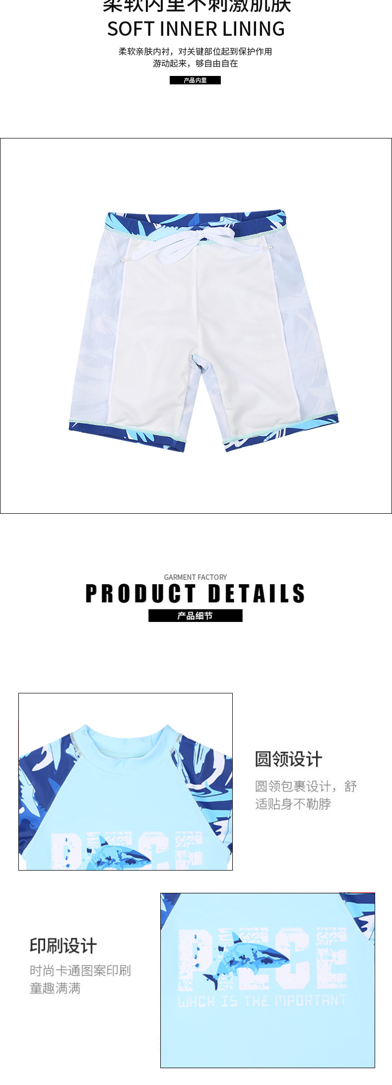 어린이 수영복 반팔 속건 위장복 세트 남아용 중대형 어린이용 자외선 차단 수영모 수영복 분리형 세트