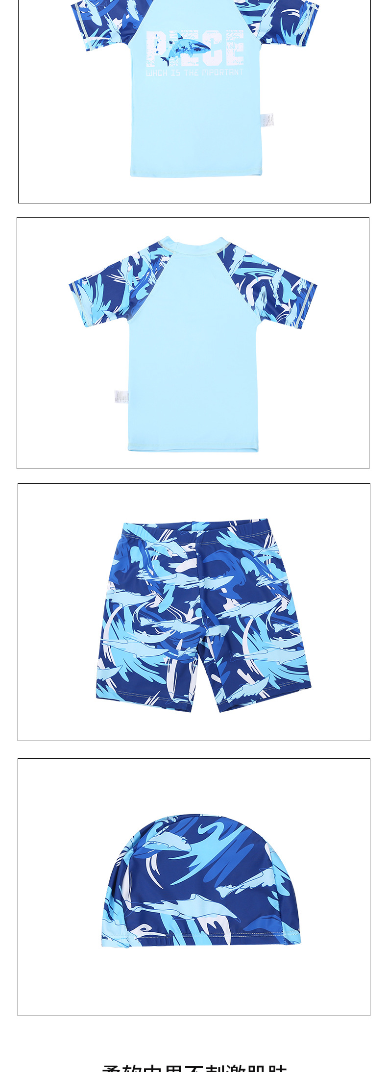 어린이 수영복 반팔 속건 위장복 세트 남아용 중대형 어린이용 자외선 차단 수영모 수영복 분리형 세트스토어 가기