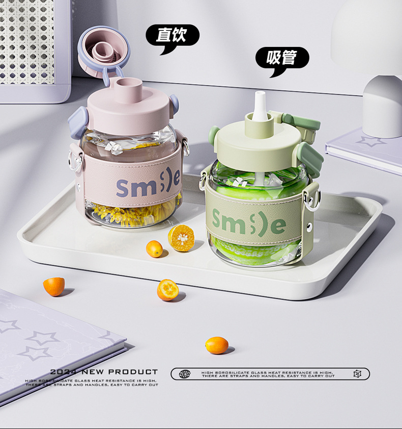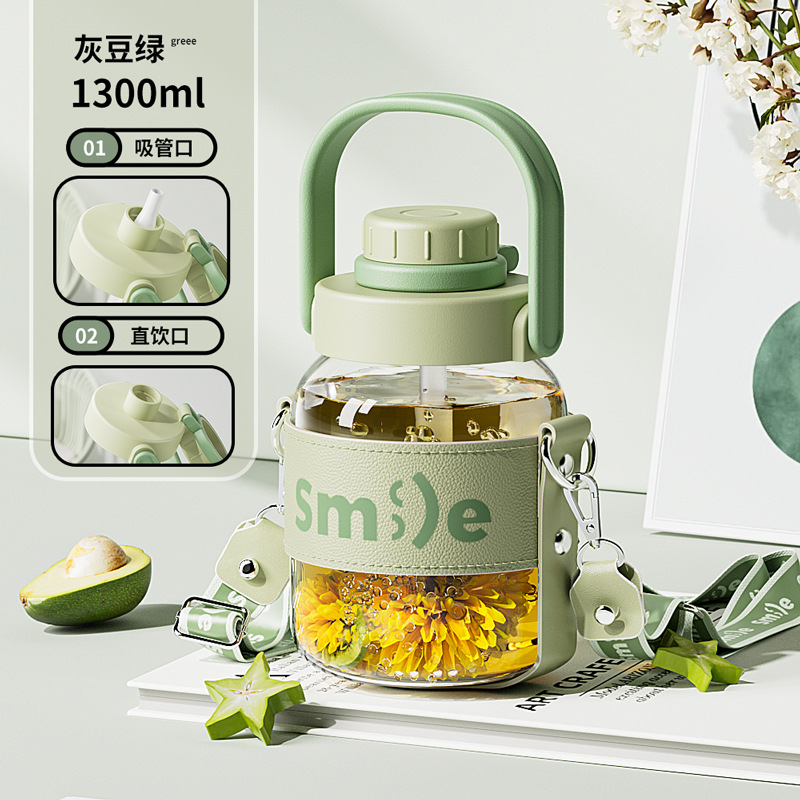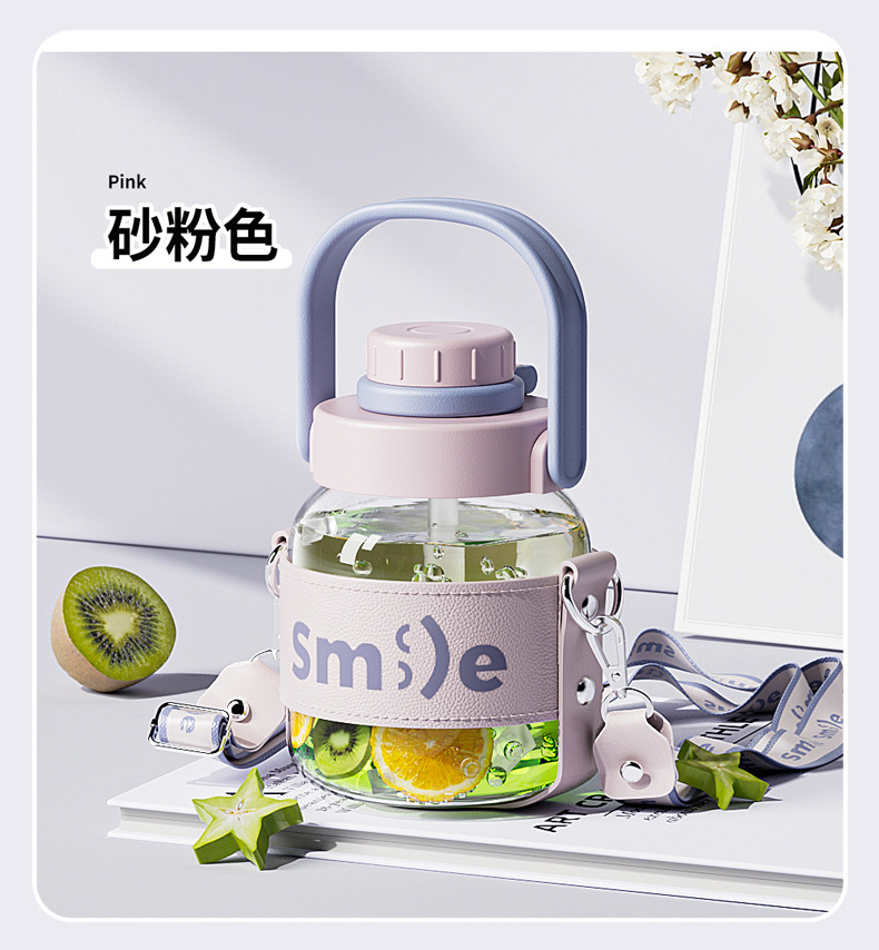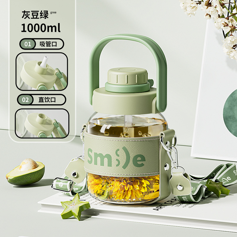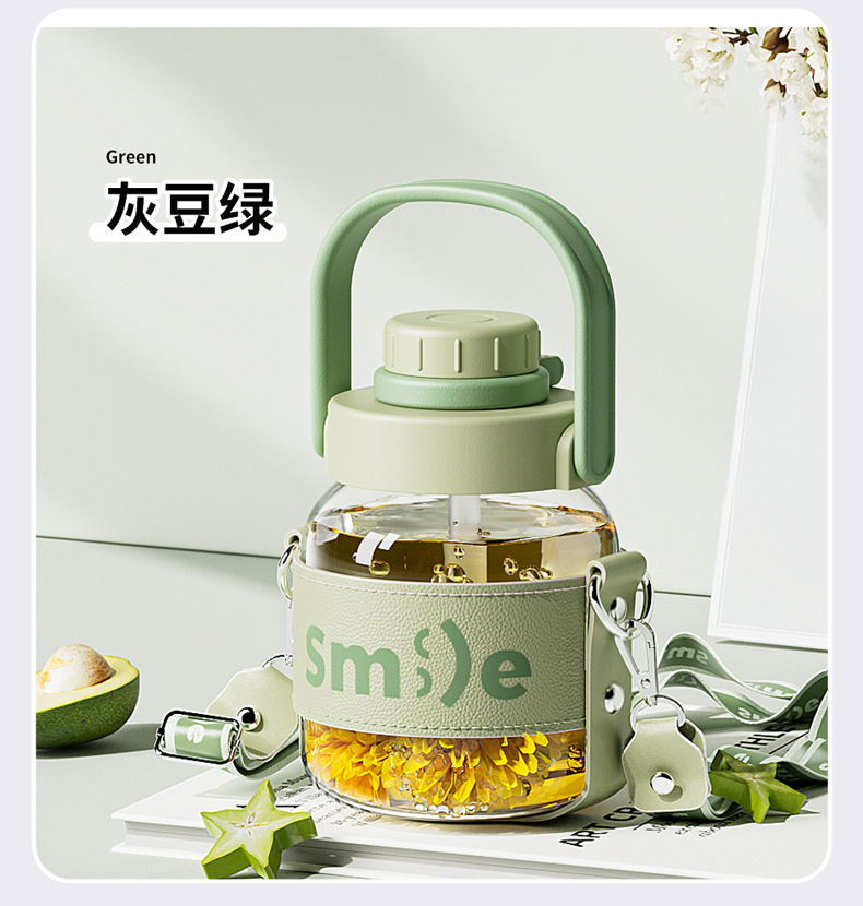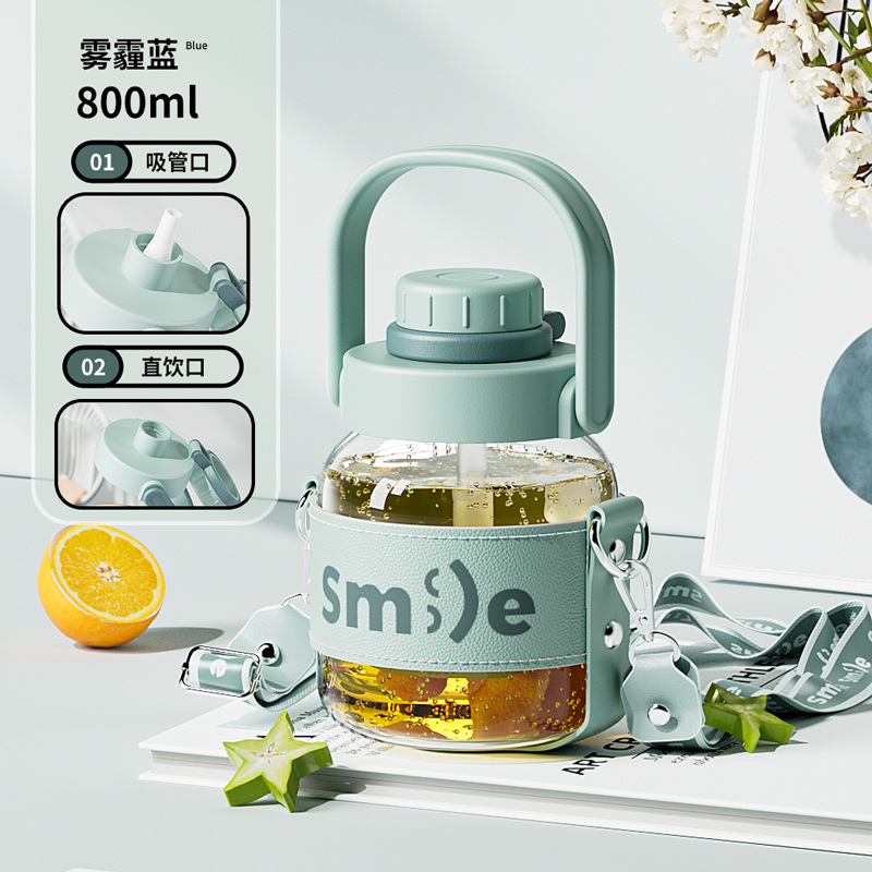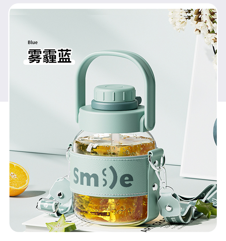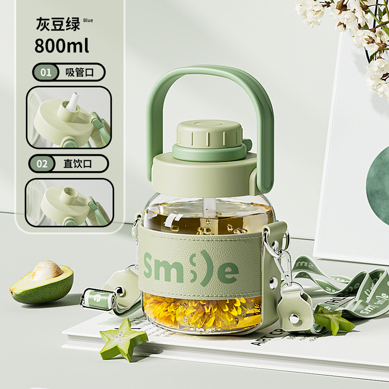 대용량 유리 물 컵 여자 높은 가치 큰 배 컵 휴대용 안티 스케일 티 컵 밀짚 여름 새로운스토어 가기