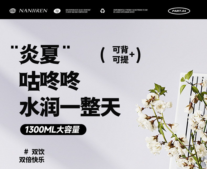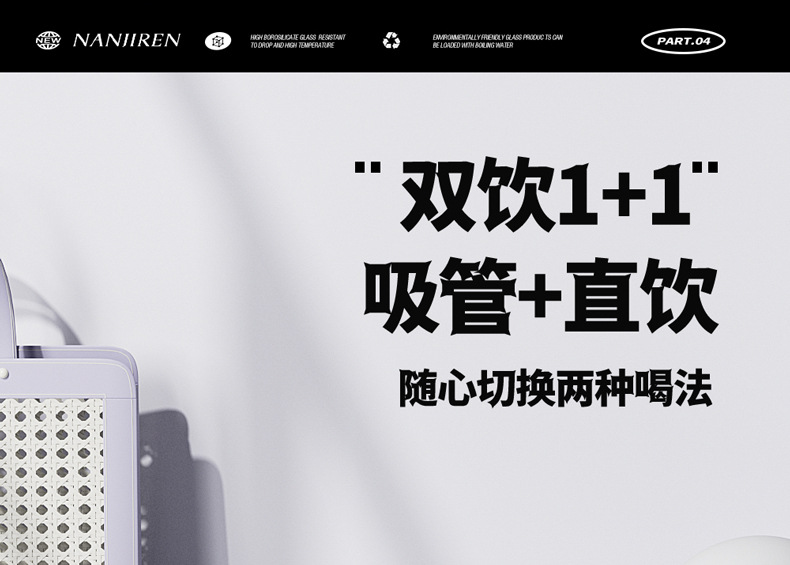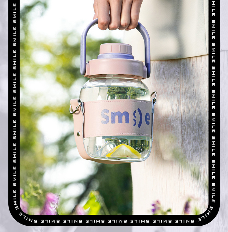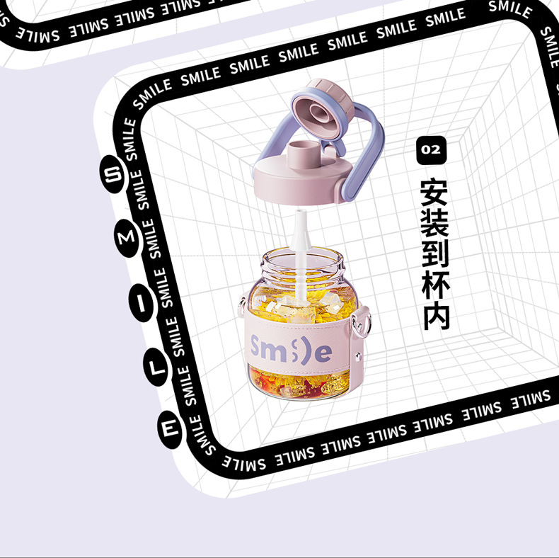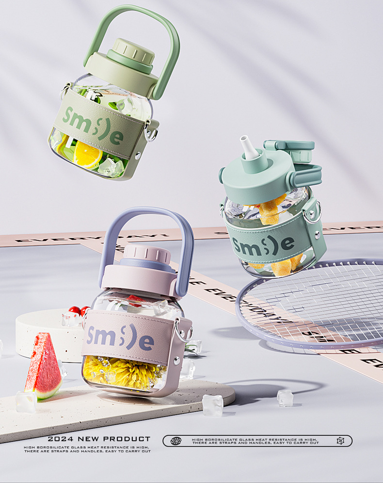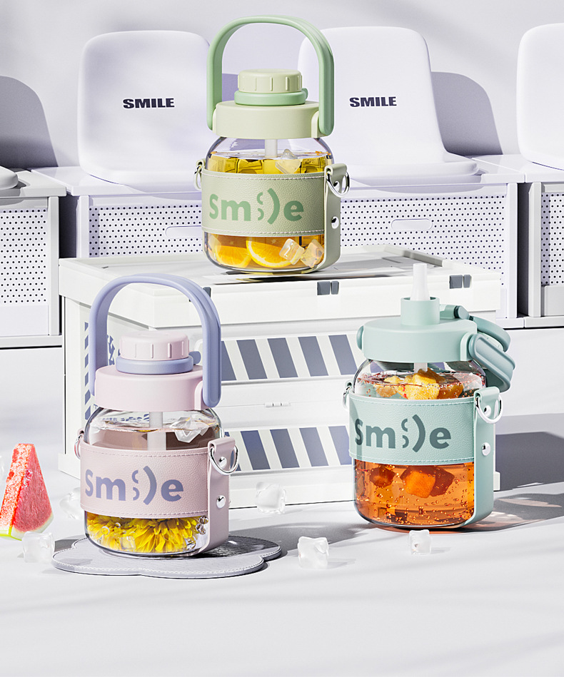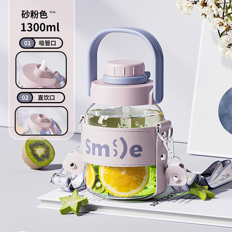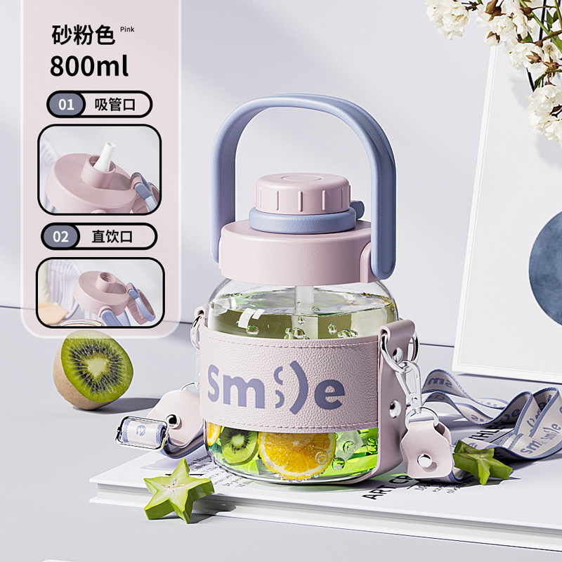 대용량 유리 물 컵 여자 높은 가치 큰 배 컵 휴대용 안티 스케일 티 컵 밀짚 여름 새로운스토어 가기