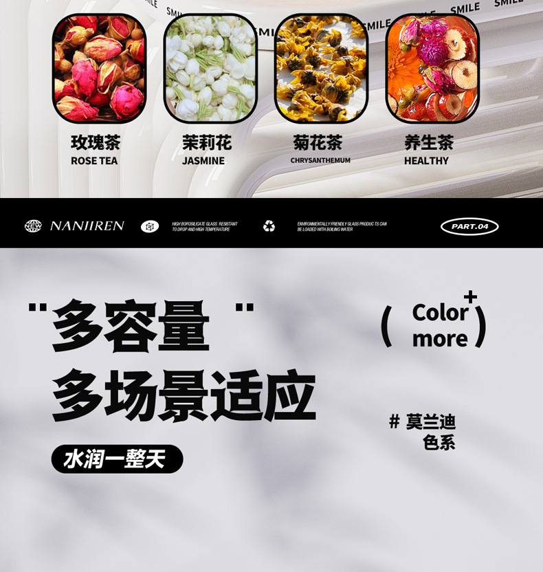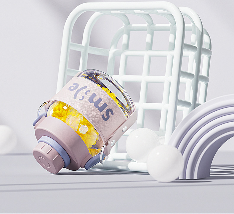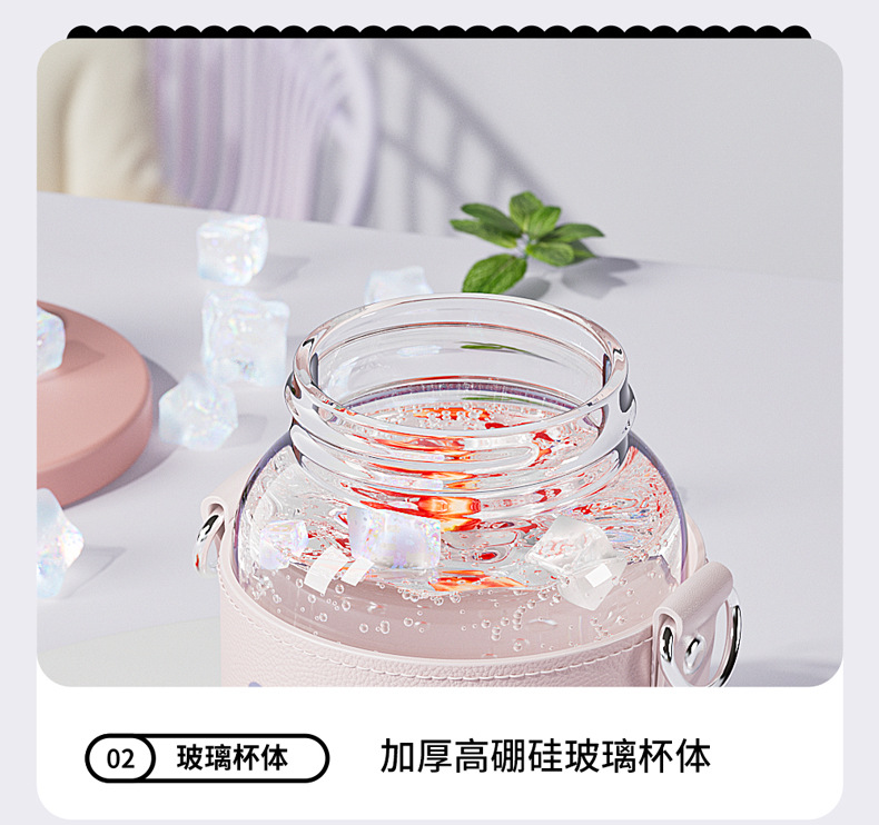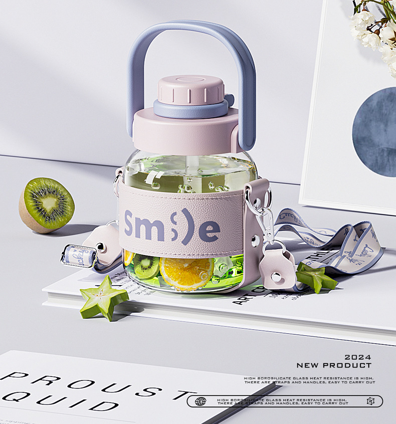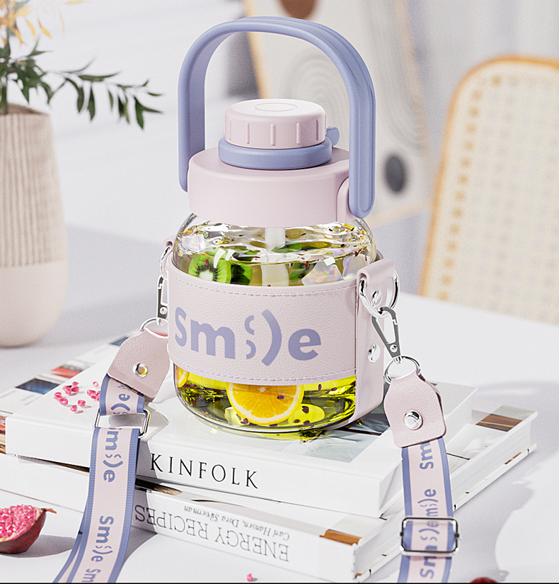 대용량 유리 물 컵 여자 높은 가치 큰 배 컵 휴대용 안티 스케일 티 컵 밀짚 여름 새로운