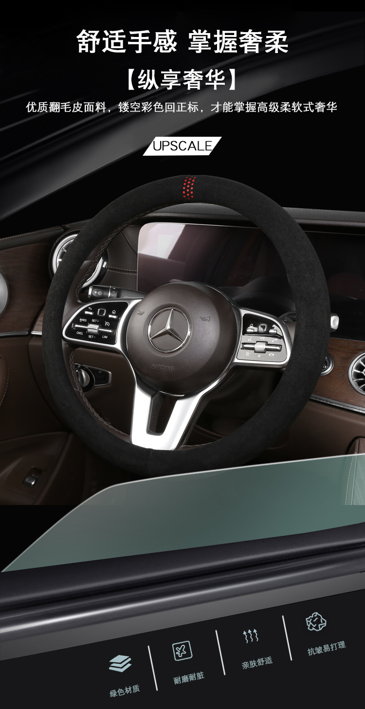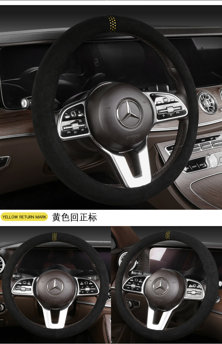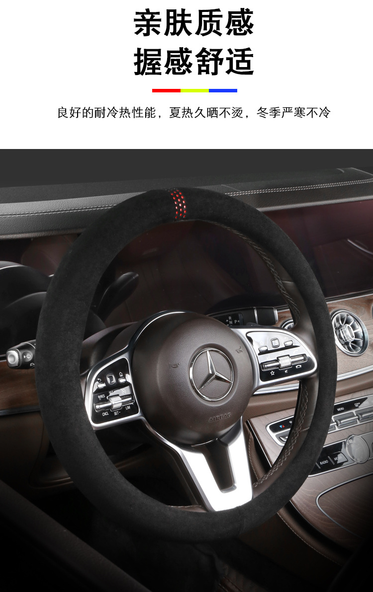 스웨이드 스티어링 휠 커버, 사계절 사용 가능, 미끄럼 방지, 땀 흡수, 통기성, 보온성, 남녀 공용, 인조 스웨이드 가죽 자동차용스토어 가기