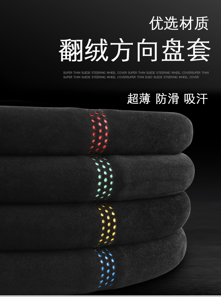 스웨이드 스티어링 휠 커버, 사계절 사용 가능, 미끄럼 방지, 땀 흡수, 통기성, 보온성, 남녀 공용, 인조 스웨이드 가죽 자동차용