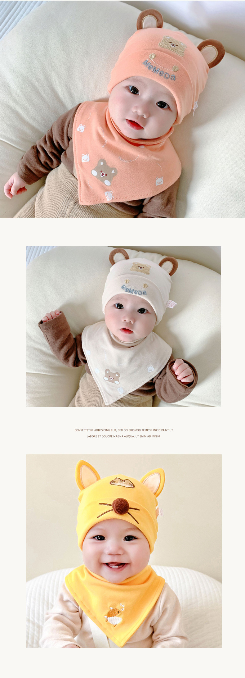 • 둥근 귀 곰 오렌지 + 삼각형 수건