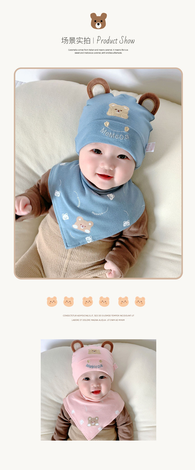 • 둥근 귀 곰 베이지 단일 모자