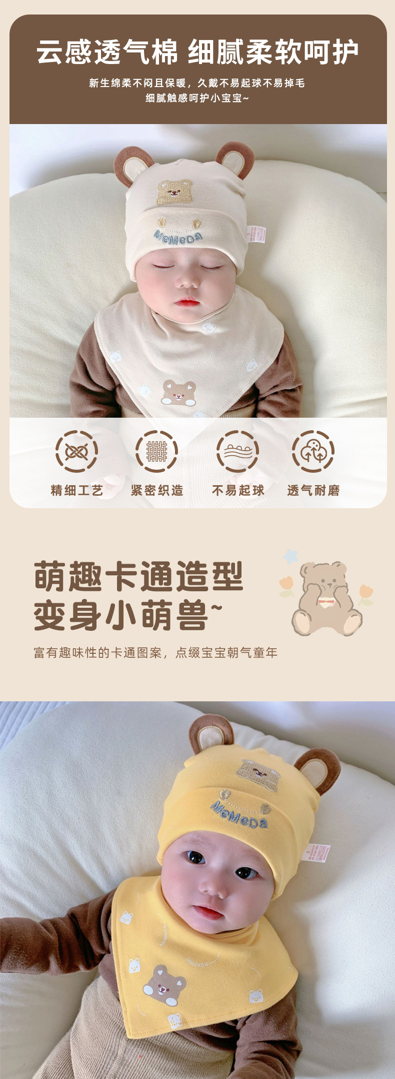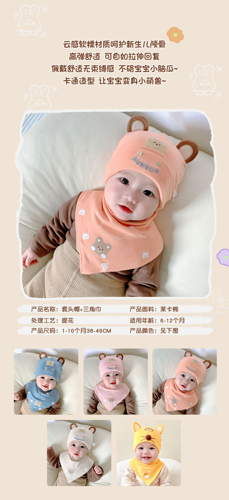 • 둥근 귀 곰 베이지 + 삼각형 수건