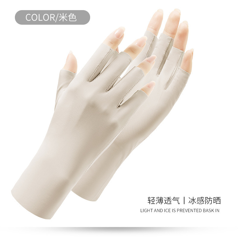 여름 얼음 실크 학생 자전거 반 손가락 여성 손톱 자외선 보호 야외 운전 통기성 얇은 남성의 태양 보호 장갑스토어 가기