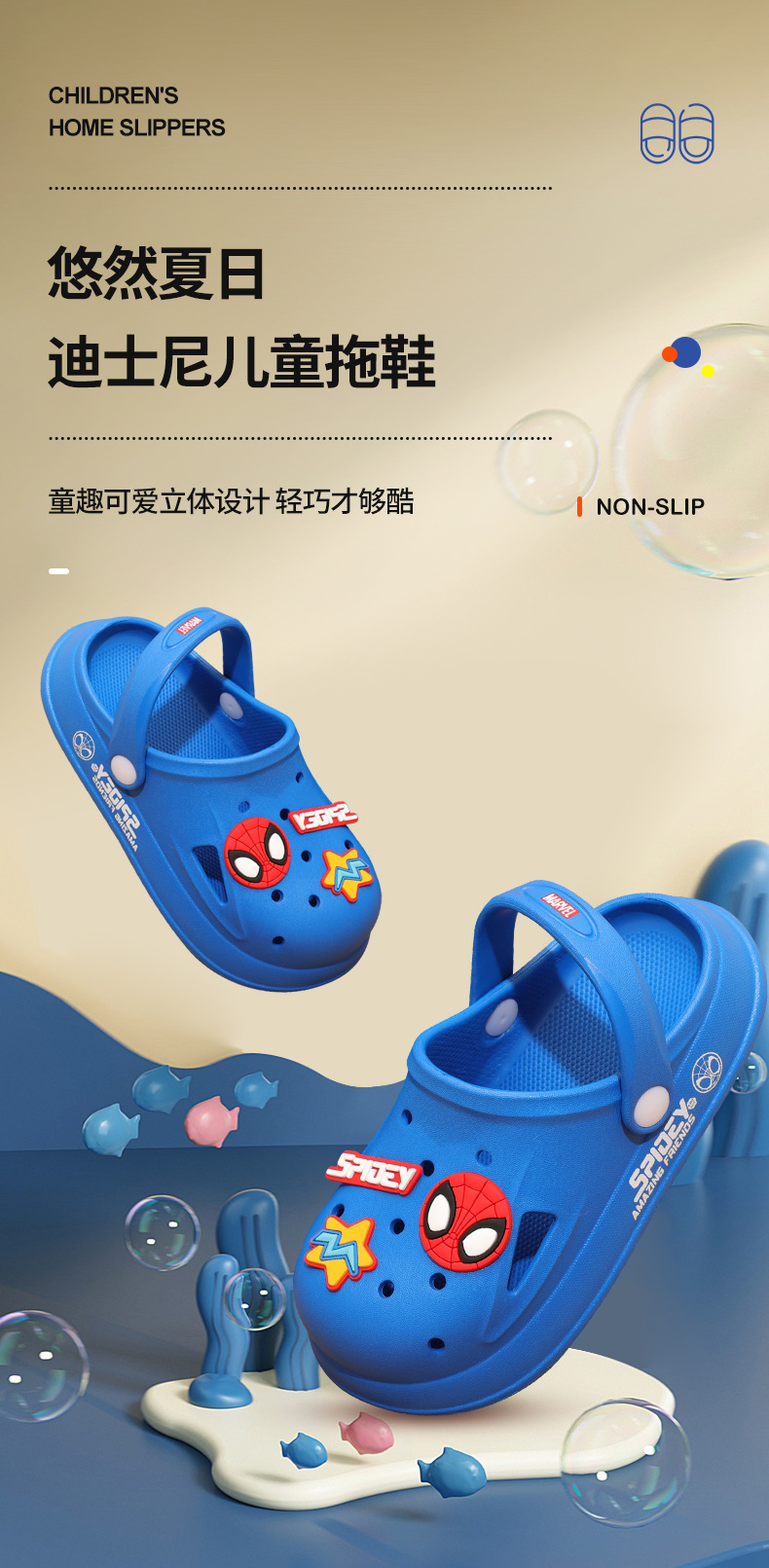 디즈니 어린이 구멍 신발 아기 슬리퍼 소년 여름 샌들 닫힌 발가락 미끄럼 방지 만화 야외 해변 신발스토어 가기