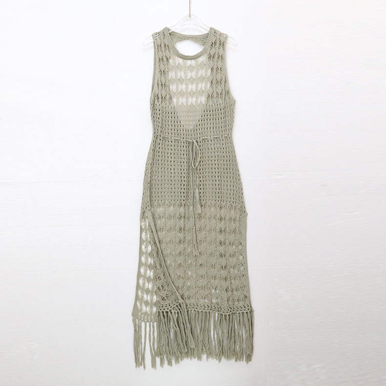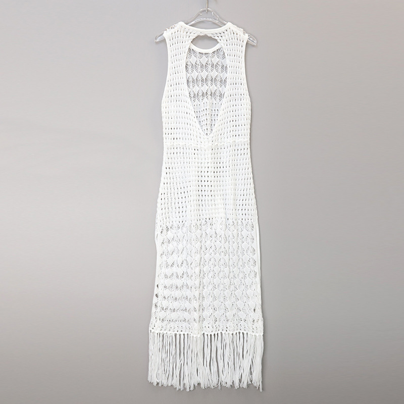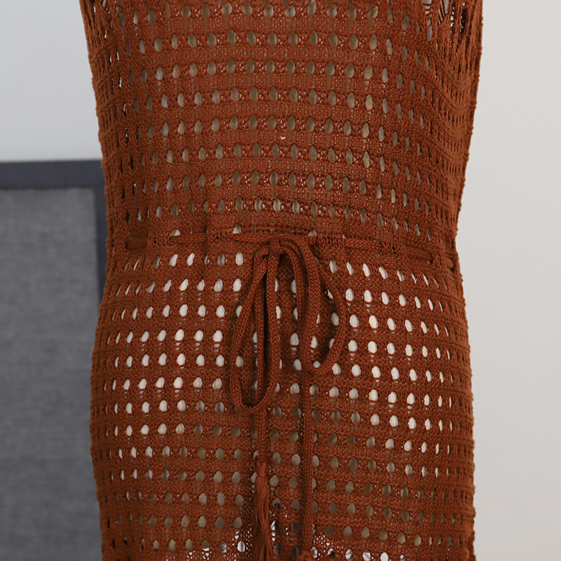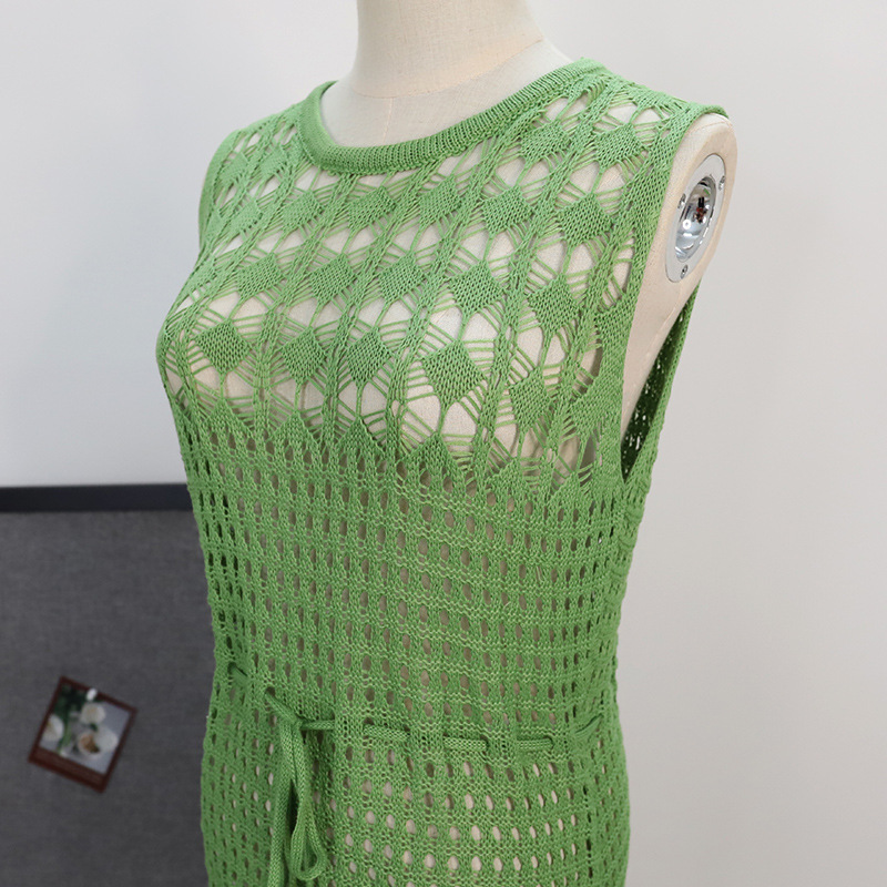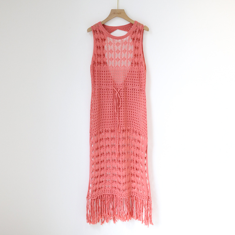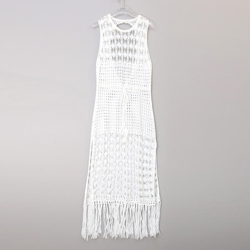 유럽과 미국의 새로운 할로우 니트 섹시한 원피스 비치 비키니 블라우스 휴가 수영복 조끼 긴 원피스