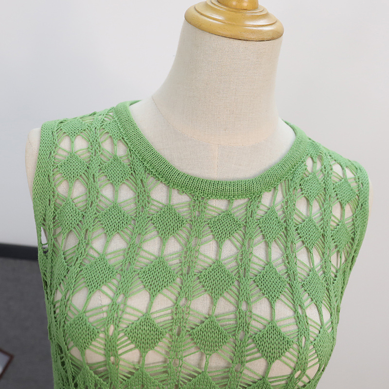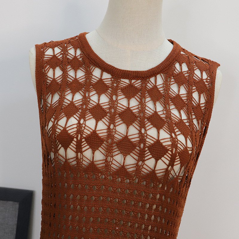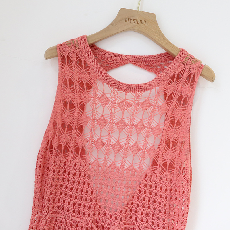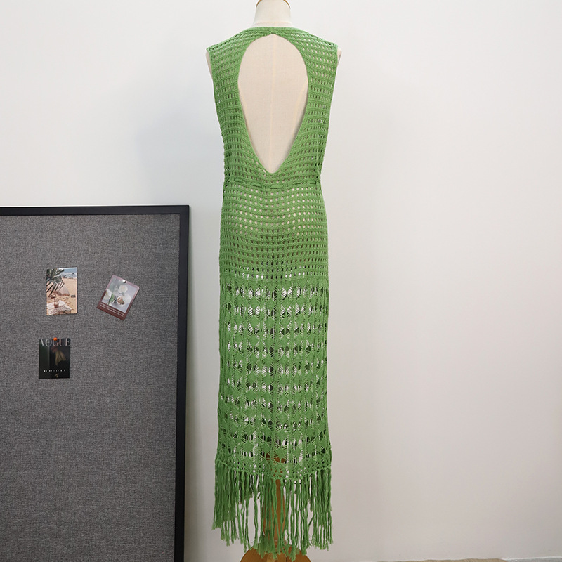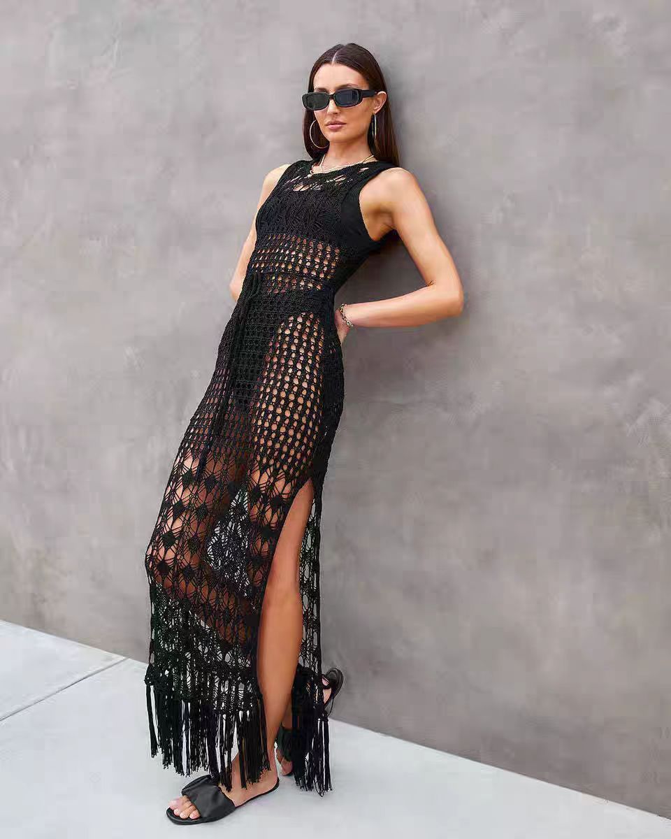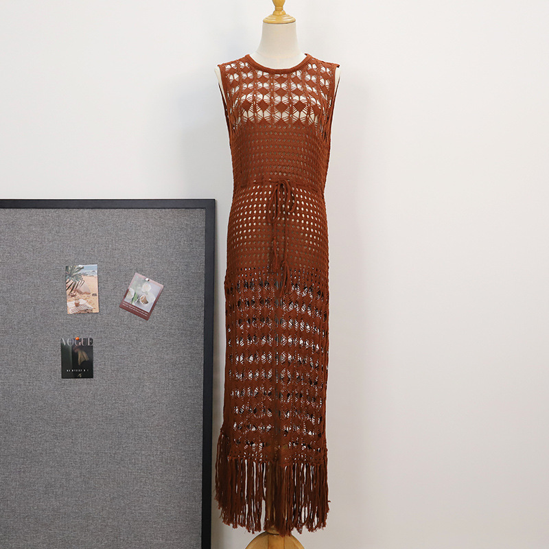 유럽과 미국의 새로운 할로우 니트 섹시한 원피스 비치 비키니 블라우스 휴가 수영복 조끼 긴 원피스