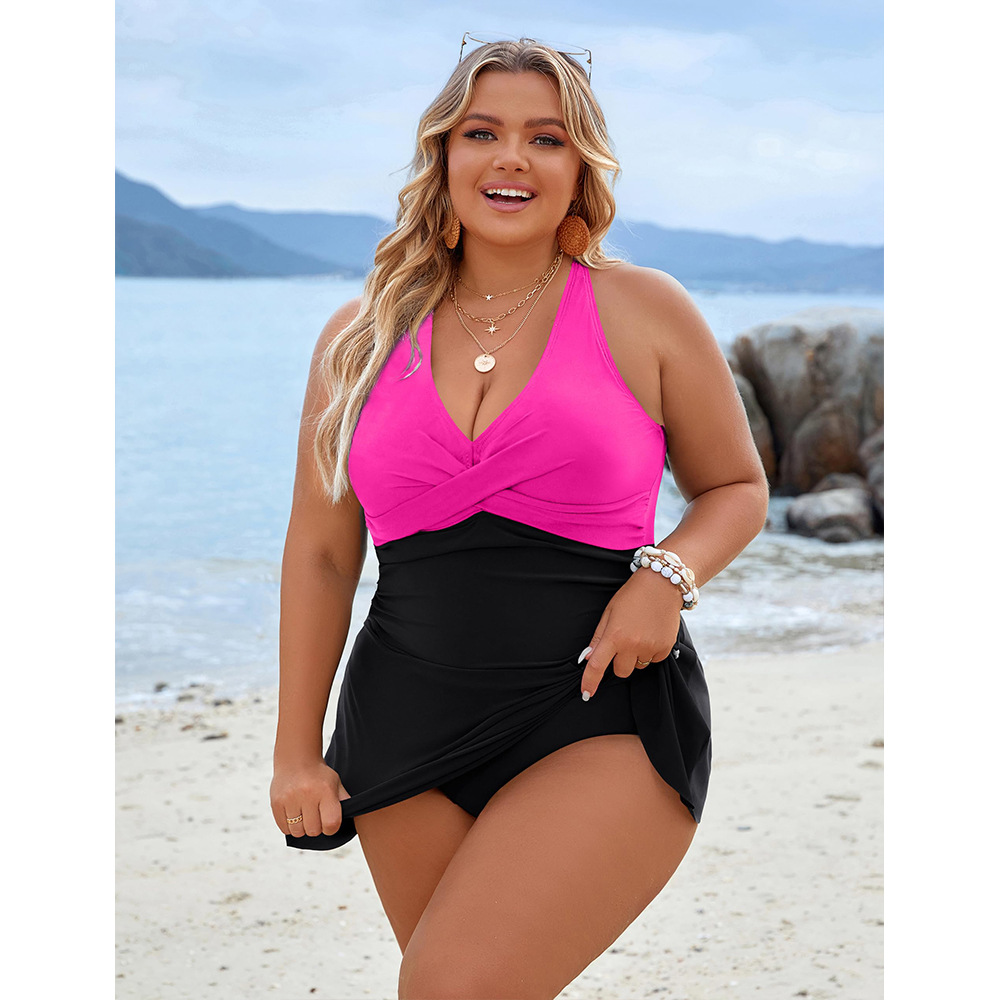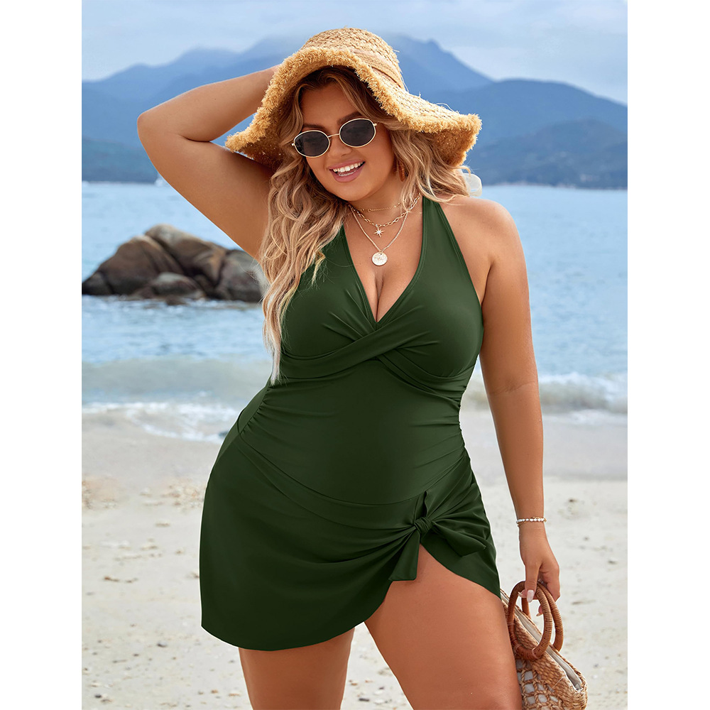 2024 아마존 뉴 플러스 사이즈 수영복 여성 유럽과 미국의 대외 무역 뚱뚱한 여자 스커트 원피스 수영복 보수적 인 크로스 배꼽