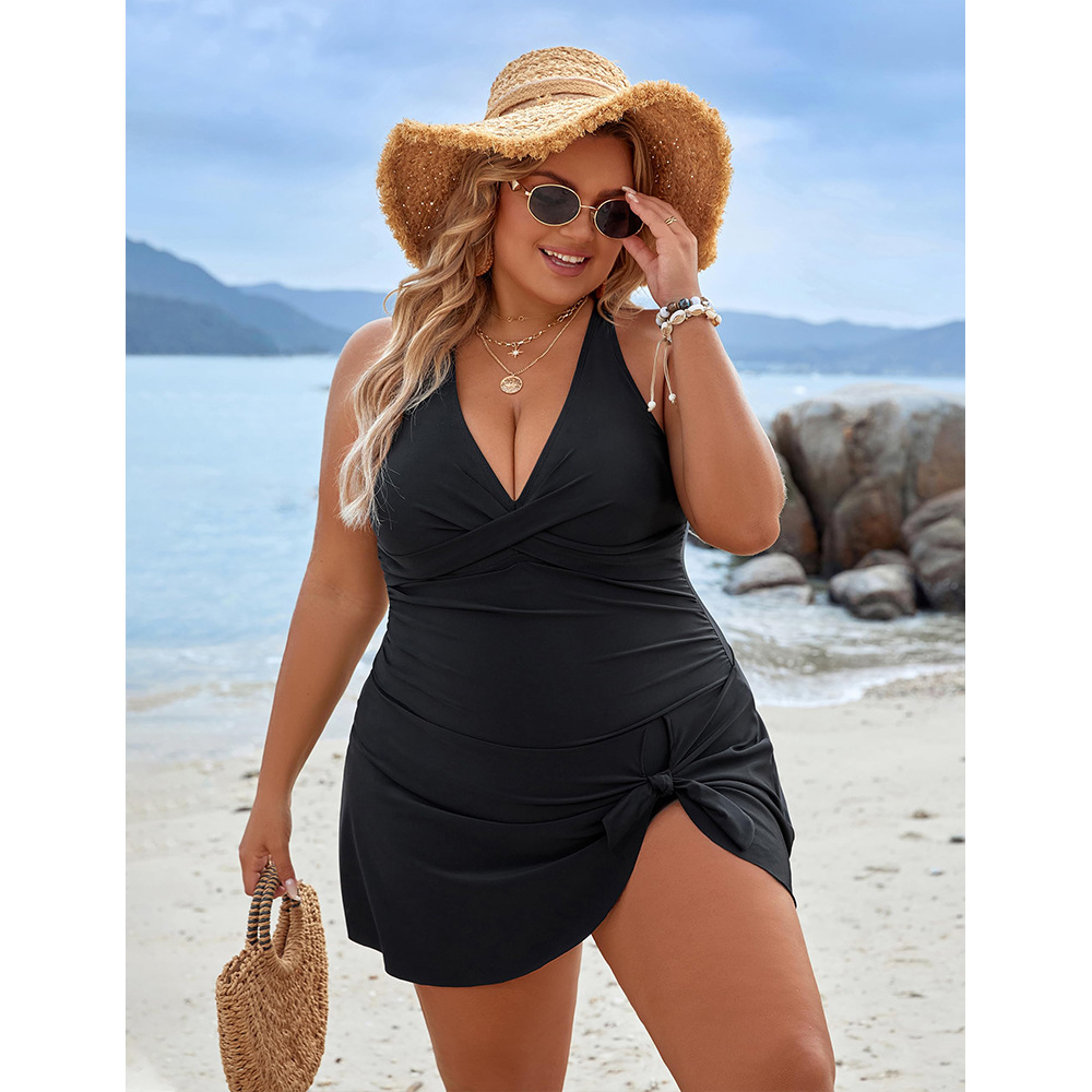2024 아마존 뉴 플러스 사이즈 수영복 여성 유럽과 미국의 대외 무역 뚱뚱한 여자 스커트 원피스 수영복 보수적 인 크로스 배꼽스토어 가기
