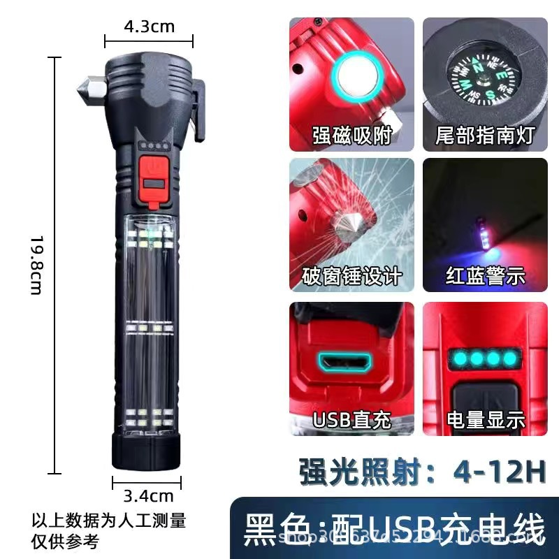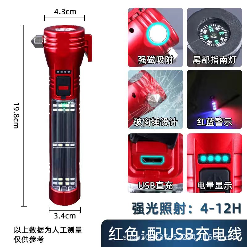안전 망치 손전등 LED 태양 야외 다기능 자동차 수리 작업 조명 자동차 COB 강한 가벼운 차 깨진 창