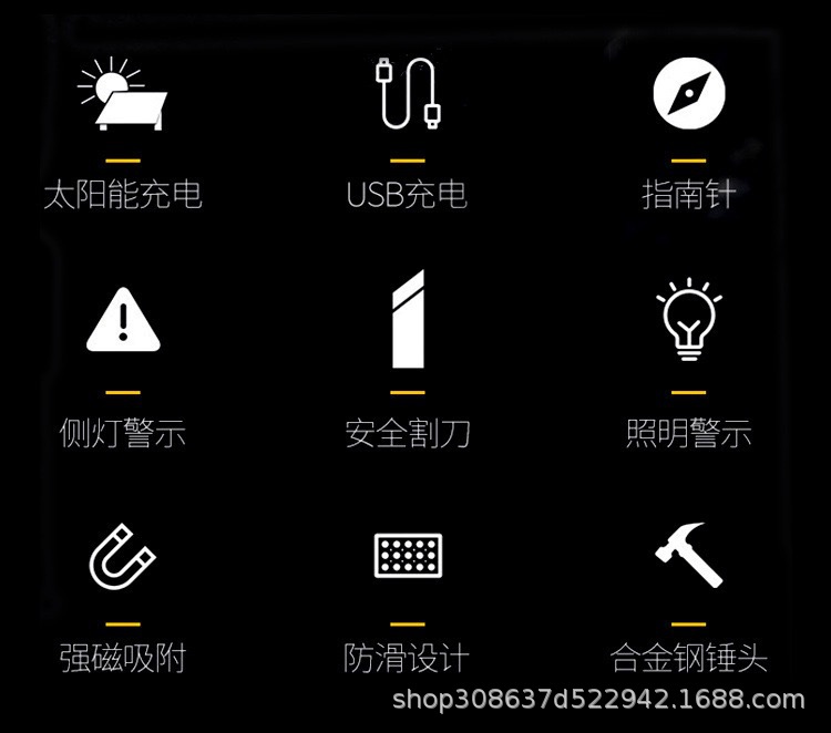 안전 망치 손전등 LED 태양 야외 다기능 자동차 수리 작업 조명 자동차 COB 강한 가벼운 차 깨진 창스토어 가기