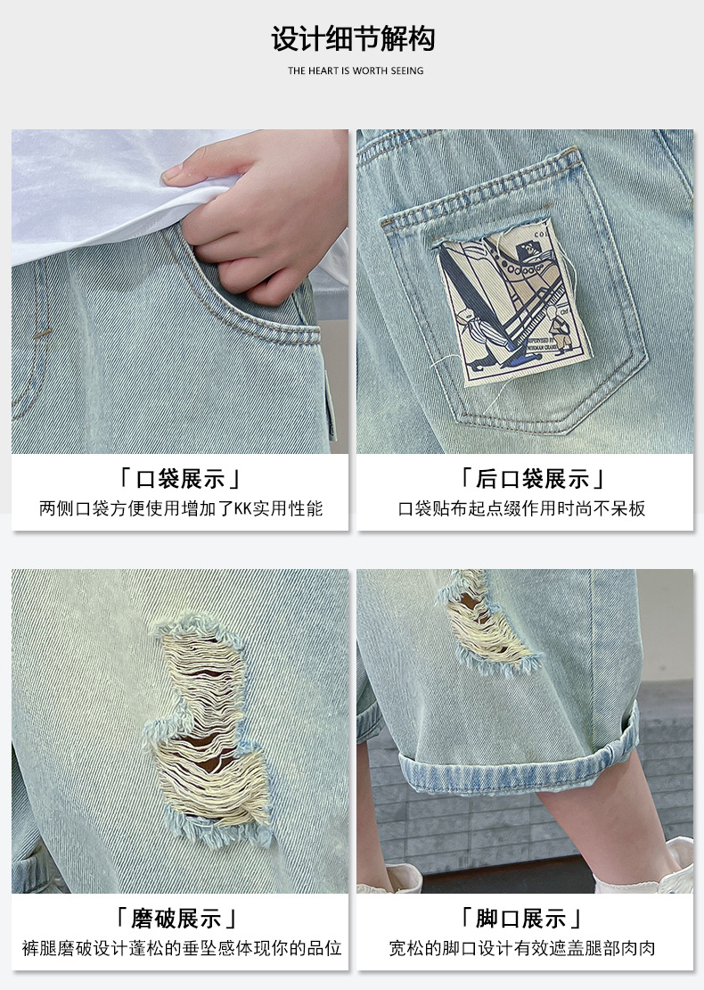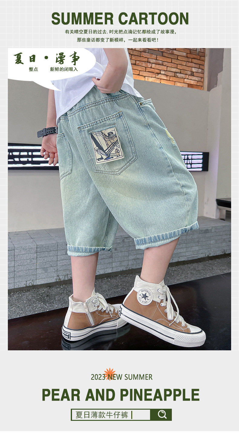 아동복 남아 여름 바지 청바지 여름 얇은 스타일 2026 신상 중대형 아동 남아 여름 반바지 루즈핏스토어 가기