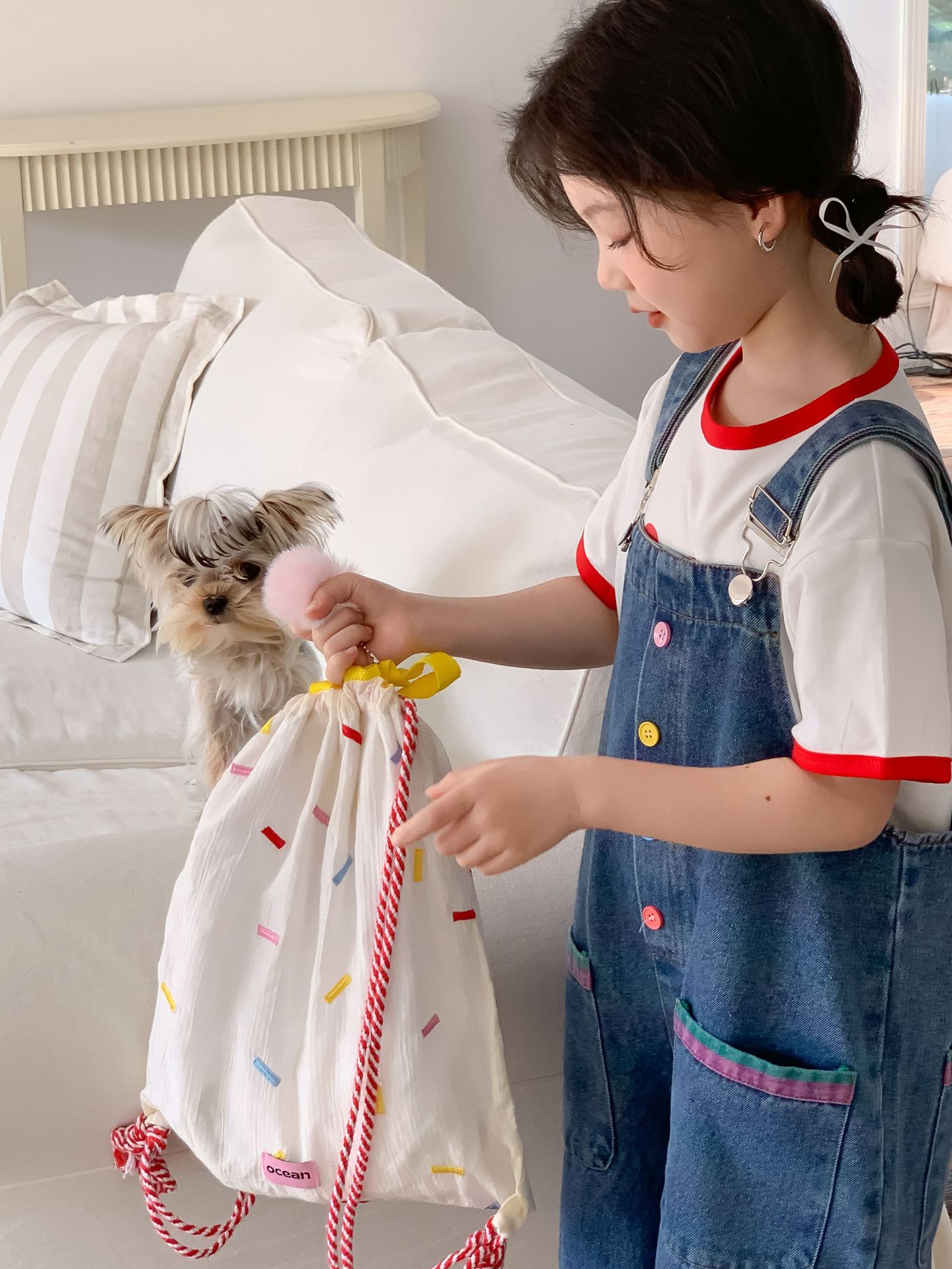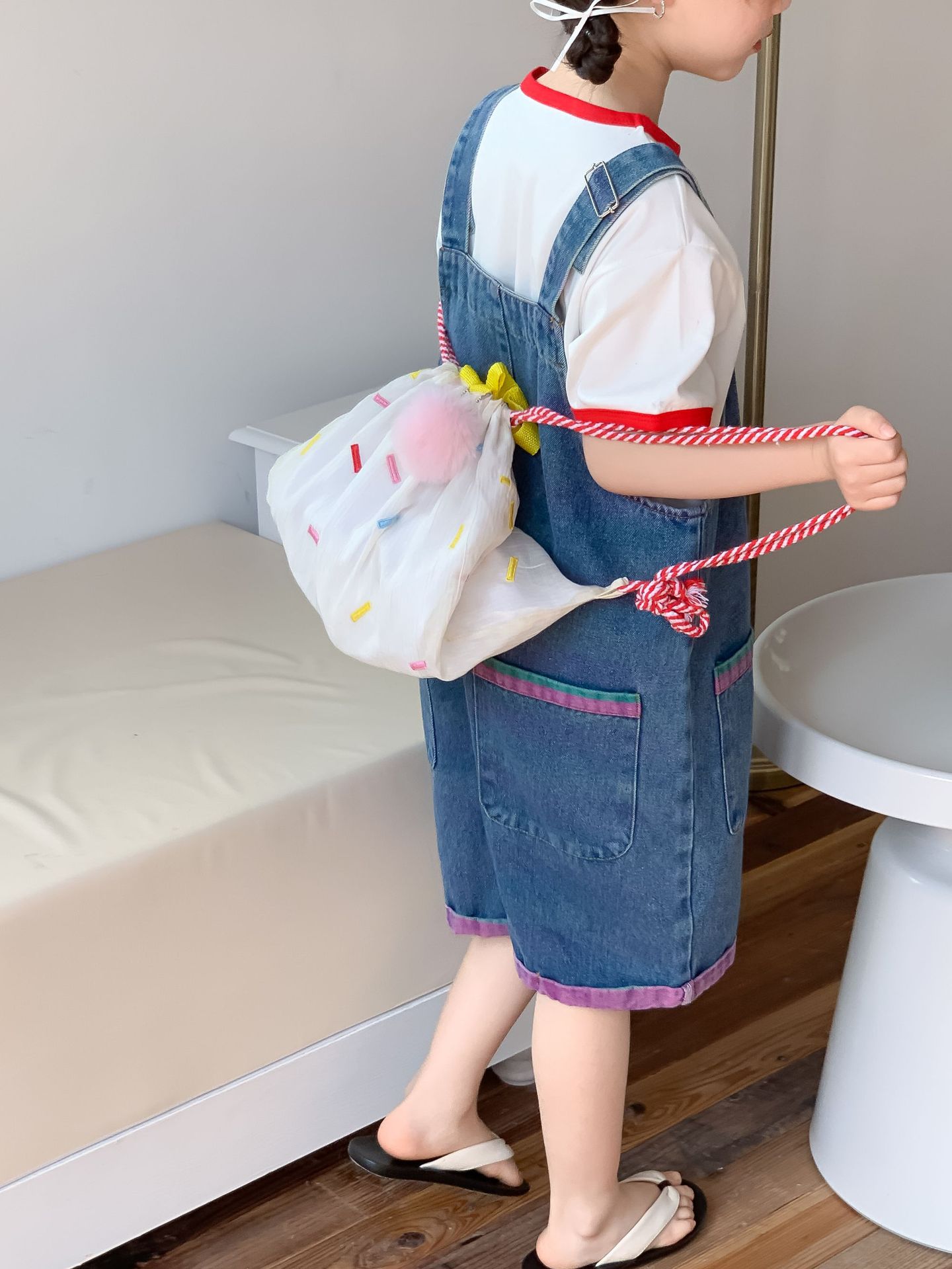 한국 아동복 2024 여름 소녀의 화려한 버튼 컬러 원사 데님 서스펜더 바지 미디어와 큰 어린이 소녀의 트렌디 한 바지