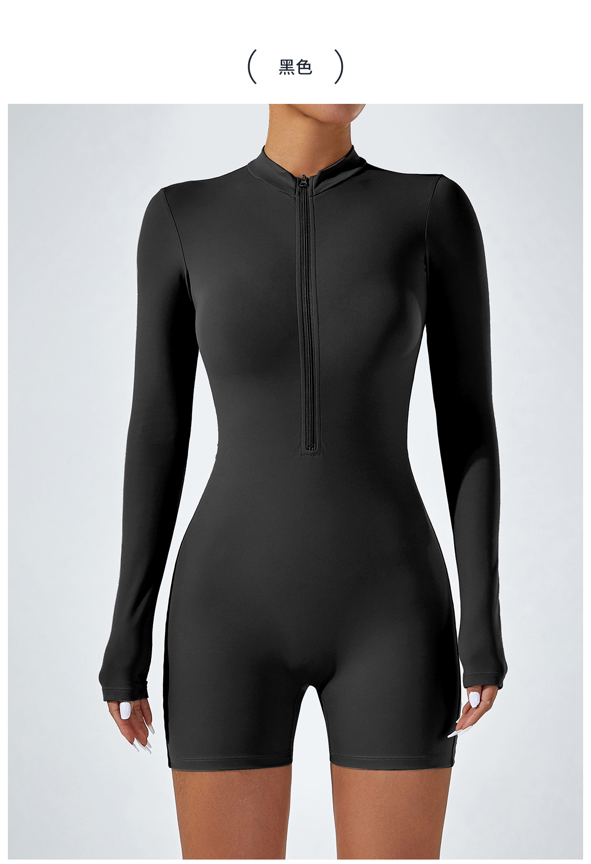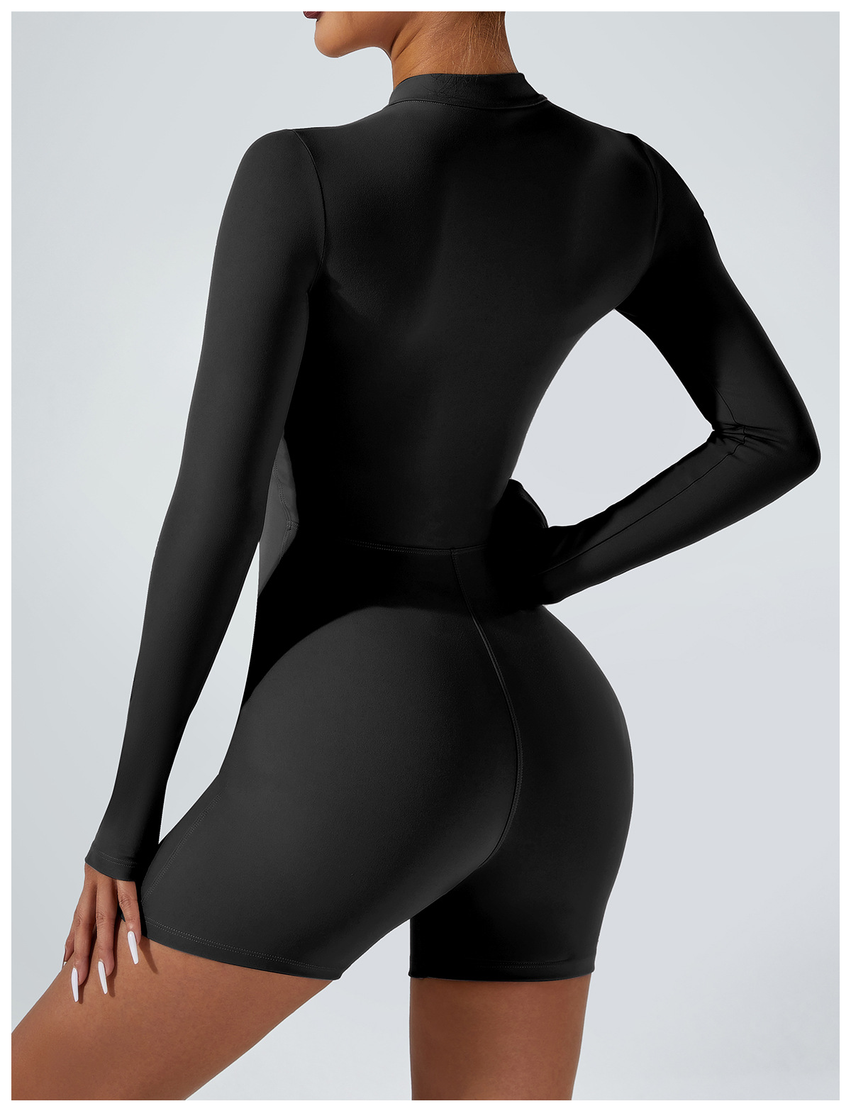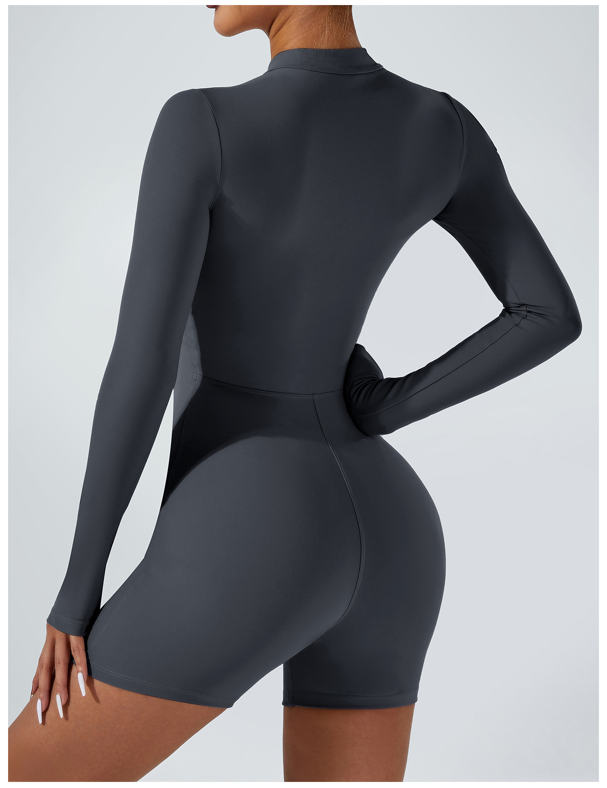 오픈 칼라 지퍼 긴팔 점프수트 반바지 댄스 피트니스 스포츠 점프수트 타이트 요가복 여성용 타이트 스타일