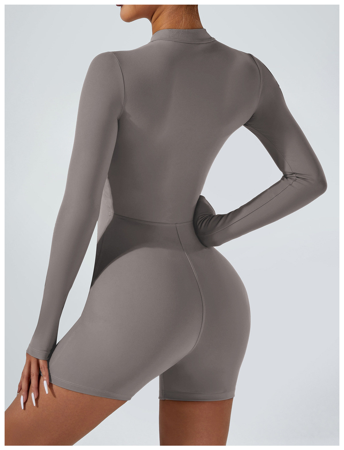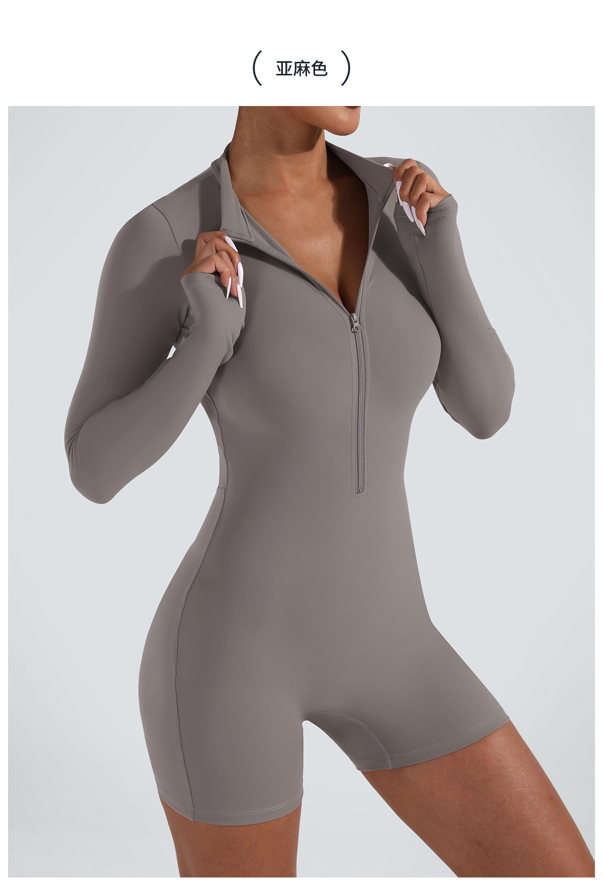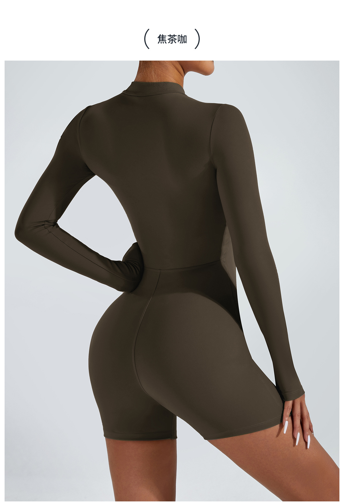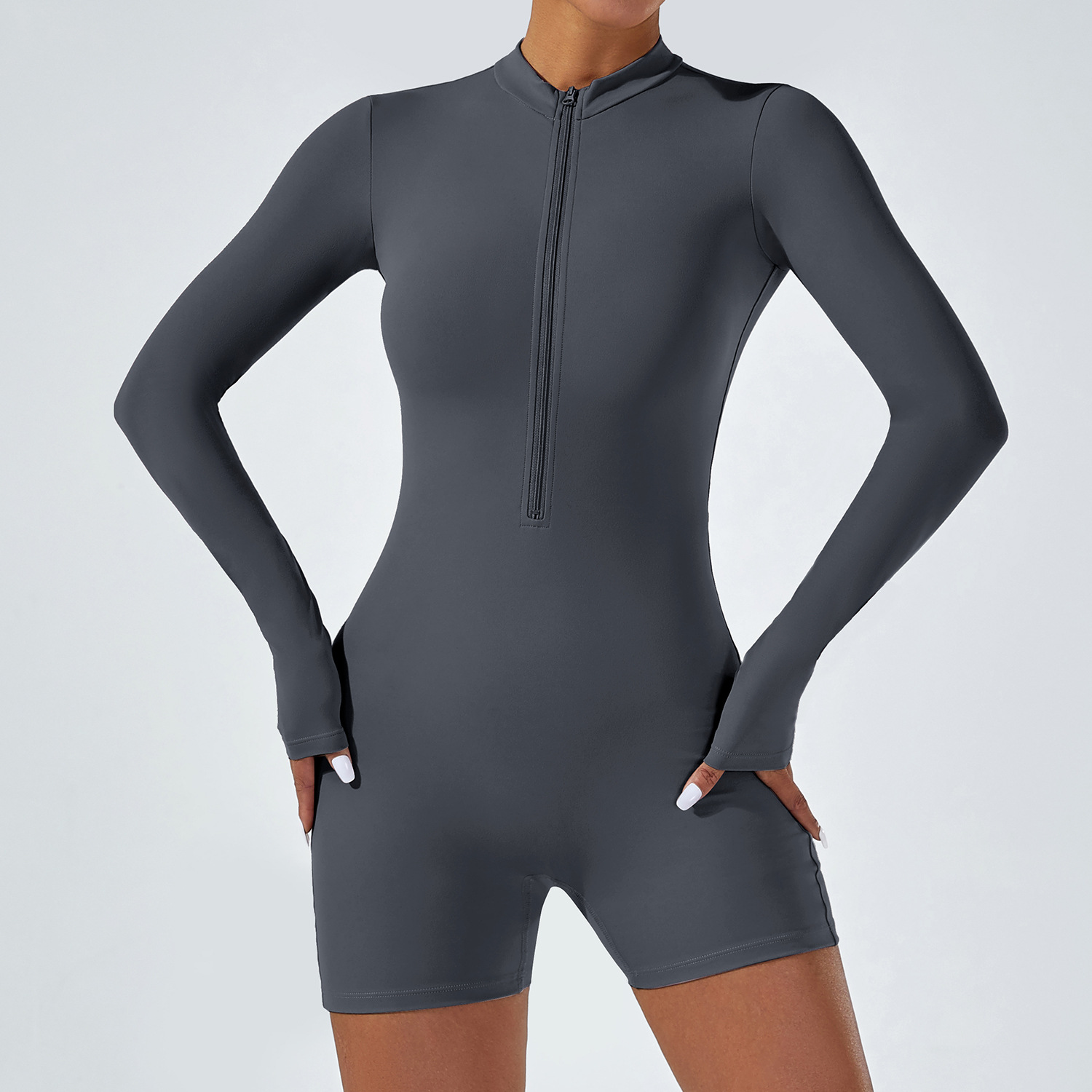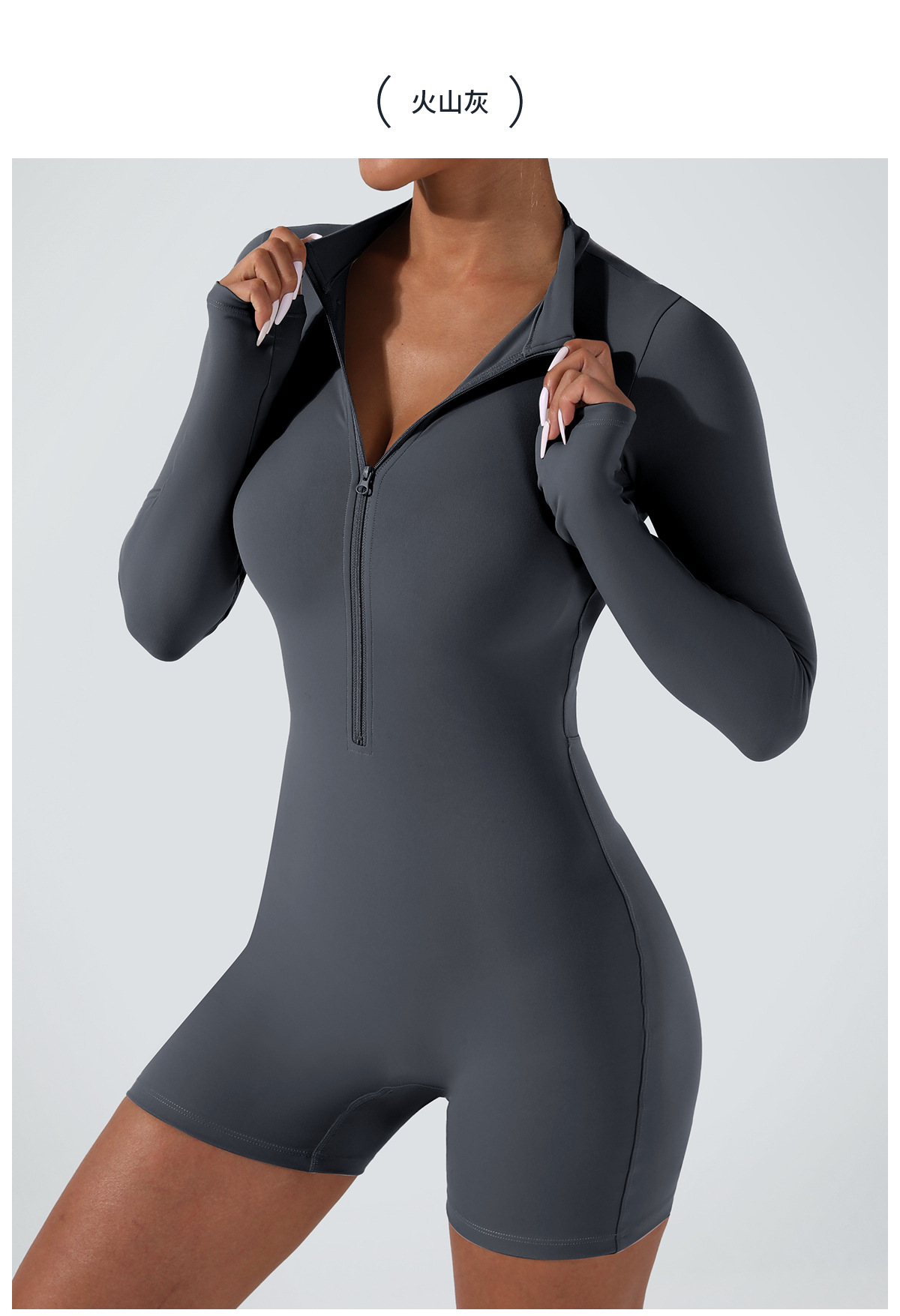 오픈 칼라 지퍼 긴팔 점프수트 반바지 댄스 피트니스 스포츠 점프수트 타이트 요가복 여성용 타이트 스타일스토어 가기