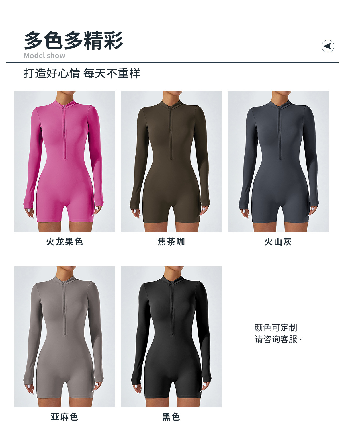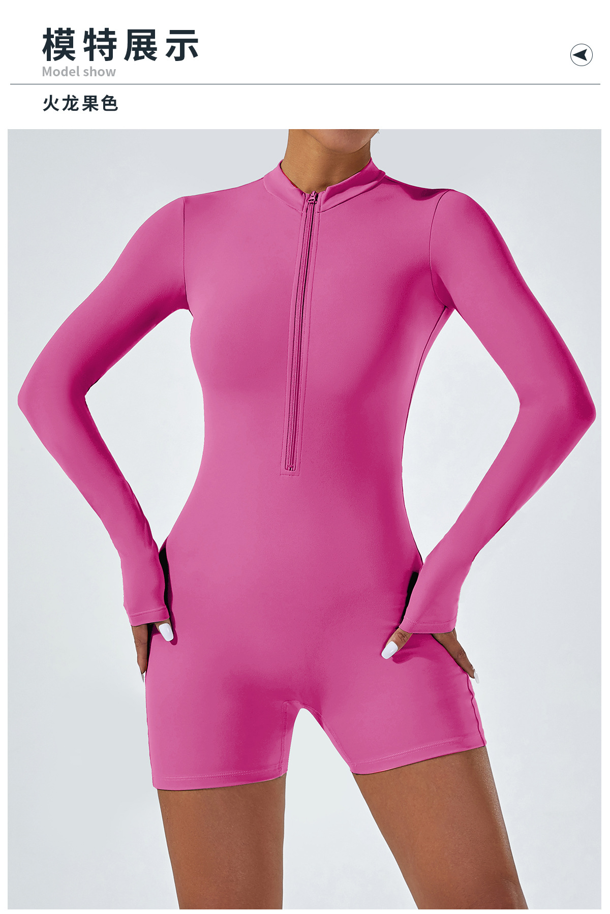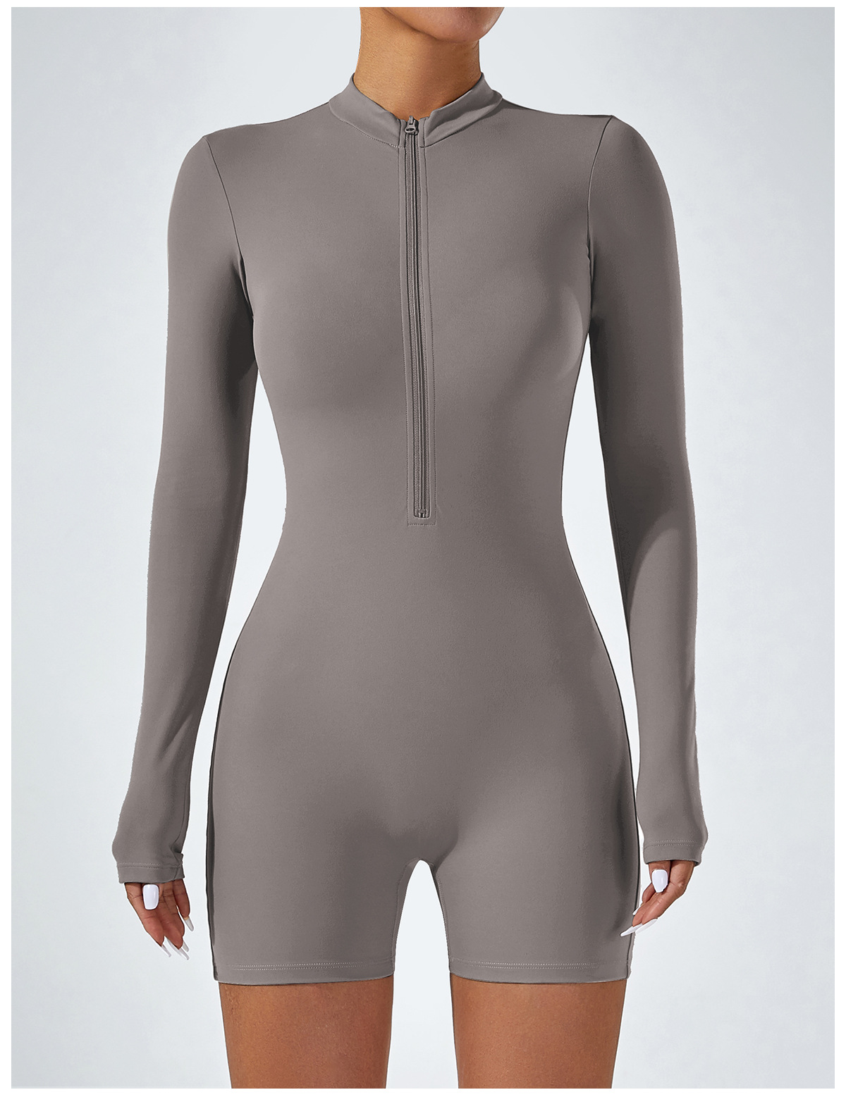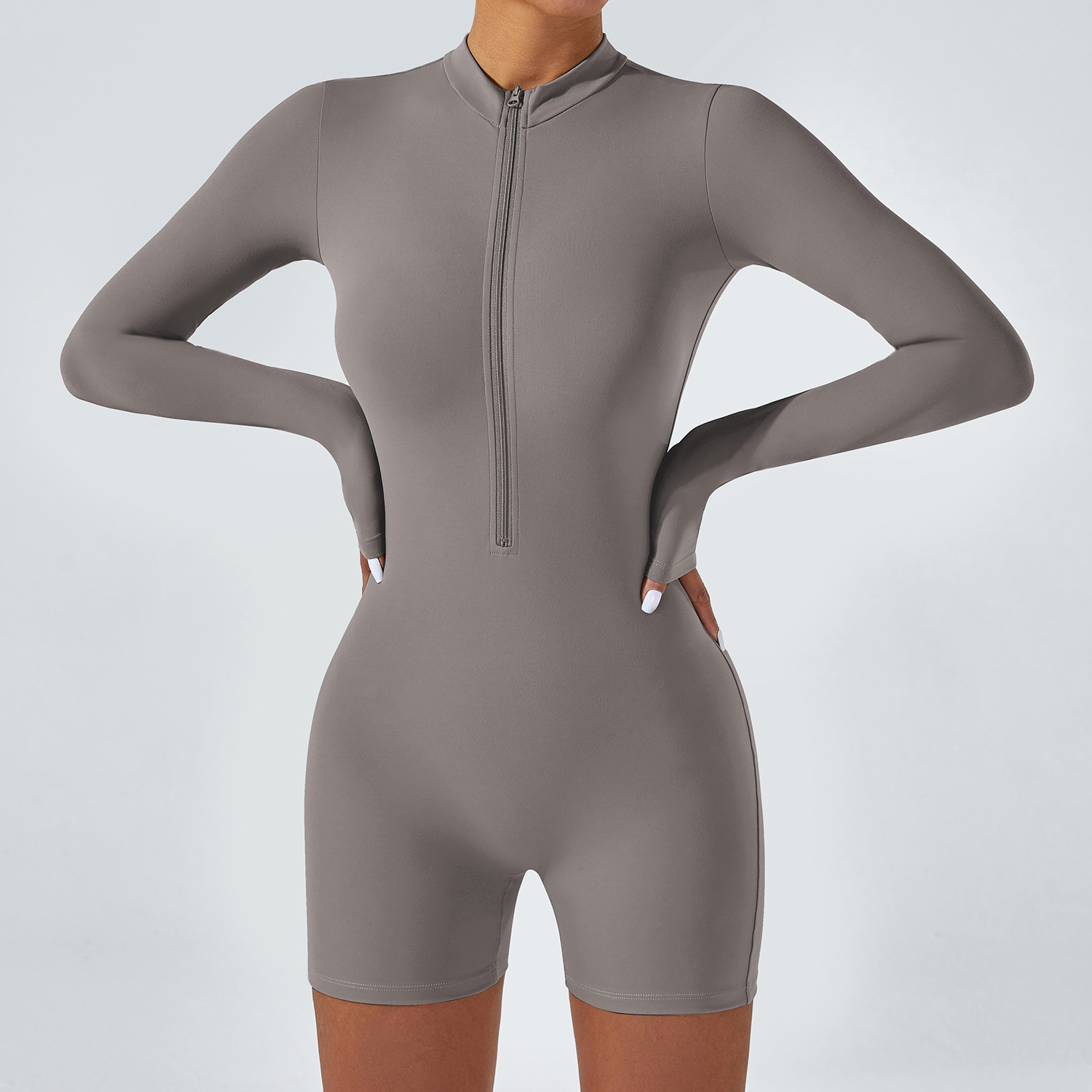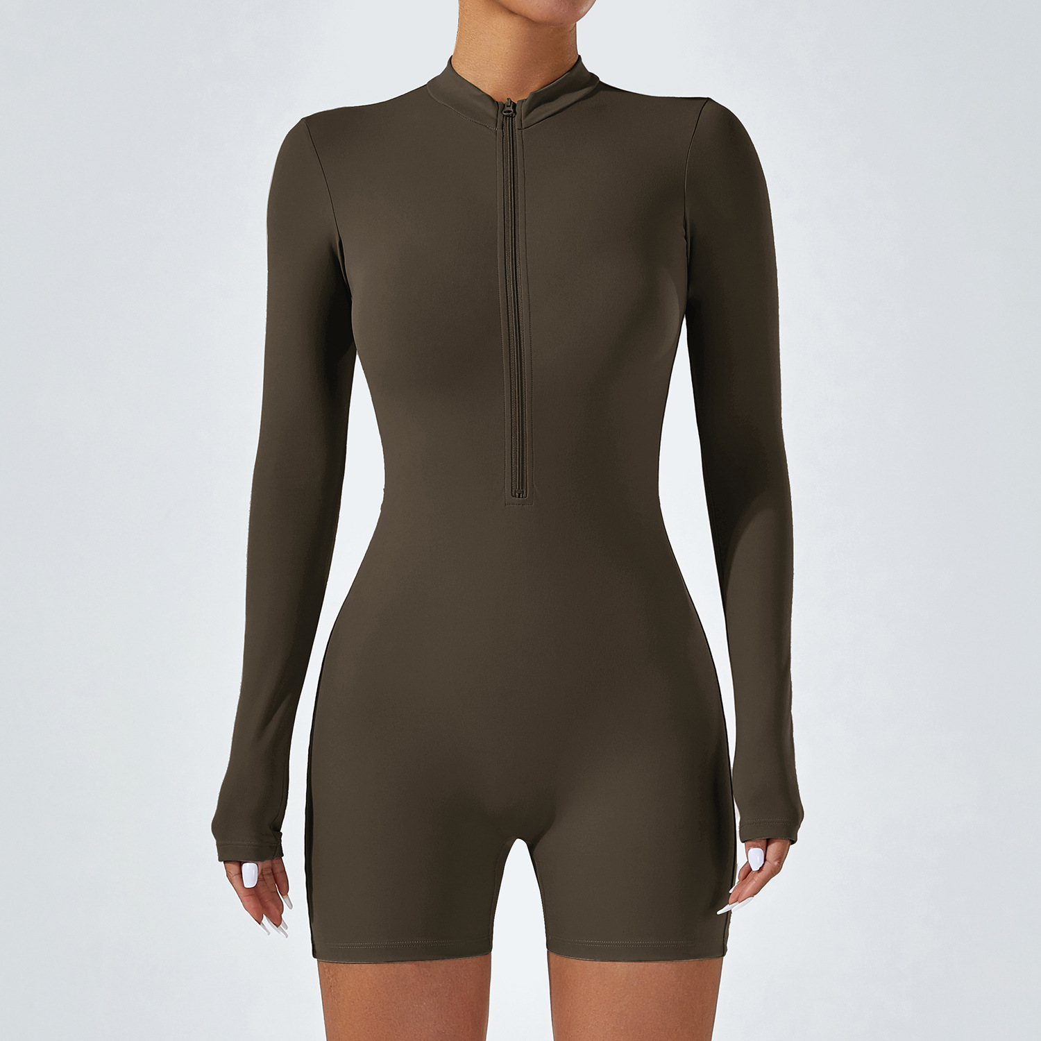 오픈 칼라 지퍼 긴팔 점프수트 반바지 댄스 피트니스 스포츠 점프수트 타이트 요가복 여성용 타이트 스타일스토어 가기