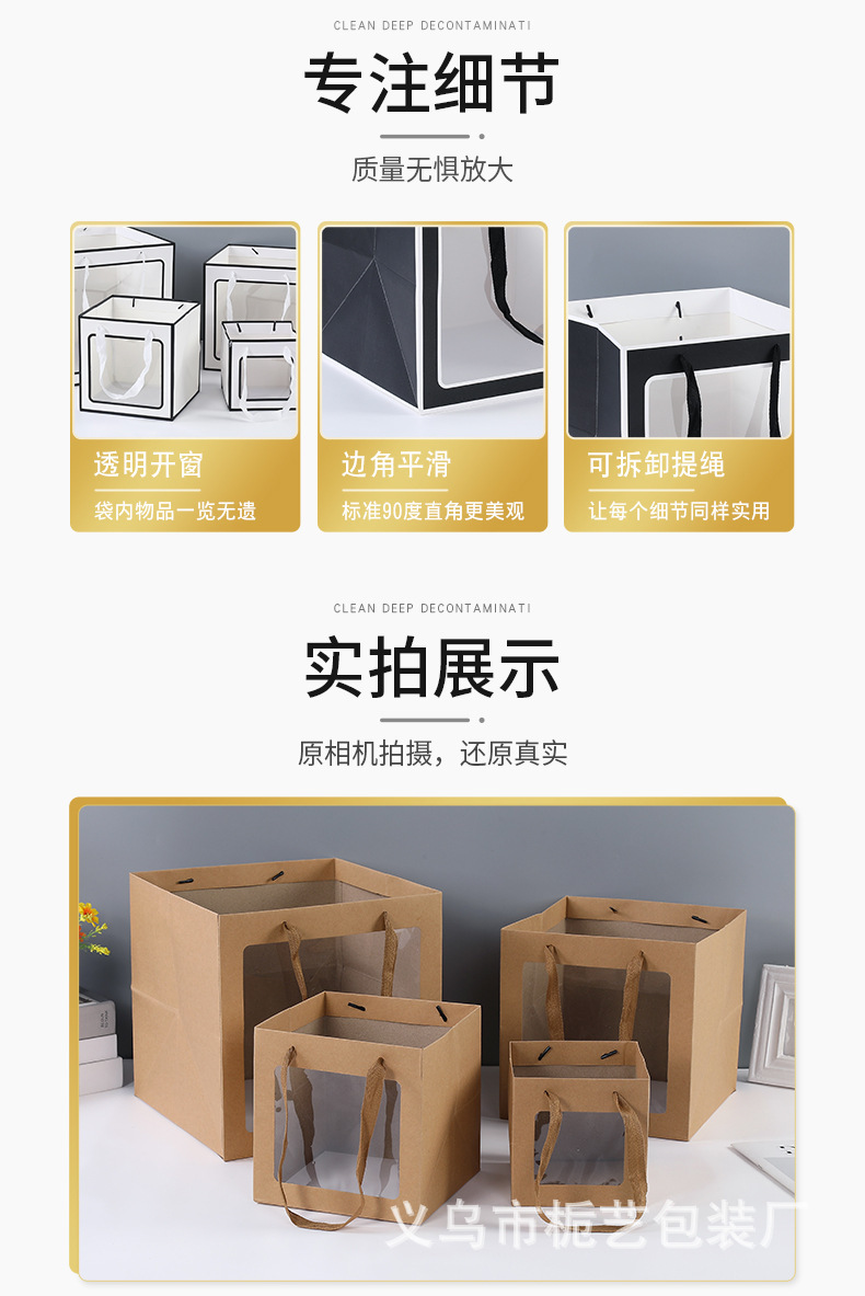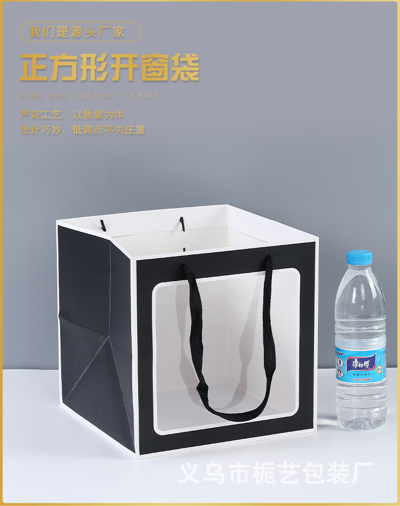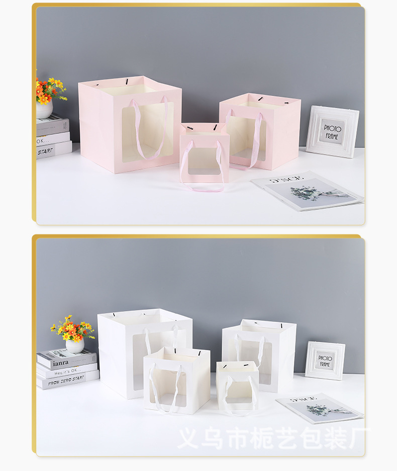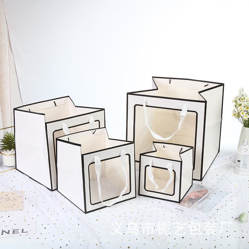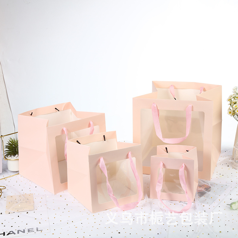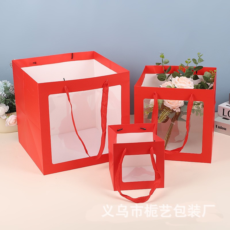 발렌타인 데이 스퀘어 축제 투명 창 선물 가방 선물 종이 가방 꽃 케이크 선물 가방 도매스토어 가기