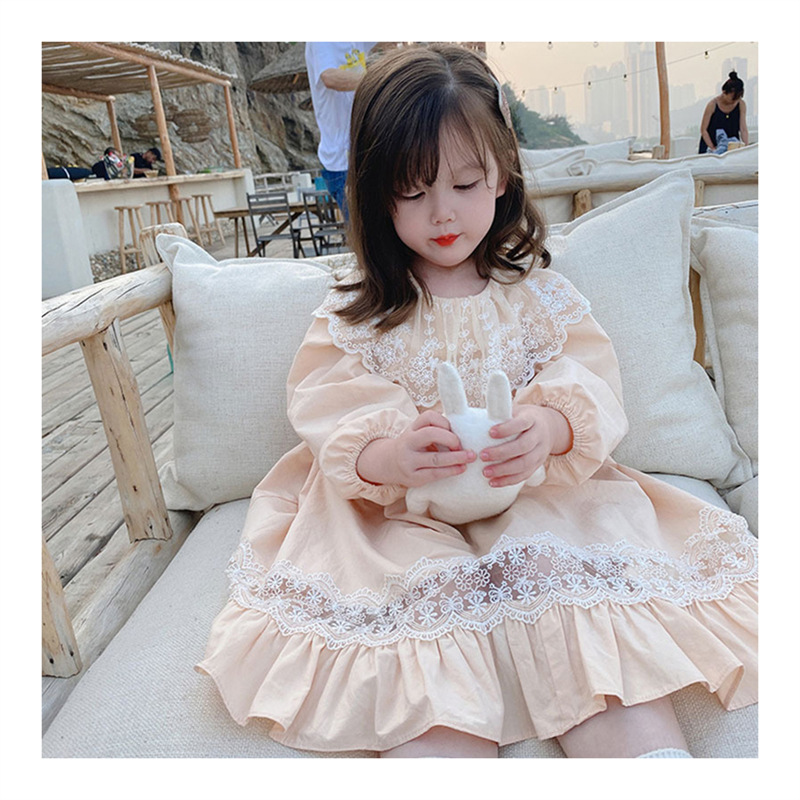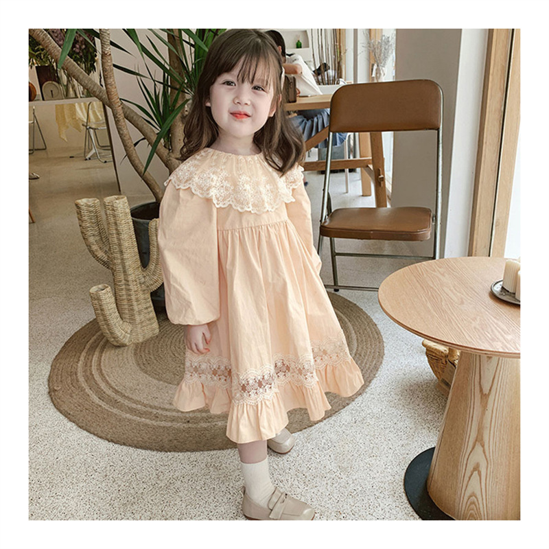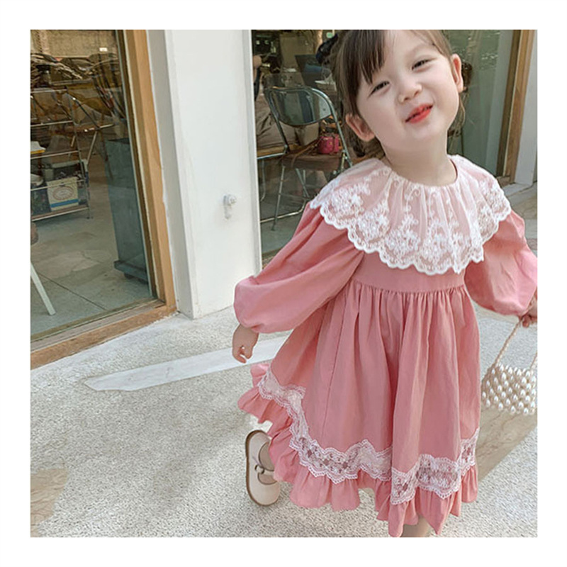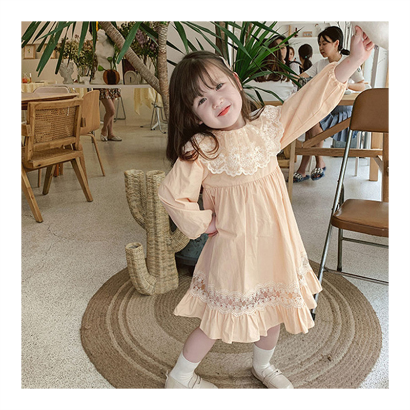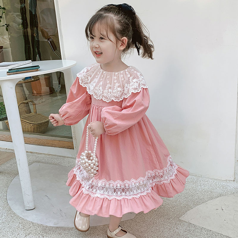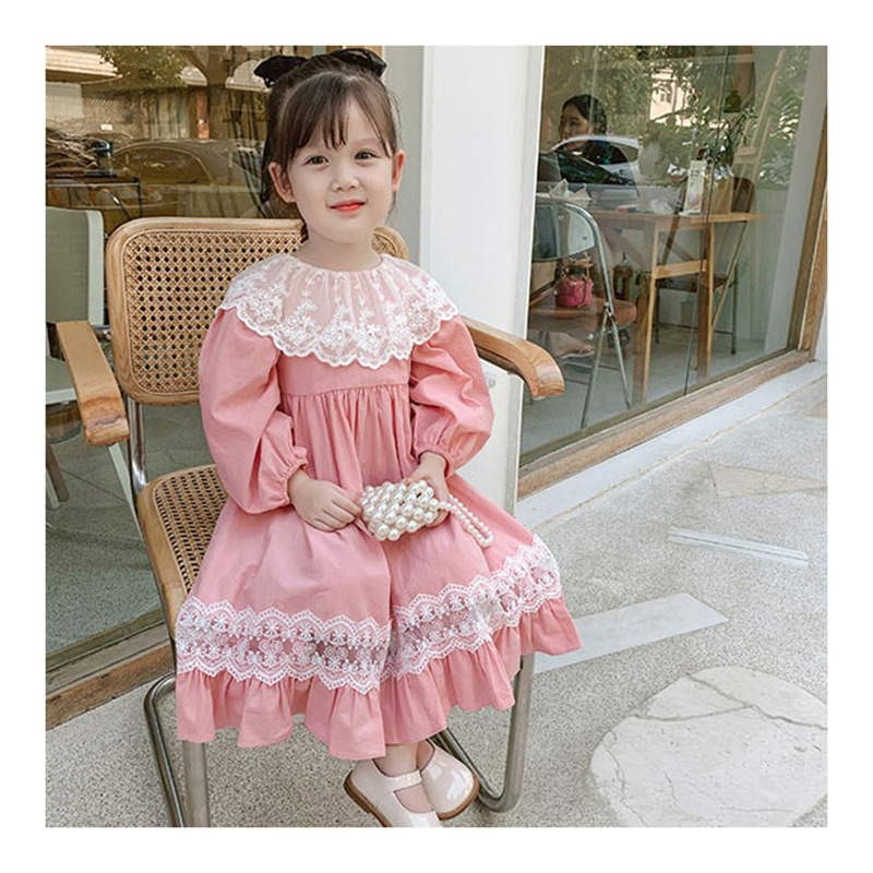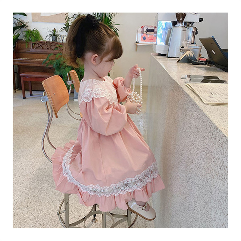 2024 봄과 가을 패션 긴팔 소녀 공주 원피스 새로운 도착 어린이 한국 스타일 서양식 레이스 원피스스토어 가기