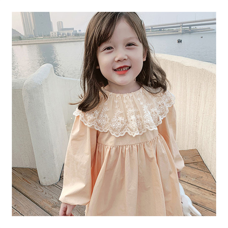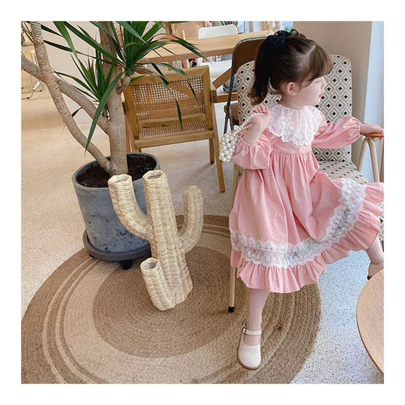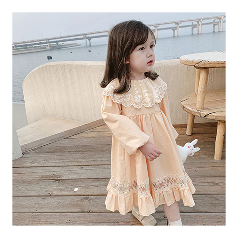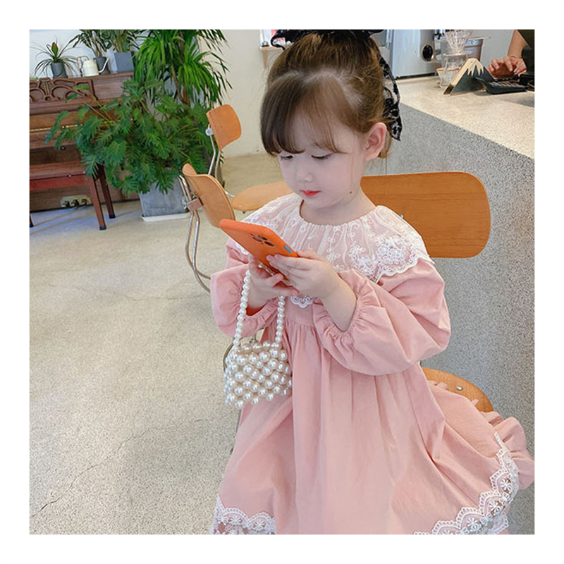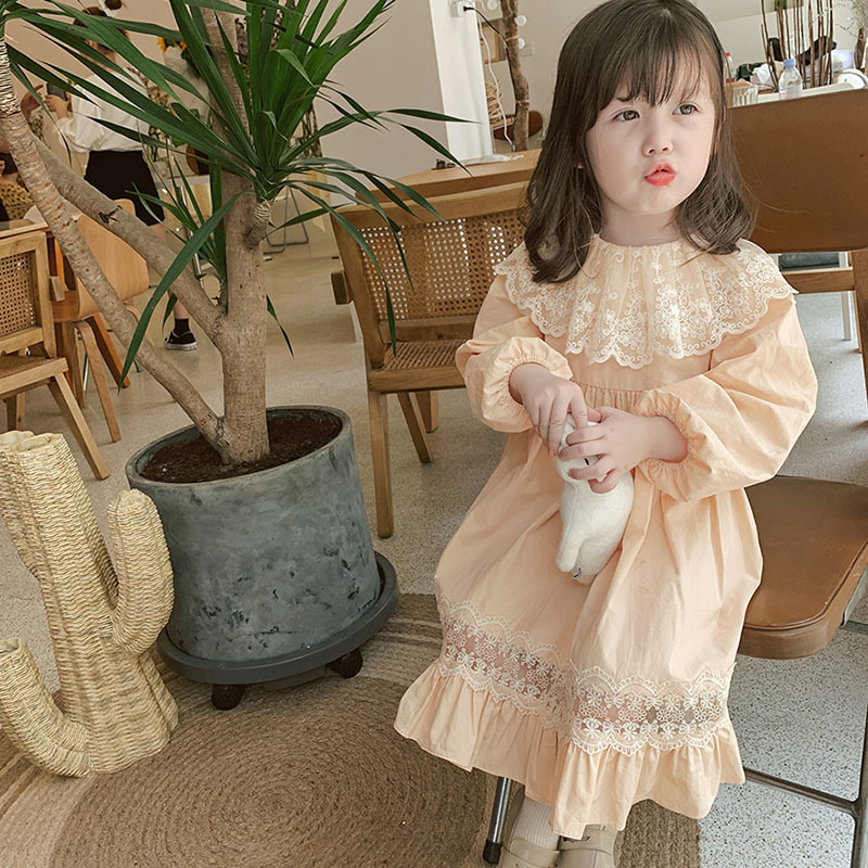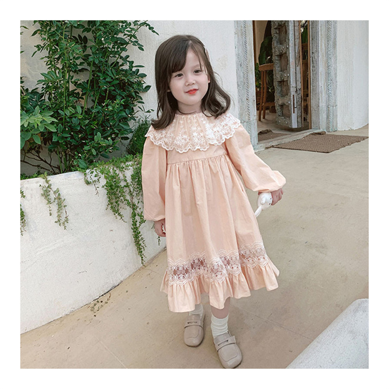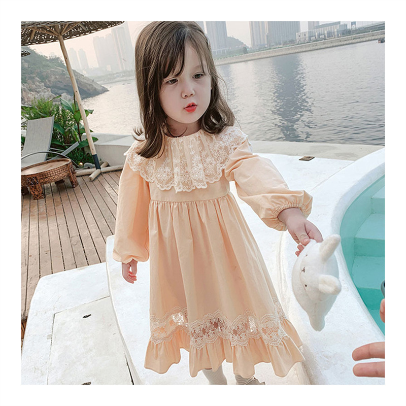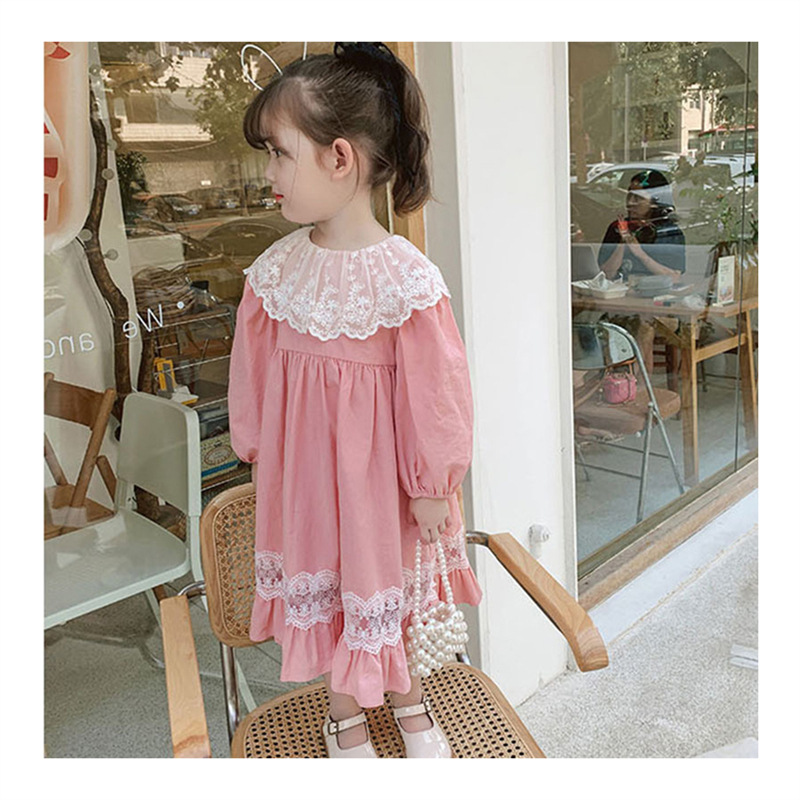 2024 봄과 가을 패션 긴팔 소녀 공주 원피스 새로운 도착 어린이 한국 스타일 서양식 레이스 원피스스토어 가기