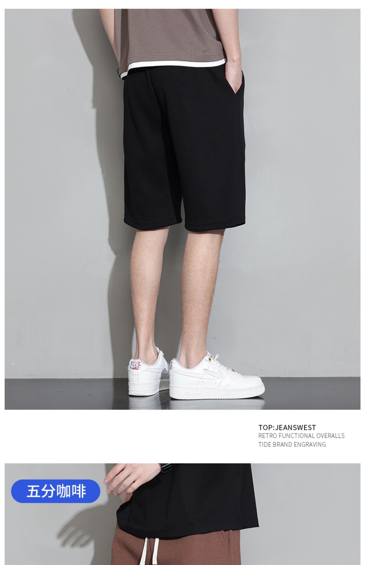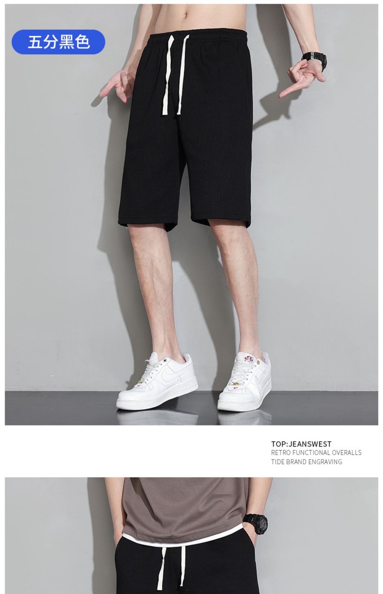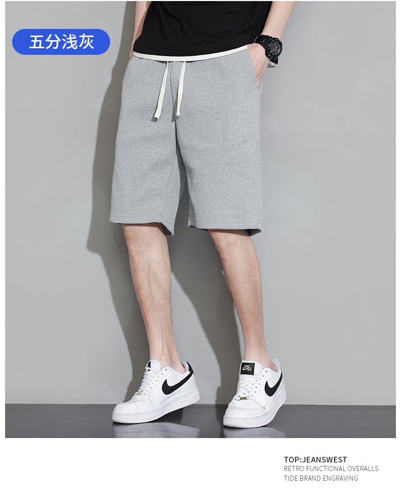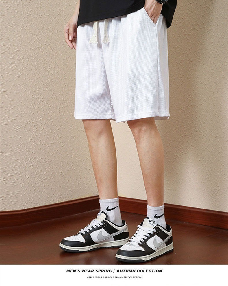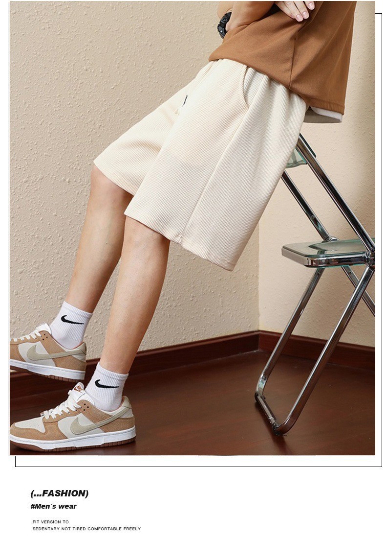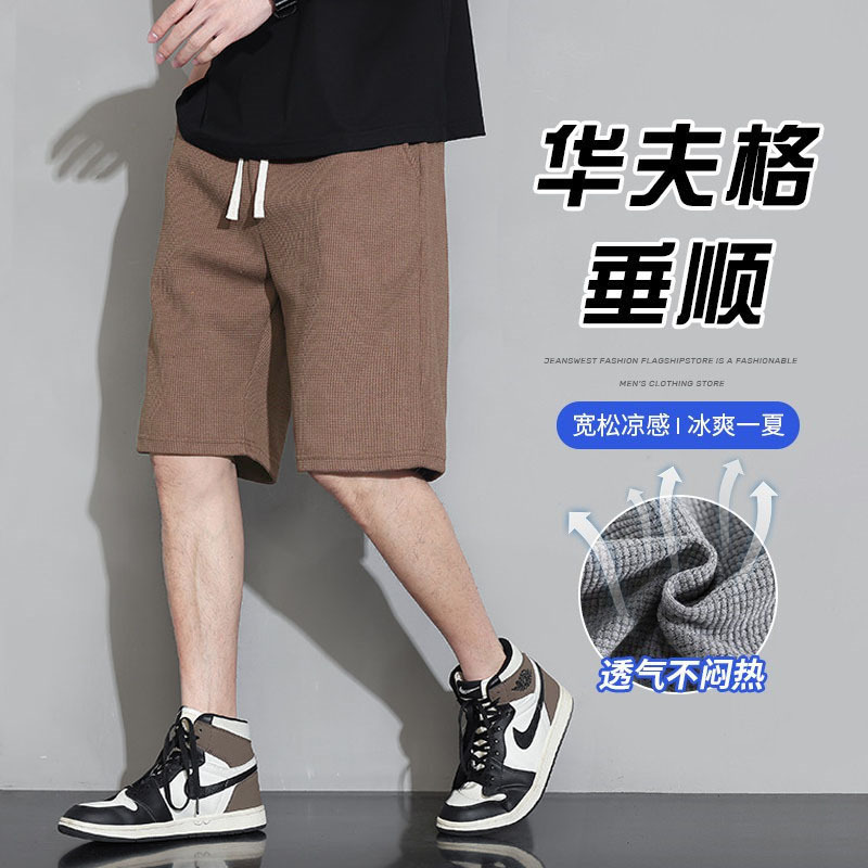 와플 반바지 남성용 여름 얇은 패션 브랜드 남성 아우터 착용 느슨한 크롭 바지 캐주얼 미들 팬츠