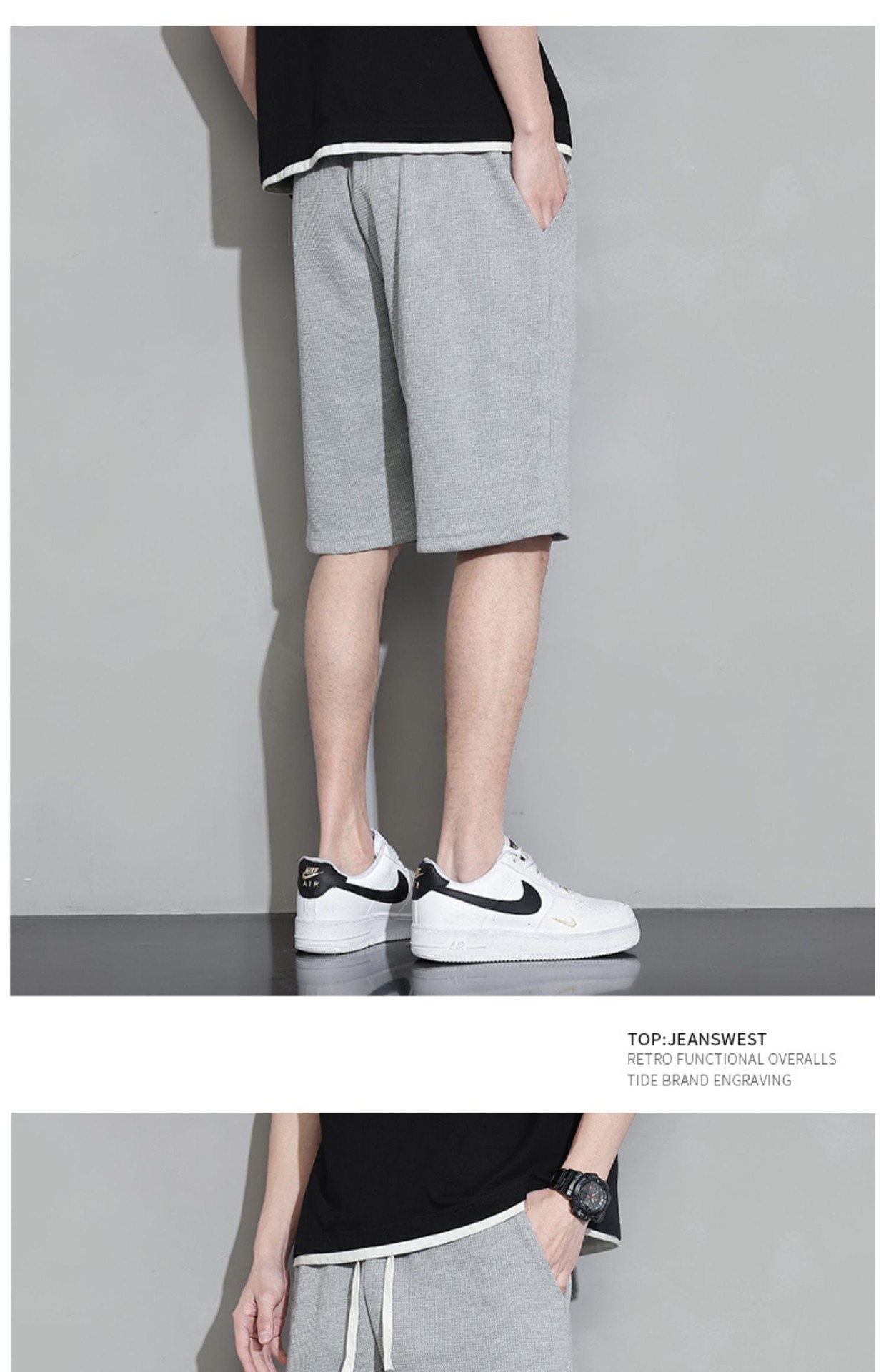 와플 반바지 남성용 여름 얇은 패션 브랜드 남성 아우터 착용 느슨한 크롭 바지 캐주얼 미들 팬츠스토어 가기