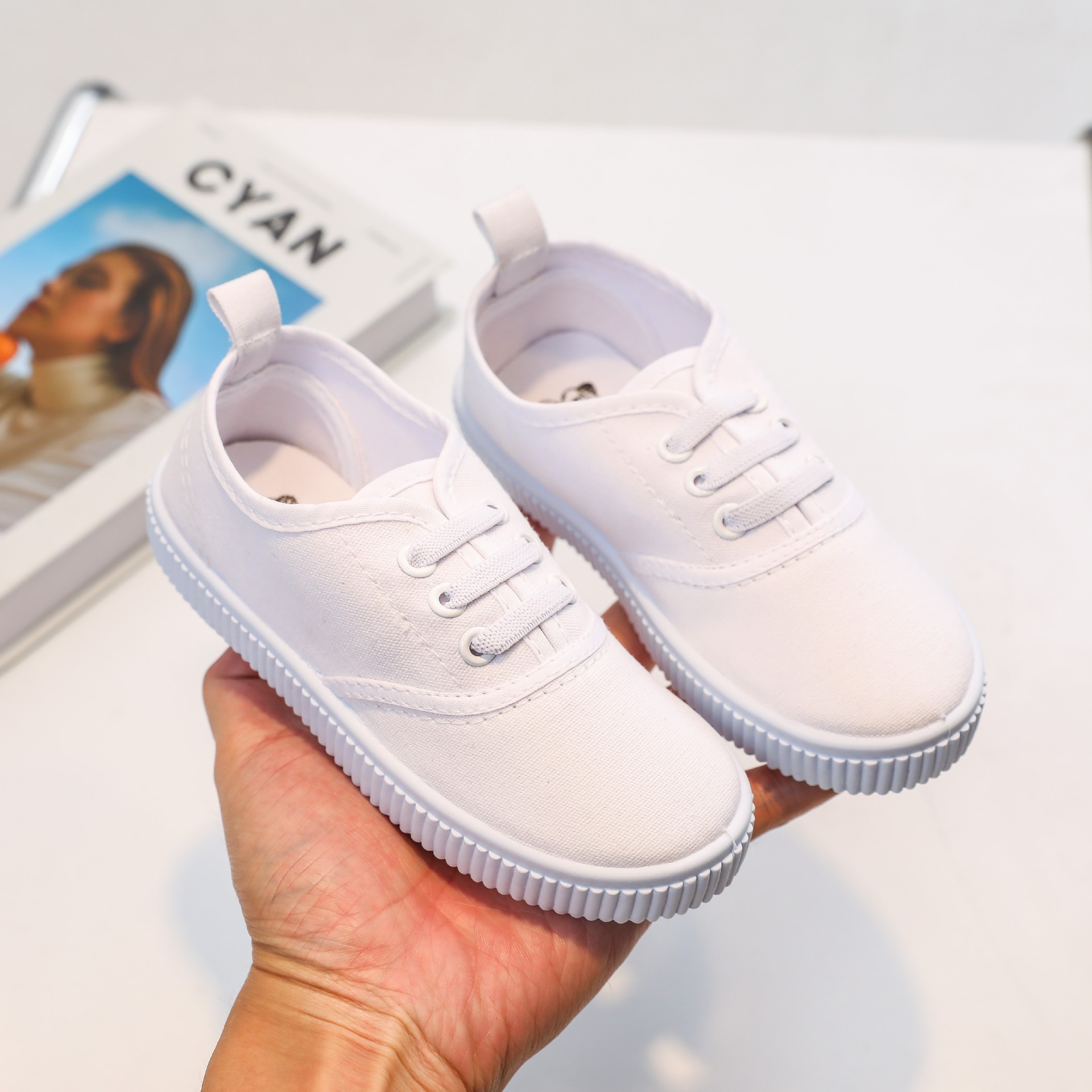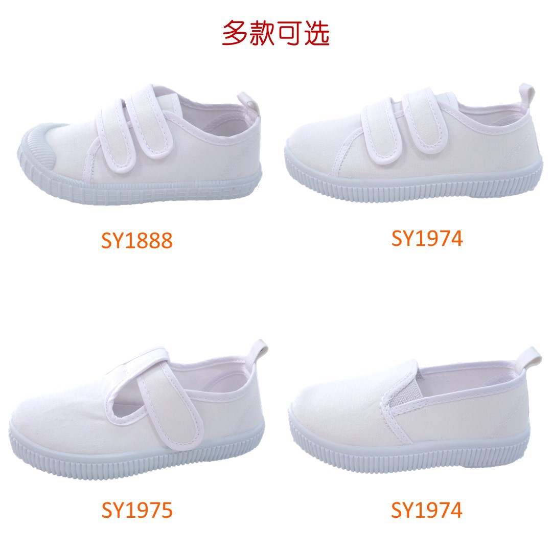 어린이 신발 유치원 실내 신발 댄스 신발 벨크로 소년 소녀 학생 흰 천 신발 어린이 흰색 신발 도매