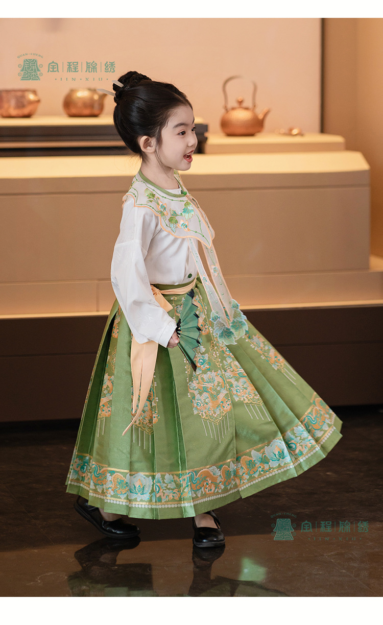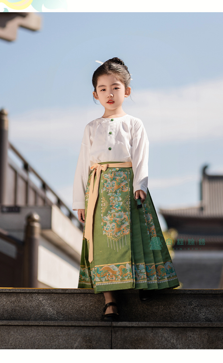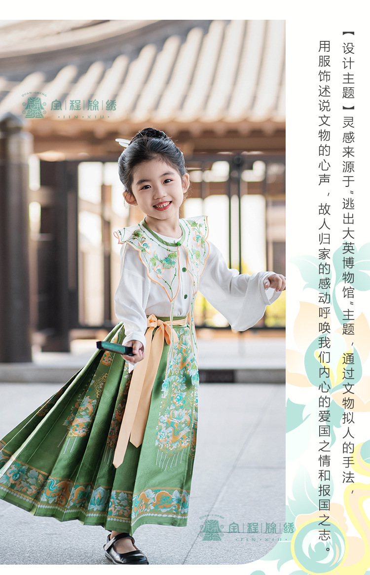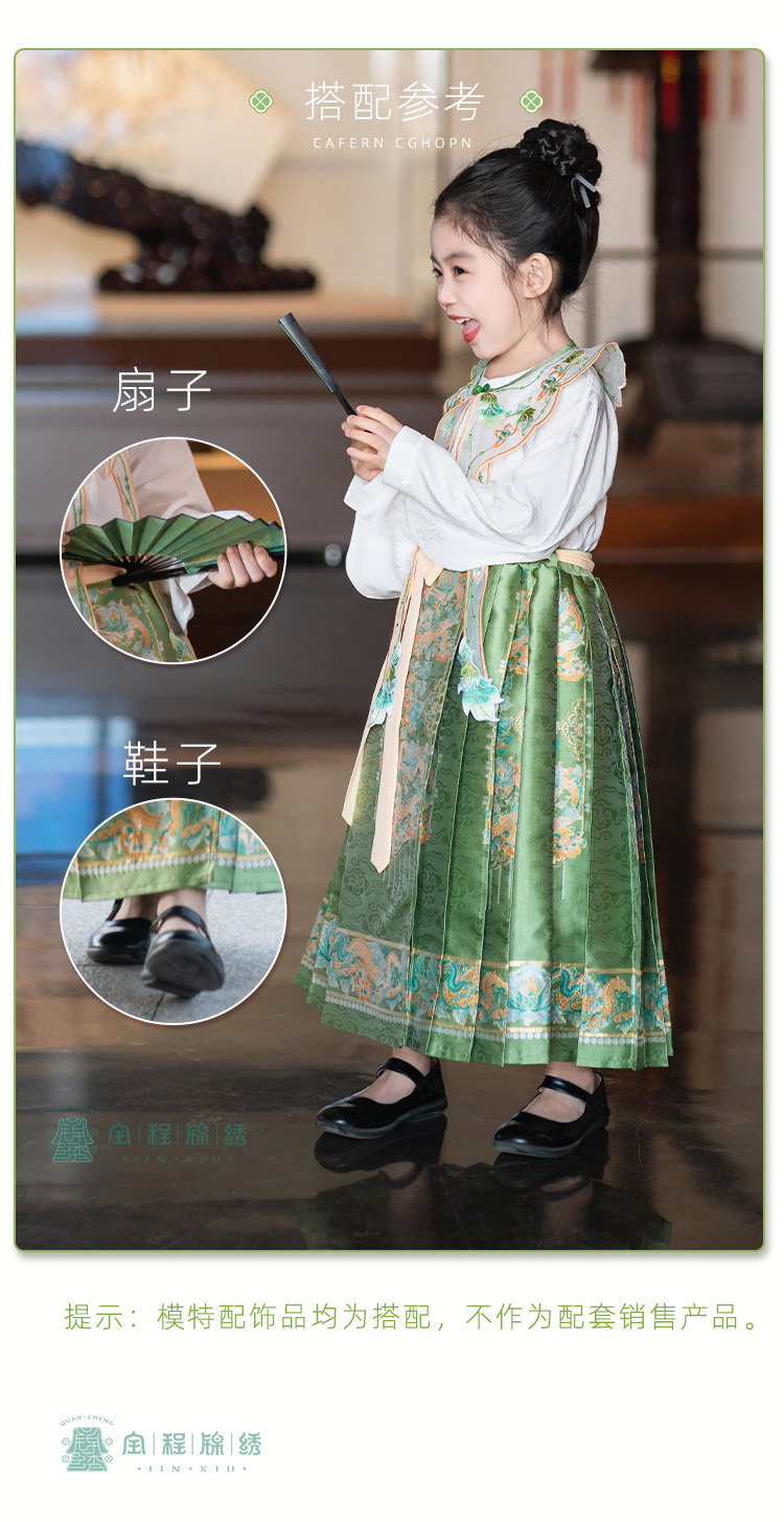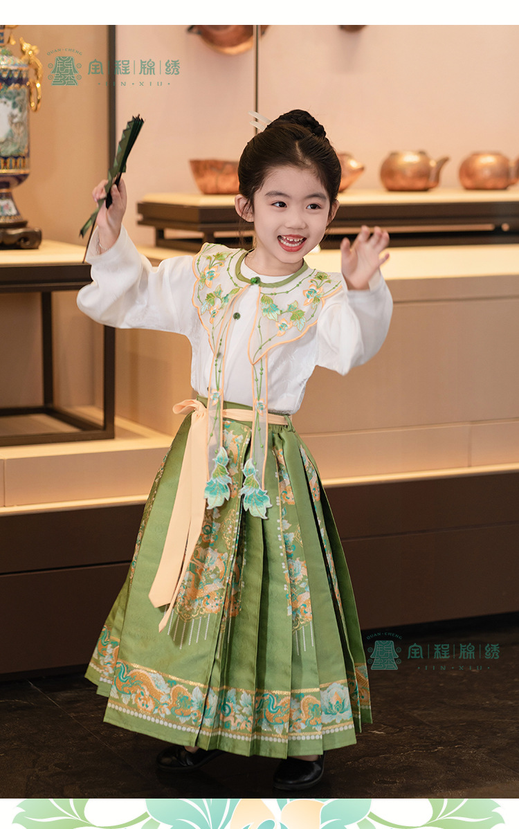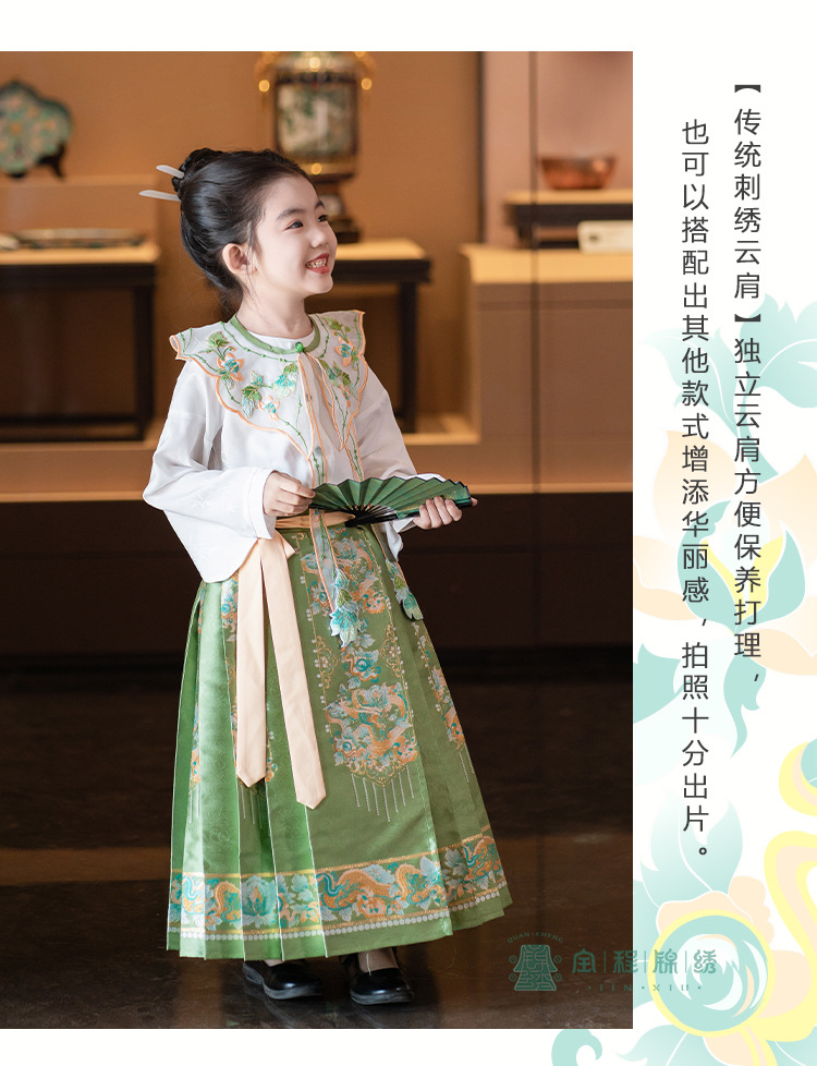 2024 봄 새로운 한푸 소녀 개선 된 조끼 치마 수 놓은 국가 스타일 구름 어깨 고대 스타일 어린이 치마 도매