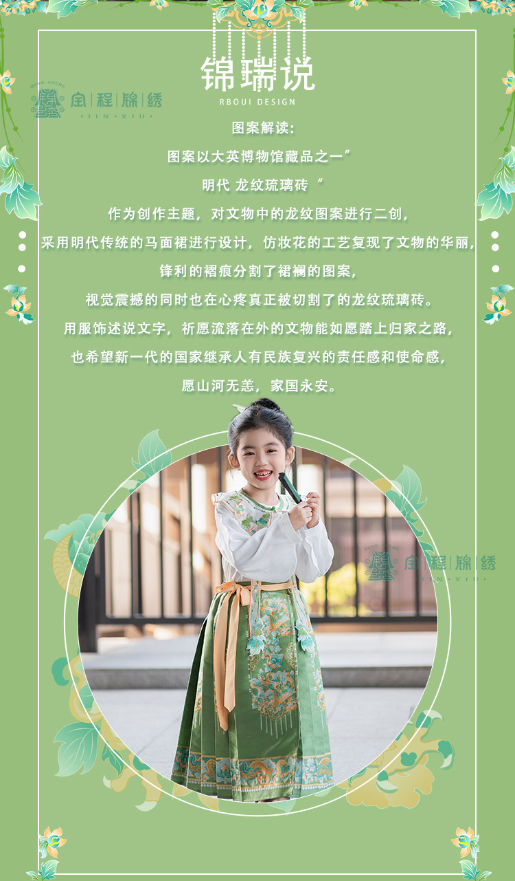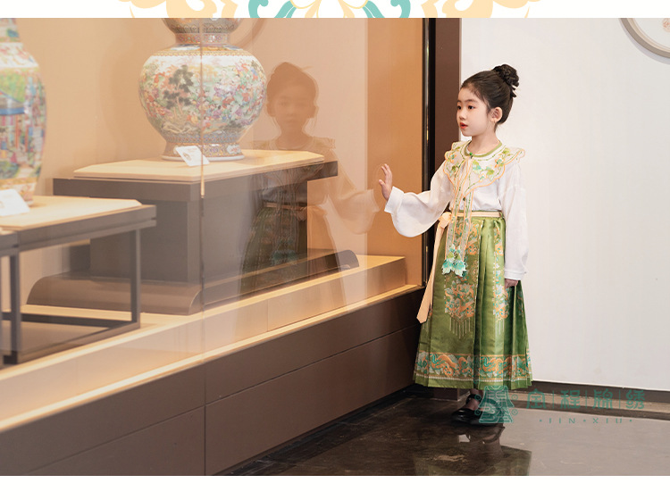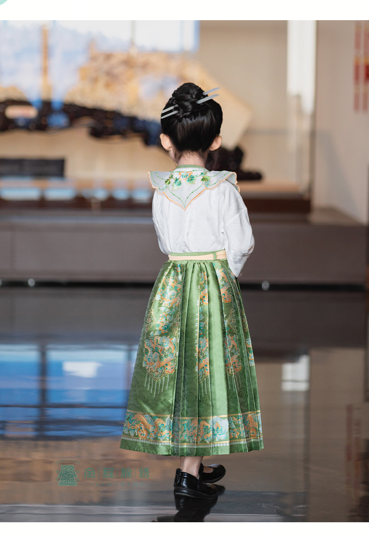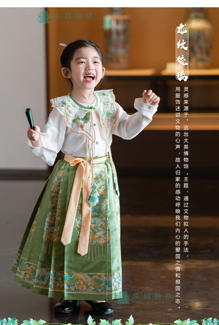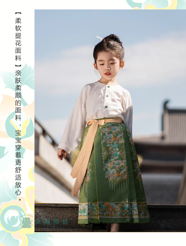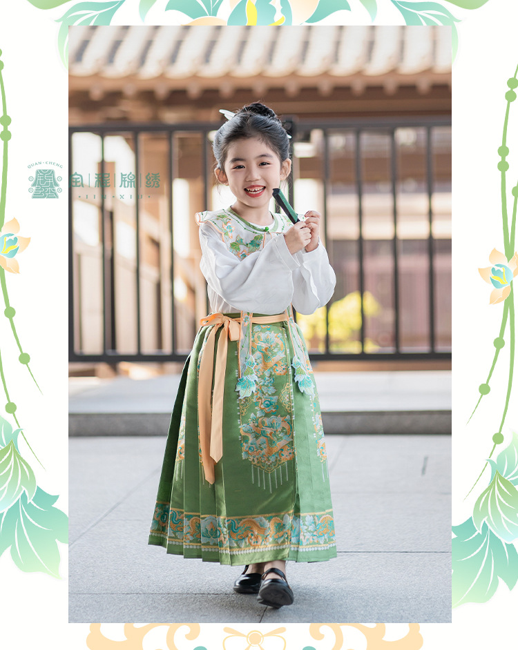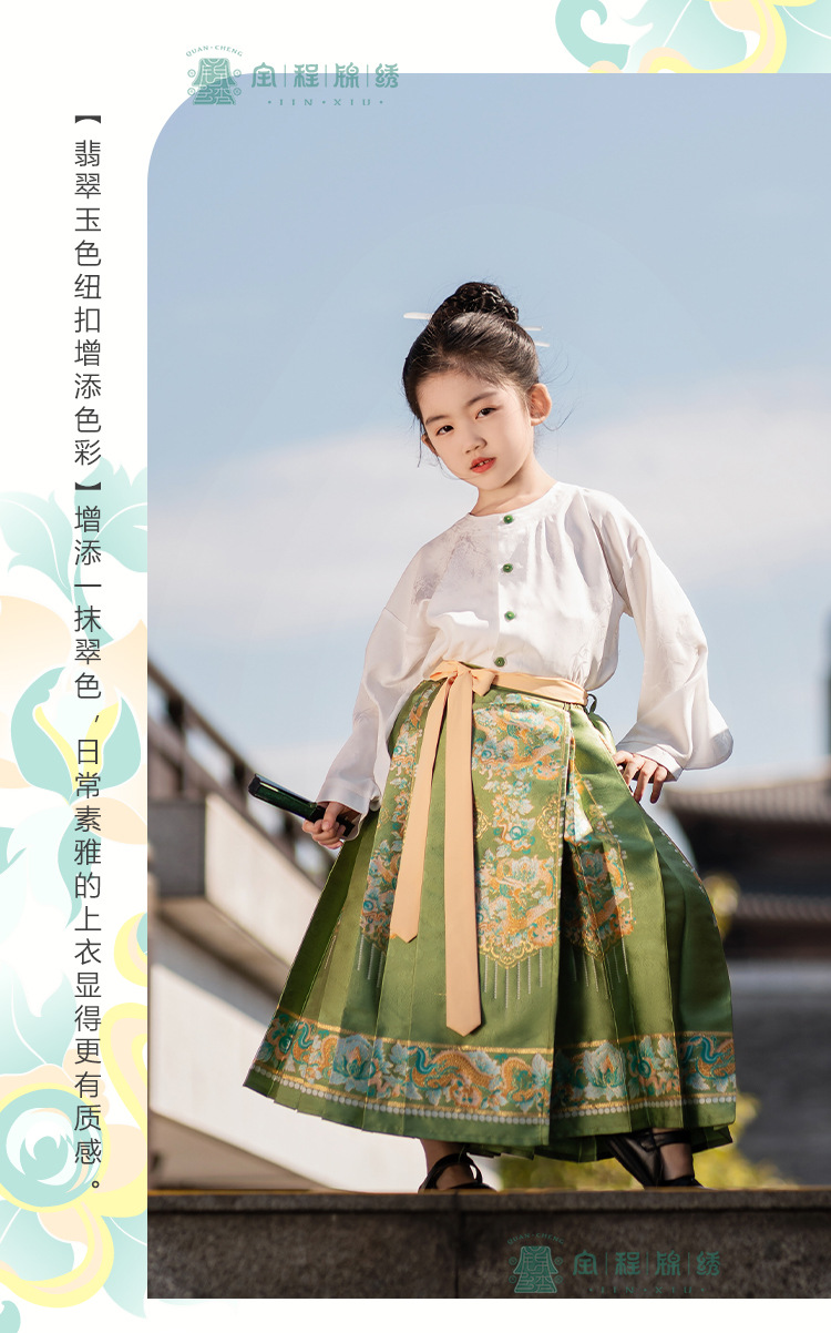 2024 봄 새로운 한푸 소녀 개선 된 조끼 치마 수 놓은 국가 스타일 구름 어깨 고대 스타일 어린이 치마 도매