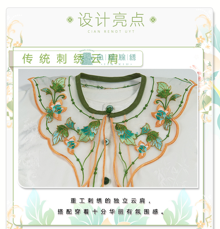2024 봄 새로운 한푸 소녀 개선 된 조끼 치마 수 놓은 국가 스타일 구름 어깨 고대 스타일 어린이 치마 도매스토어 가기