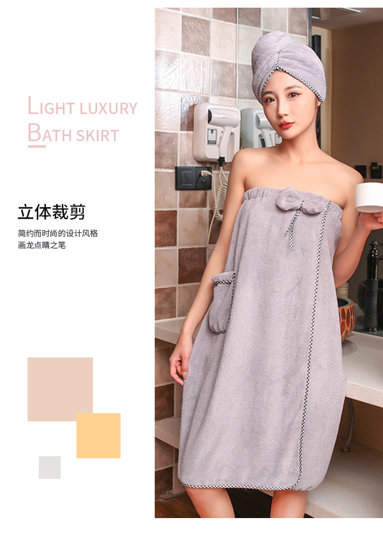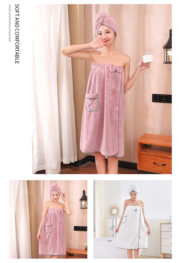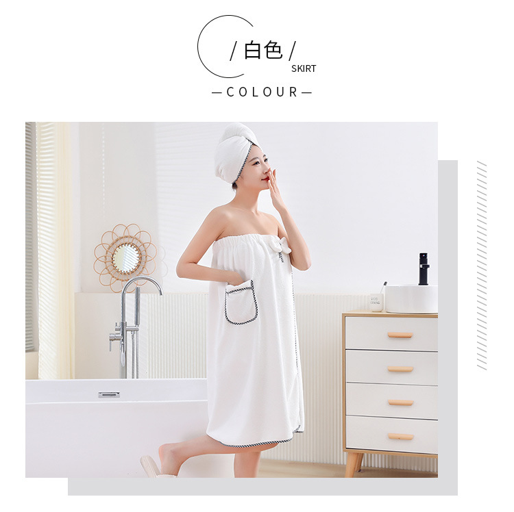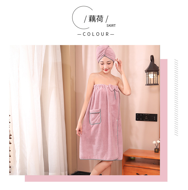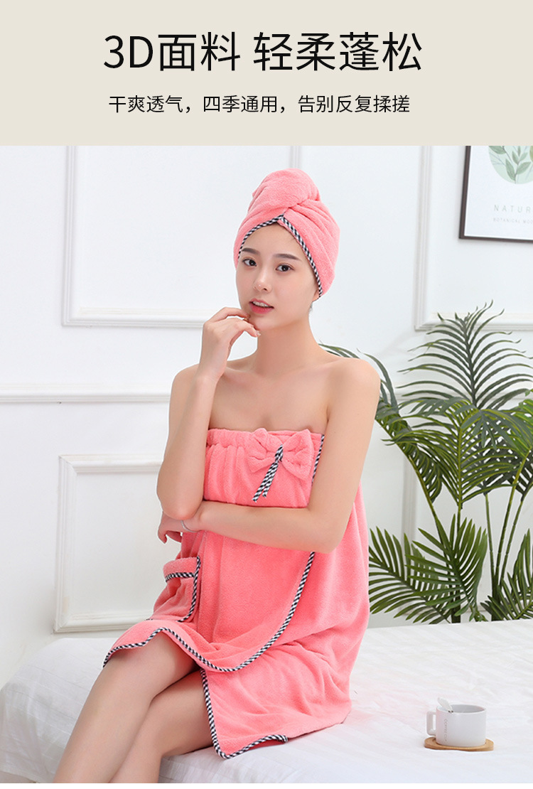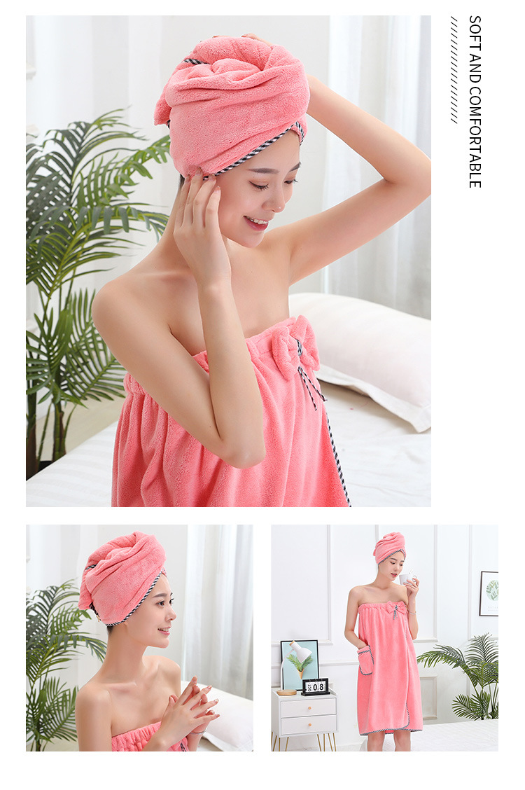 고밀도 가슴으로 감싼 산호 양털 목욕 치마 샤워 캡 세트 흡수성이 쉬운 성인 가정용 목욕 타월 헤어 건조 캡 2 피스 세트스토어 가기