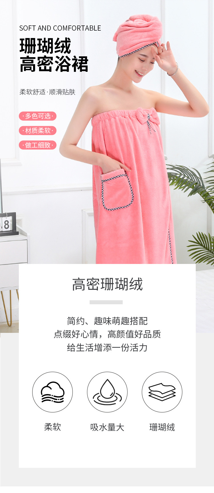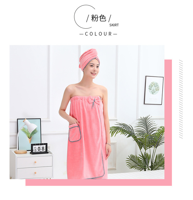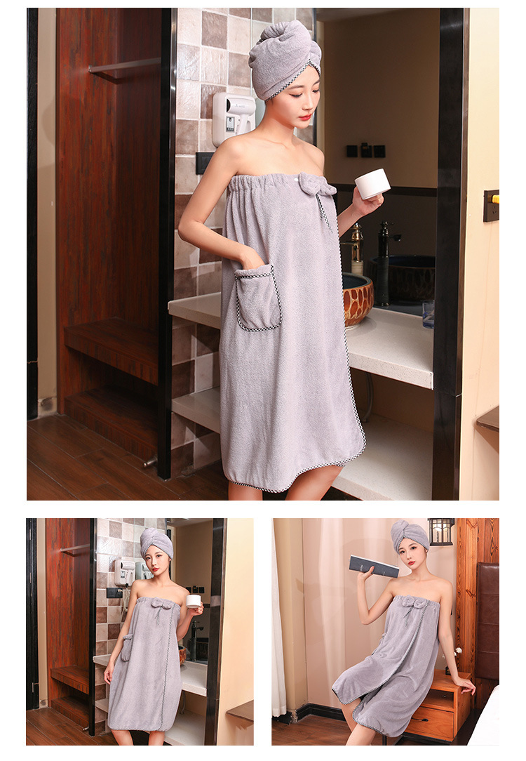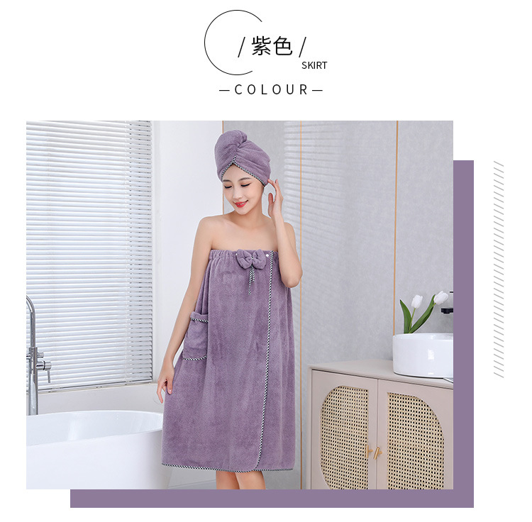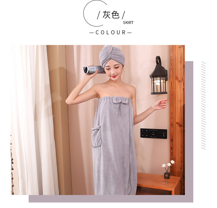 고밀도 가슴으로 감싼 산호 양털 목욕 치마 샤워 캡 세트 흡수성이 쉬운 성인 가정용 목욕 타월 헤어 건조 캡 2 피스 세트스토어 가기